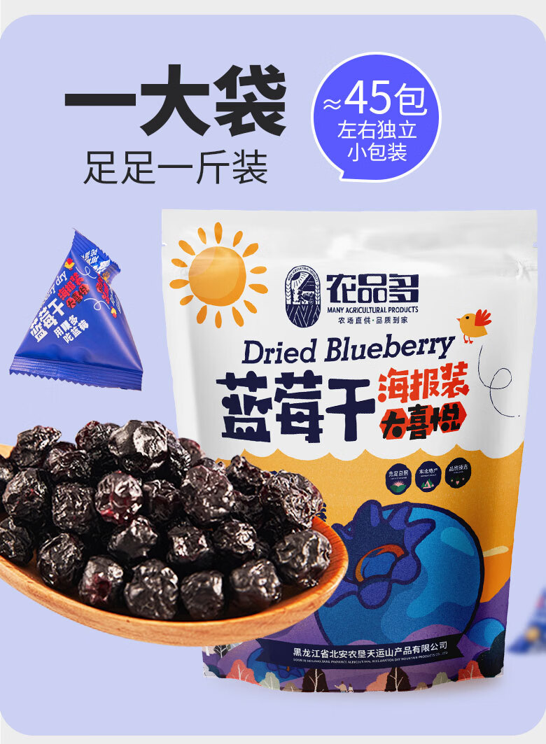 农品多蓝莓干500g装独立小包装果干 0添加剂果干肉脯休闲零食 解馋送礼 蓝莓干158g*2袋