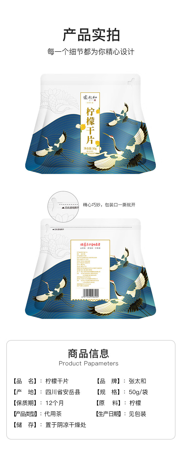 张太和 柠檬干片50g*3袋柠檬片泡茶泡水切片花草茶饮柠水柠檬水干片袋装