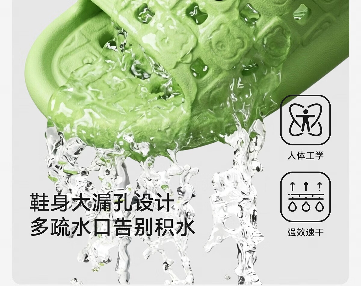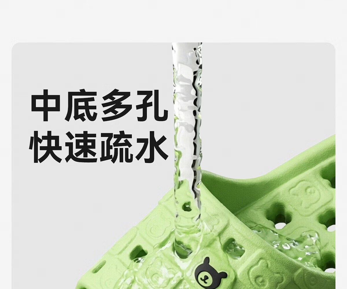杜晨镂空速干小熊防滑浴室家居拖鞋2026年新款凉拖鞋女情侣凉拖鞋女士 果绿色【升级eva-软底速干镂空】 36-37 【建议偏小一码】