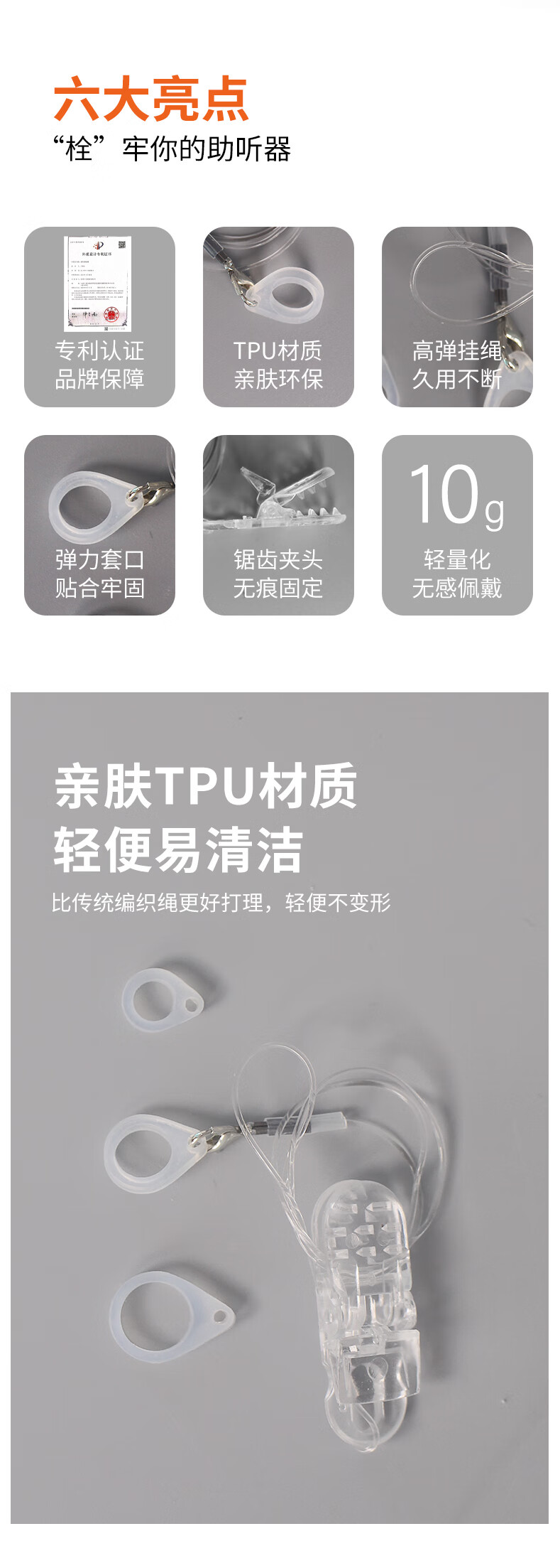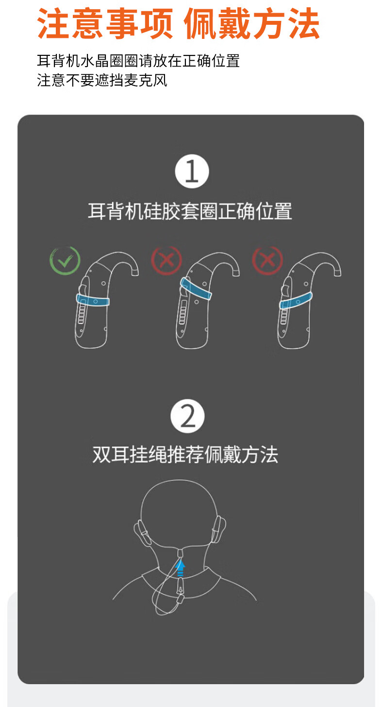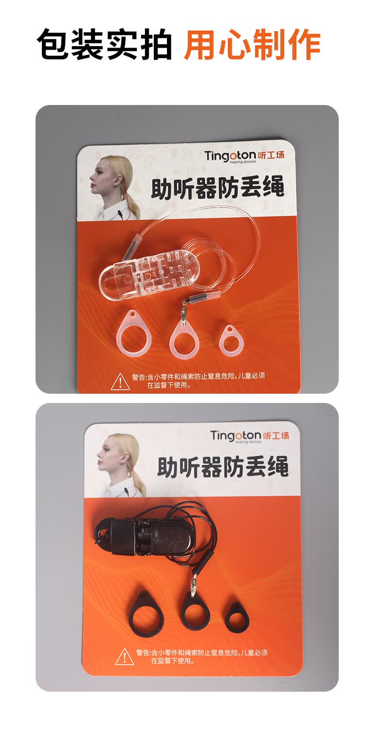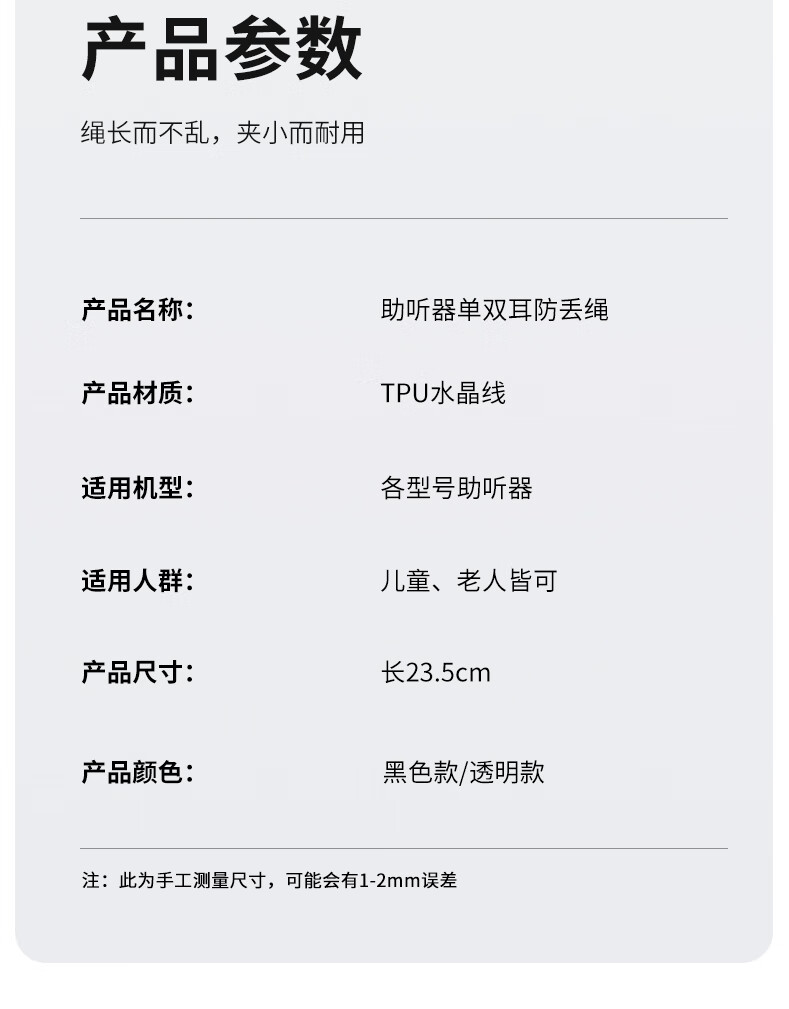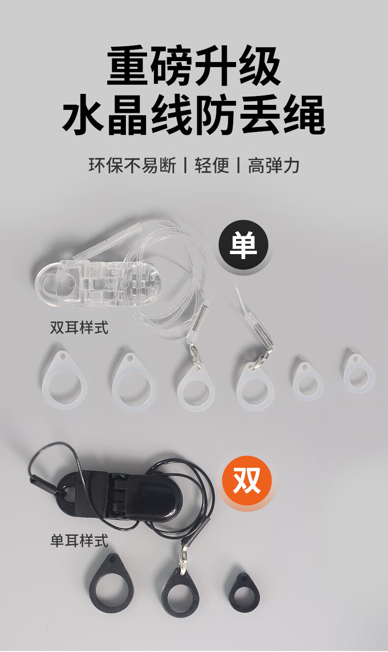 听工场助听器专用防丢绳新款水晶材质防掉挂绳老人儿童助听器通用固定架 【透明色】高品质水晶线不易断挂绳-双耳