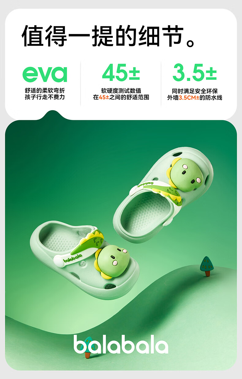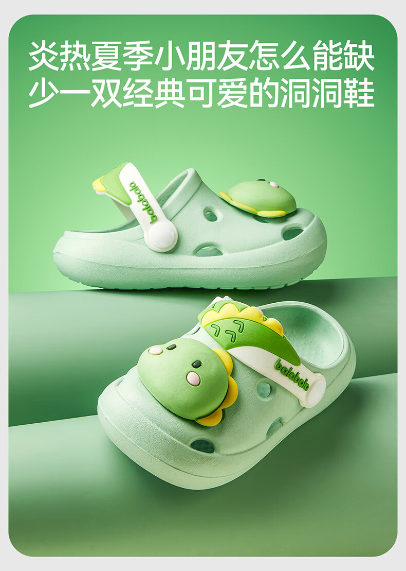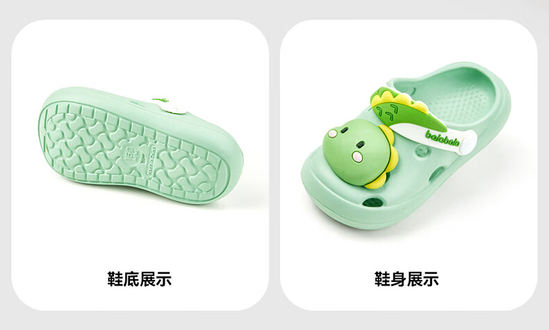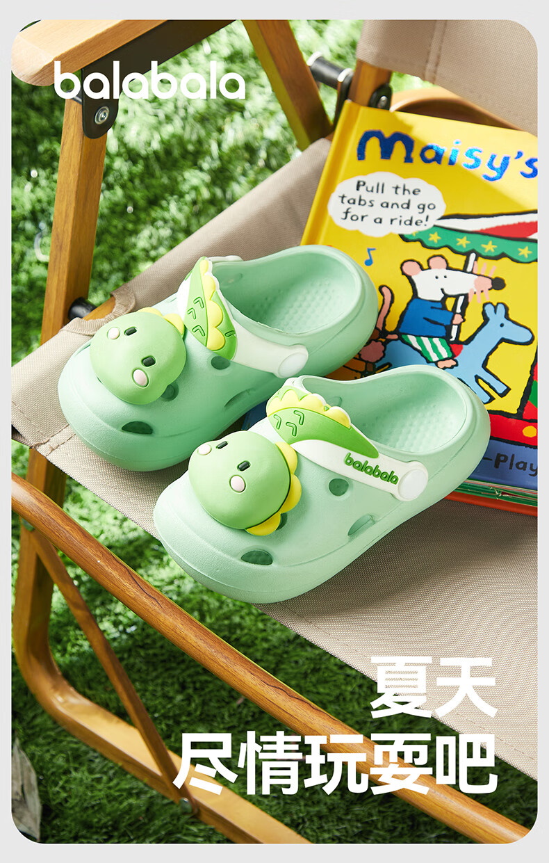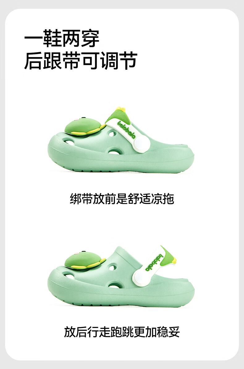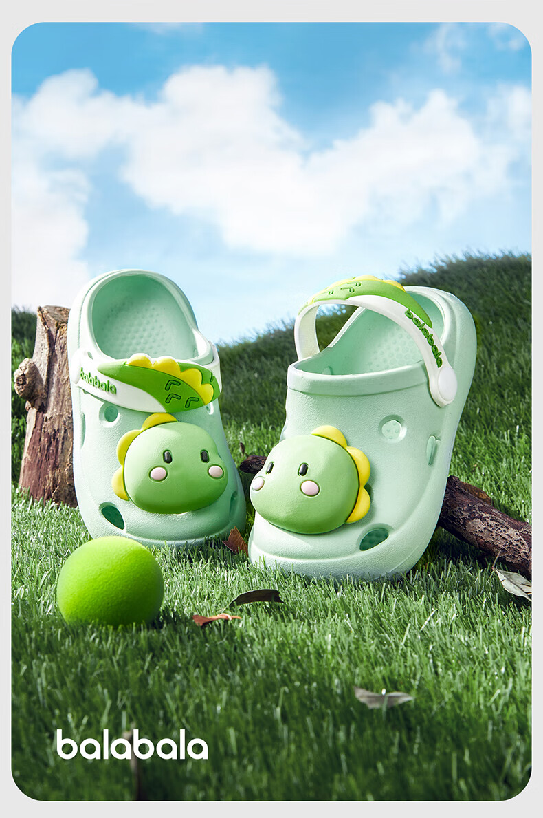 巴拉巴拉儿童拖鞋男童夏季家居洞洞鞋男孩耐磨拖鞋宝宝沙滩鞋软底透气 绿色 31 内长19cm (190)适合脚长19cm