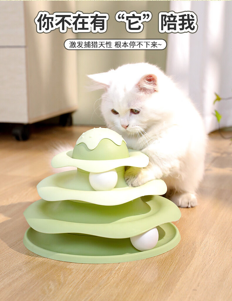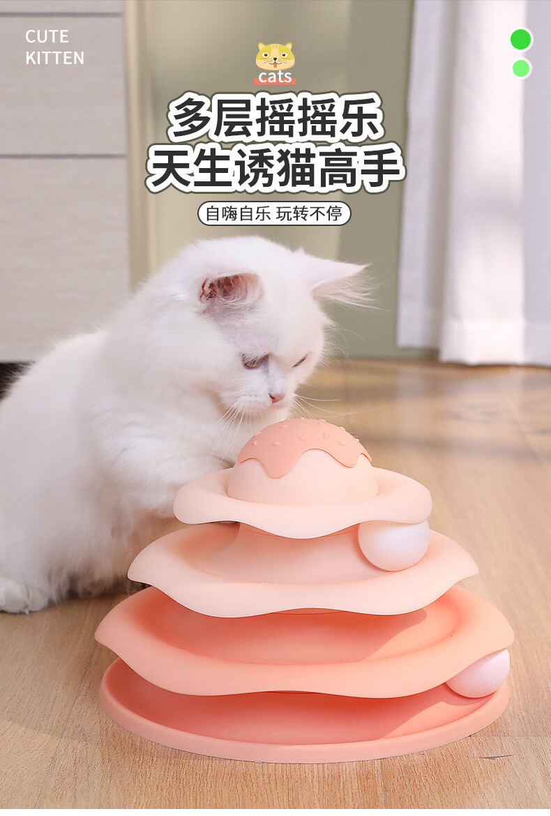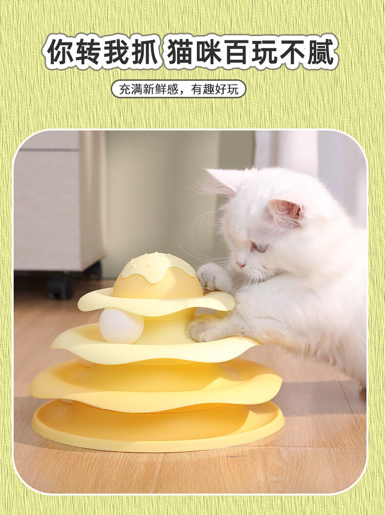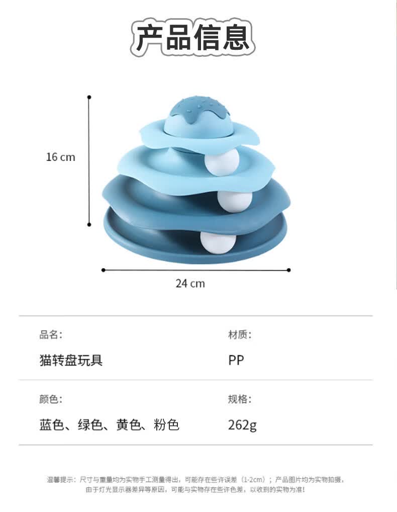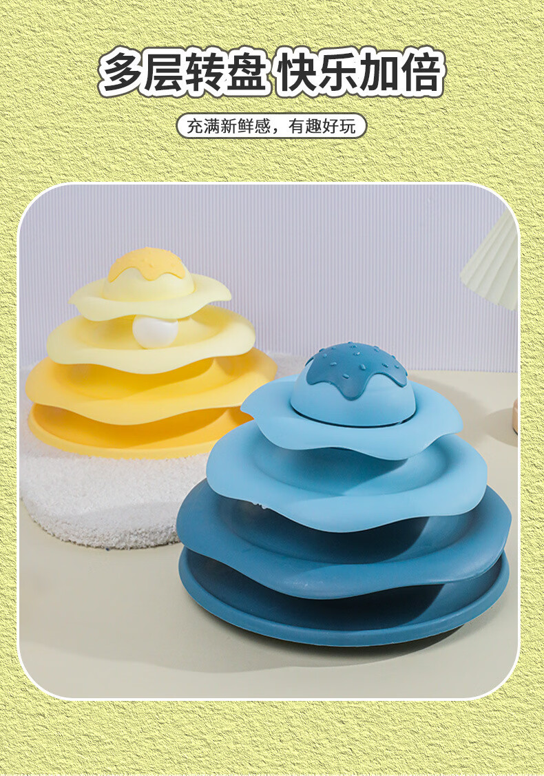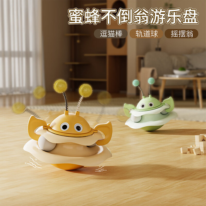 爆款转盘玩具猫咪玩具小蜜蜂不倒翁逗猫自嗨解闷神器转盘小猫玩具 冰激凌款-深海蓝 opp袋装