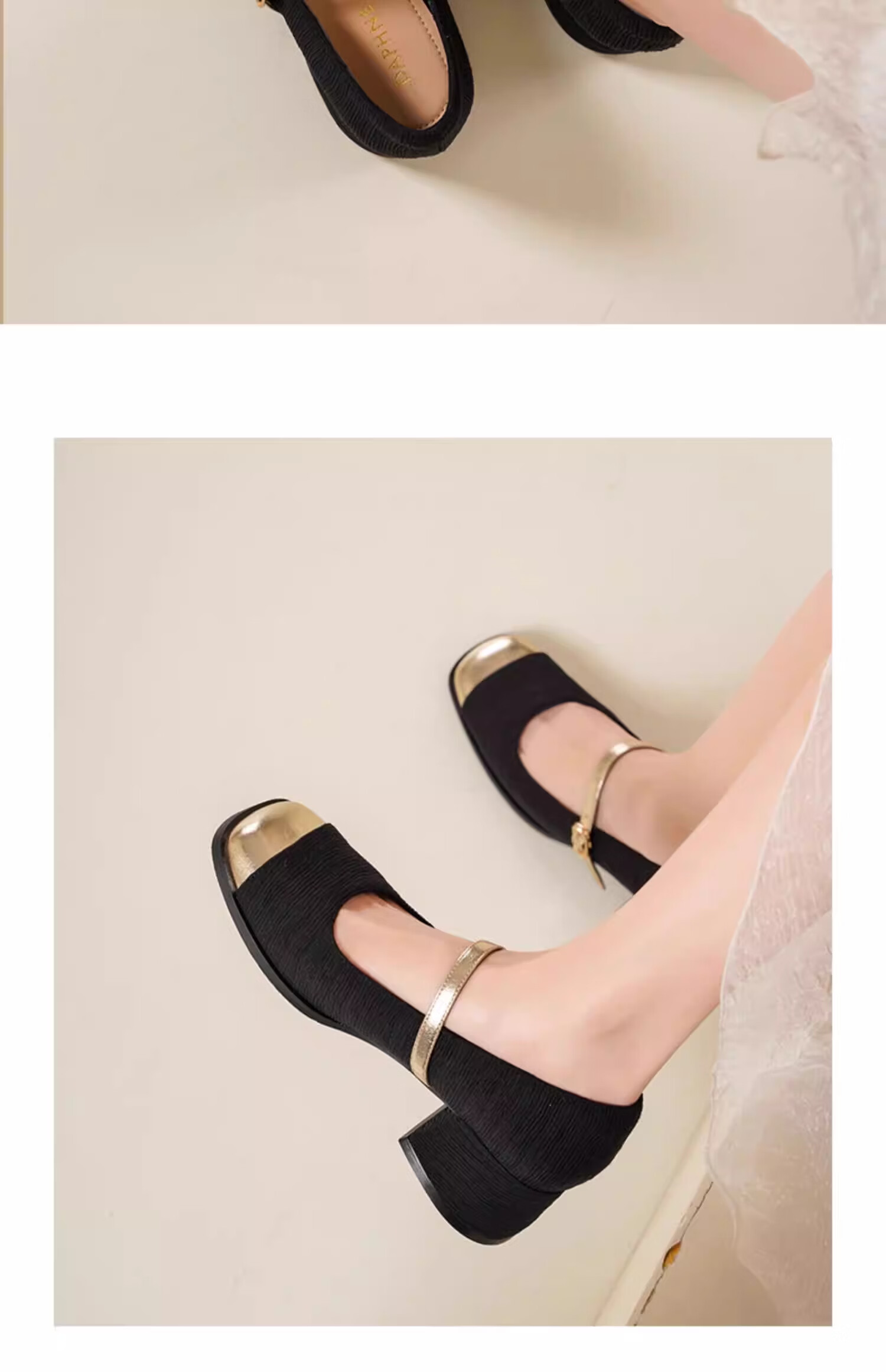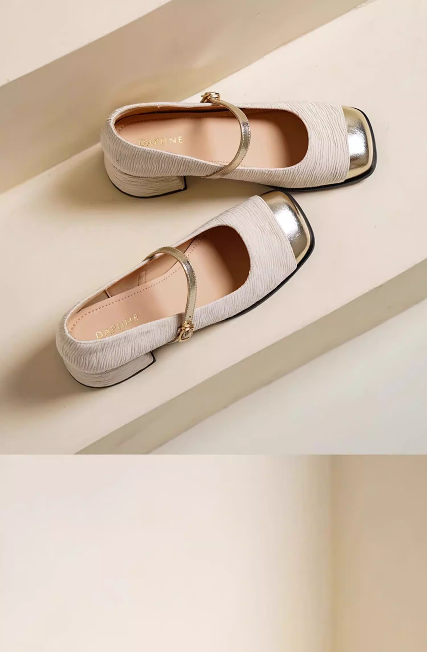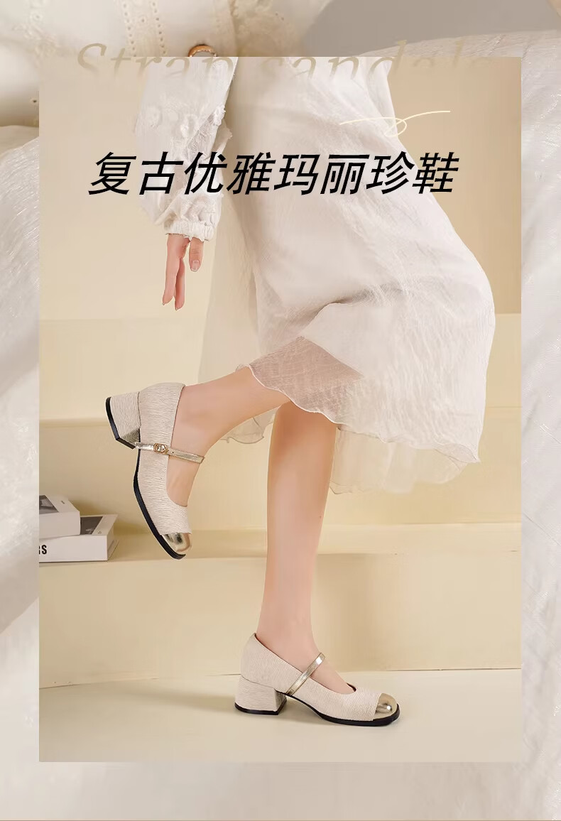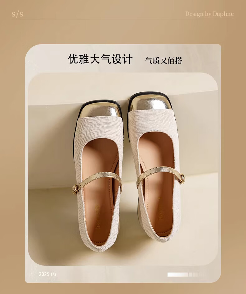 达芙妮浅口单鞋女2026新款春季粗跟小香风高跟鞋法式玛丽珍女鞋ZJ 米白色 37