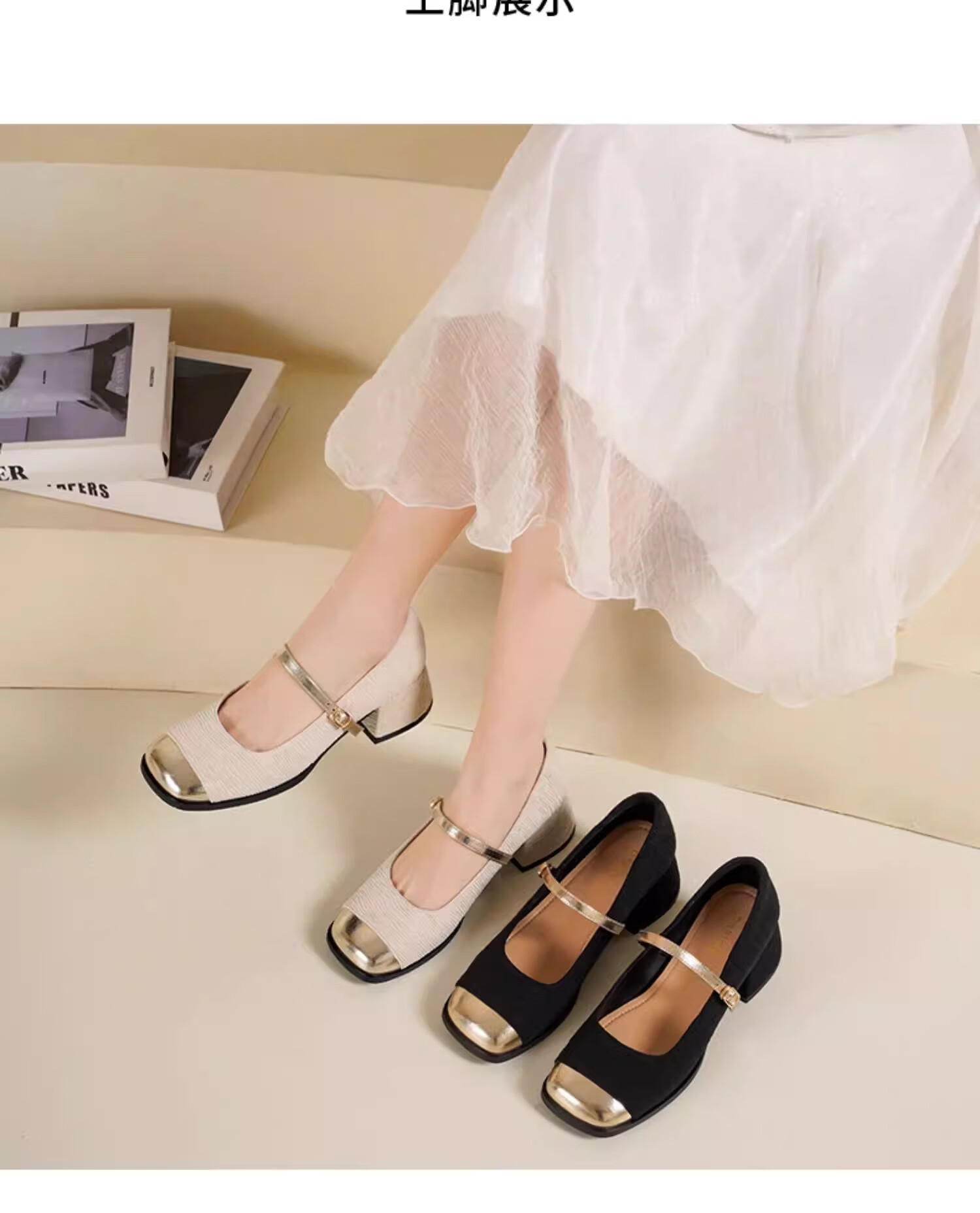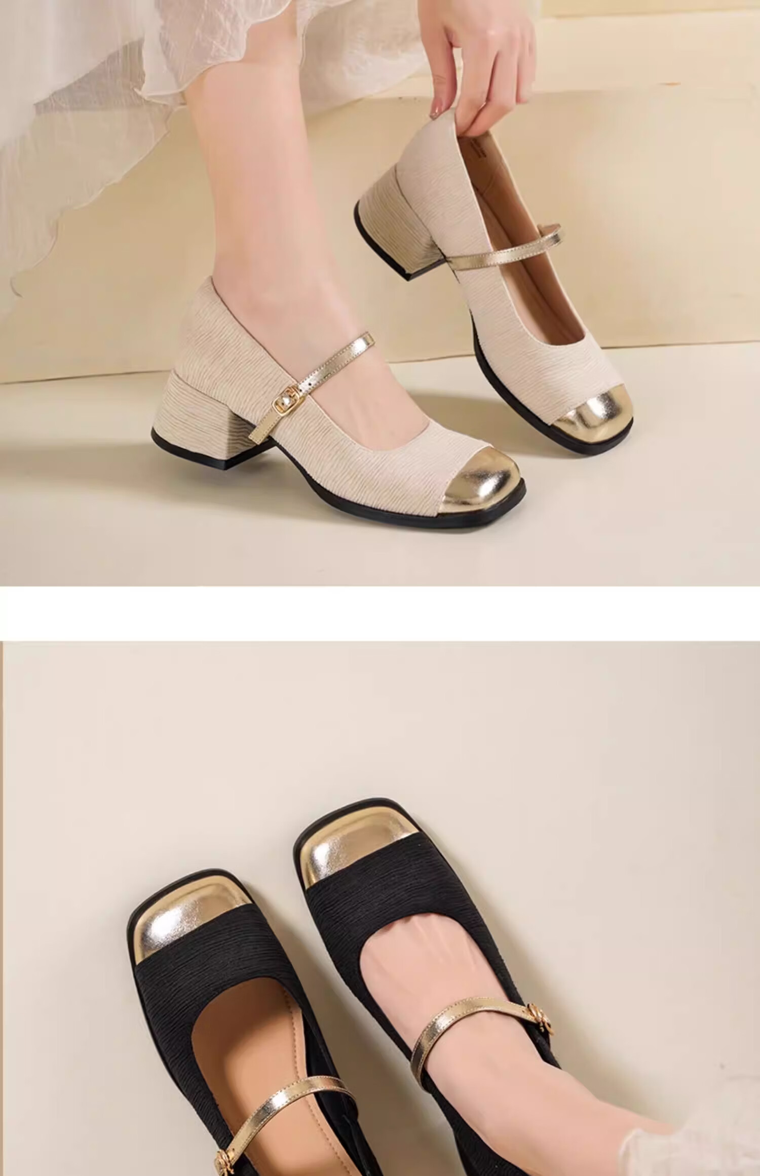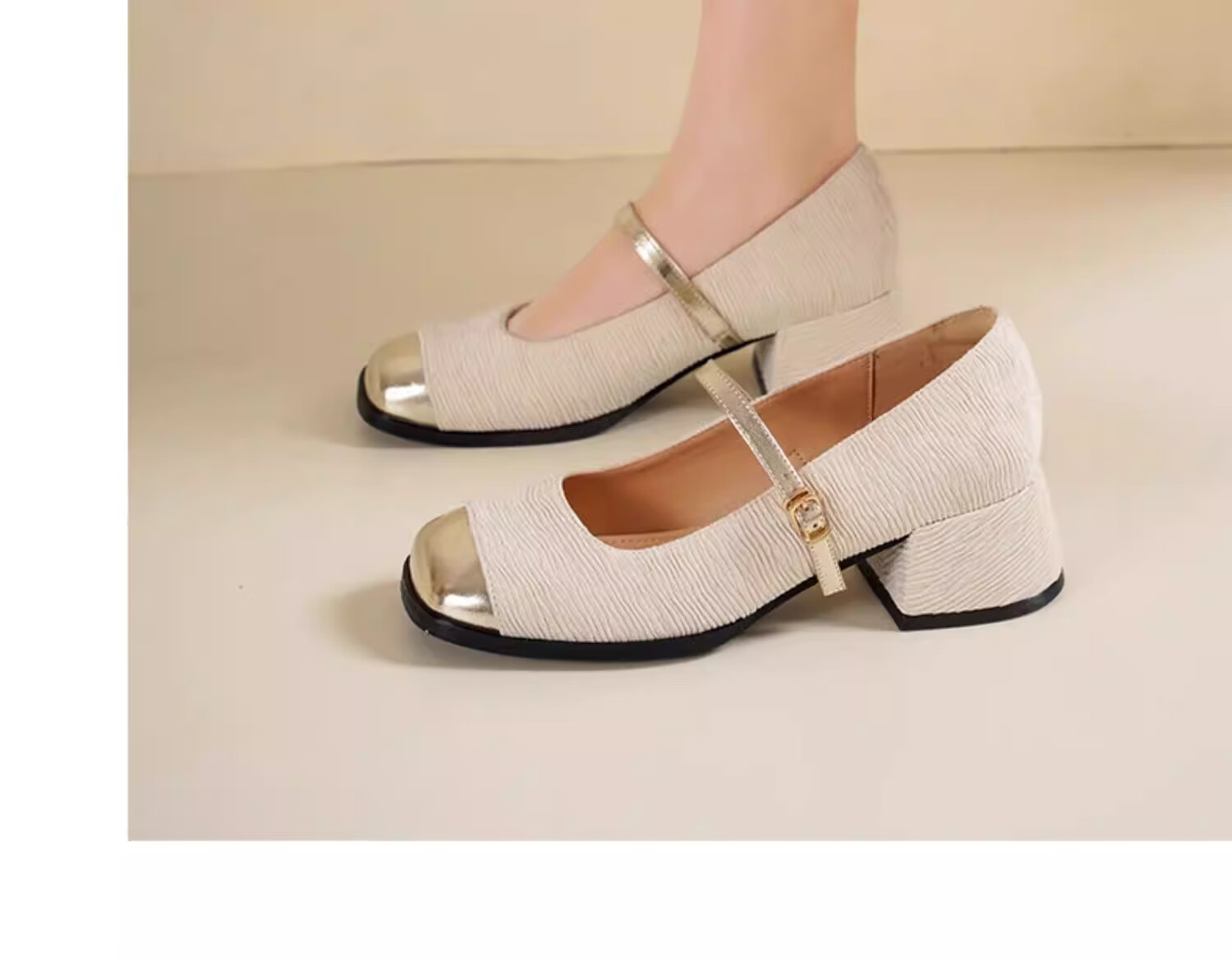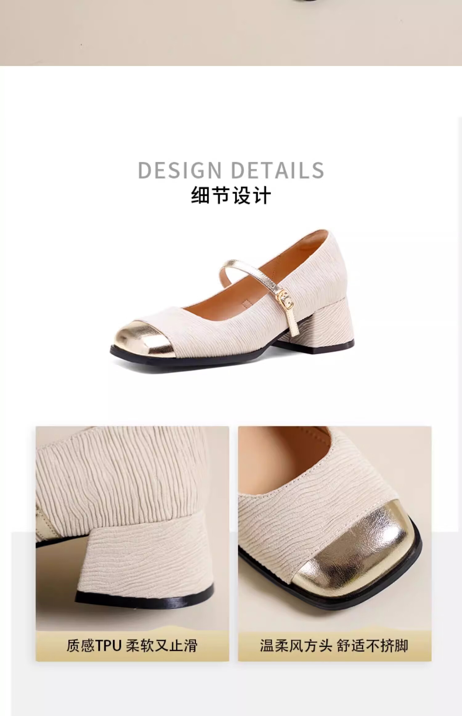 达芙妮浅口单鞋女2026新款春季粗跟小香风高跟鞋法式玛丽珍女鞋ZJ 米白色 37