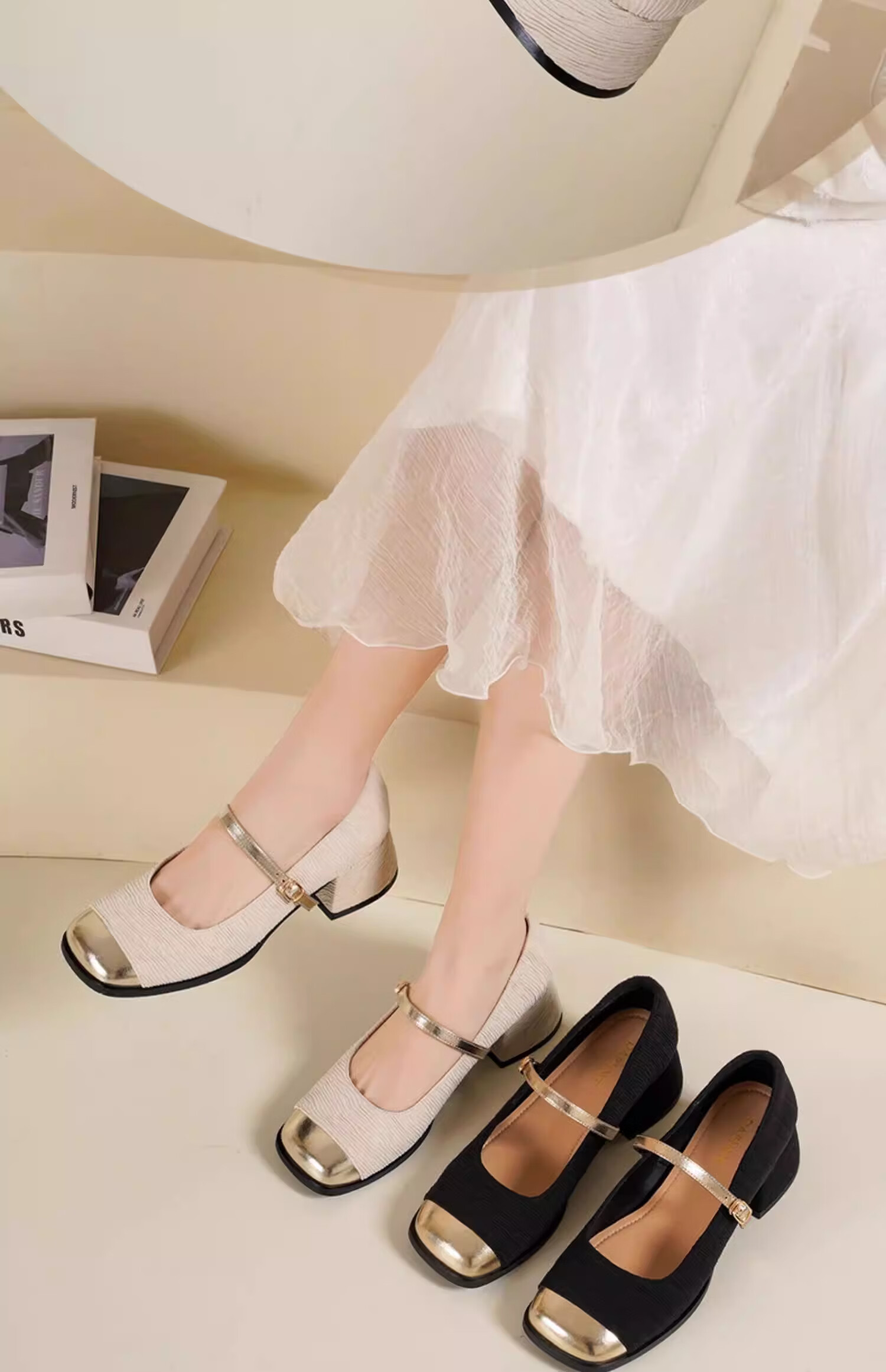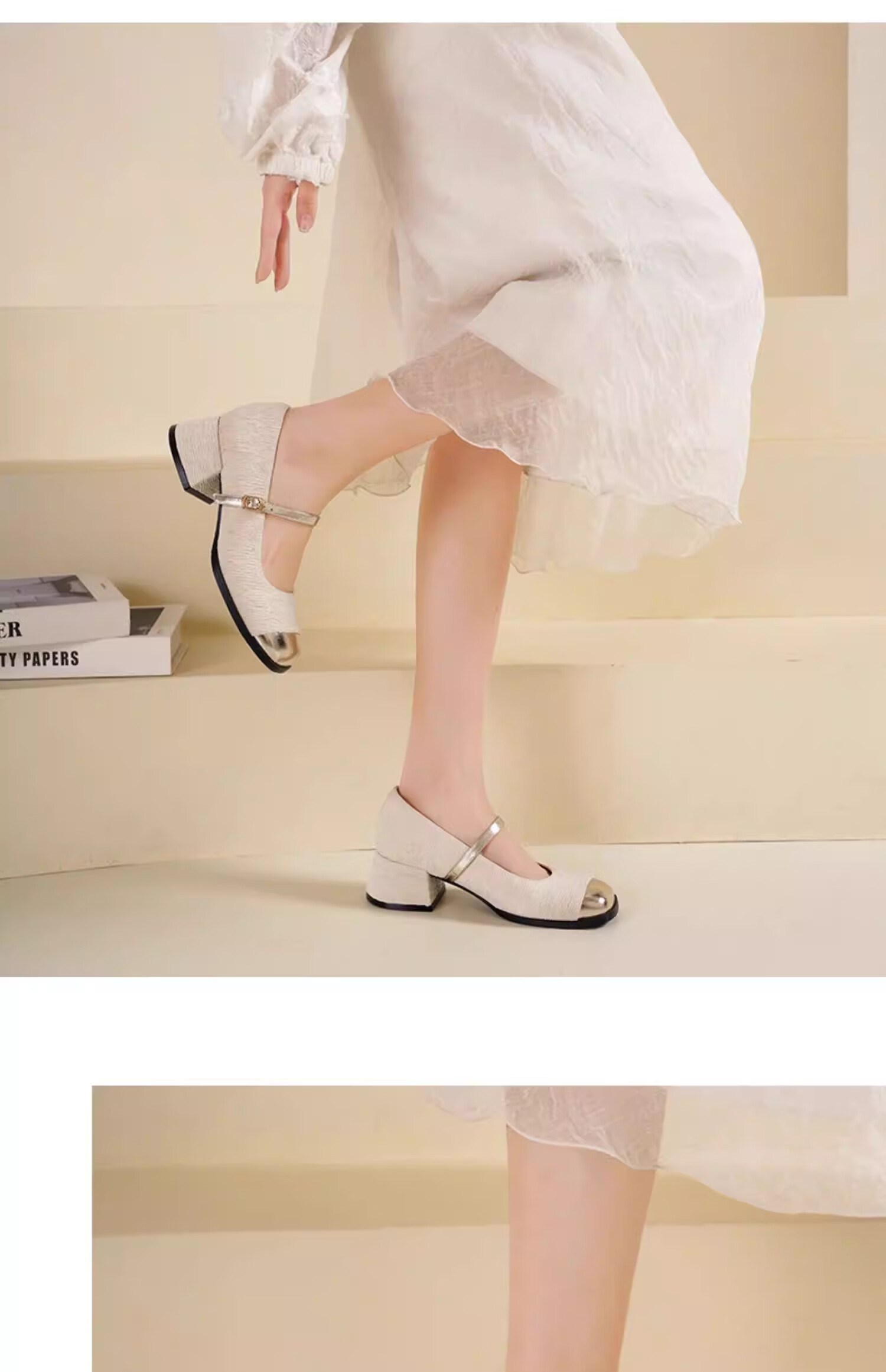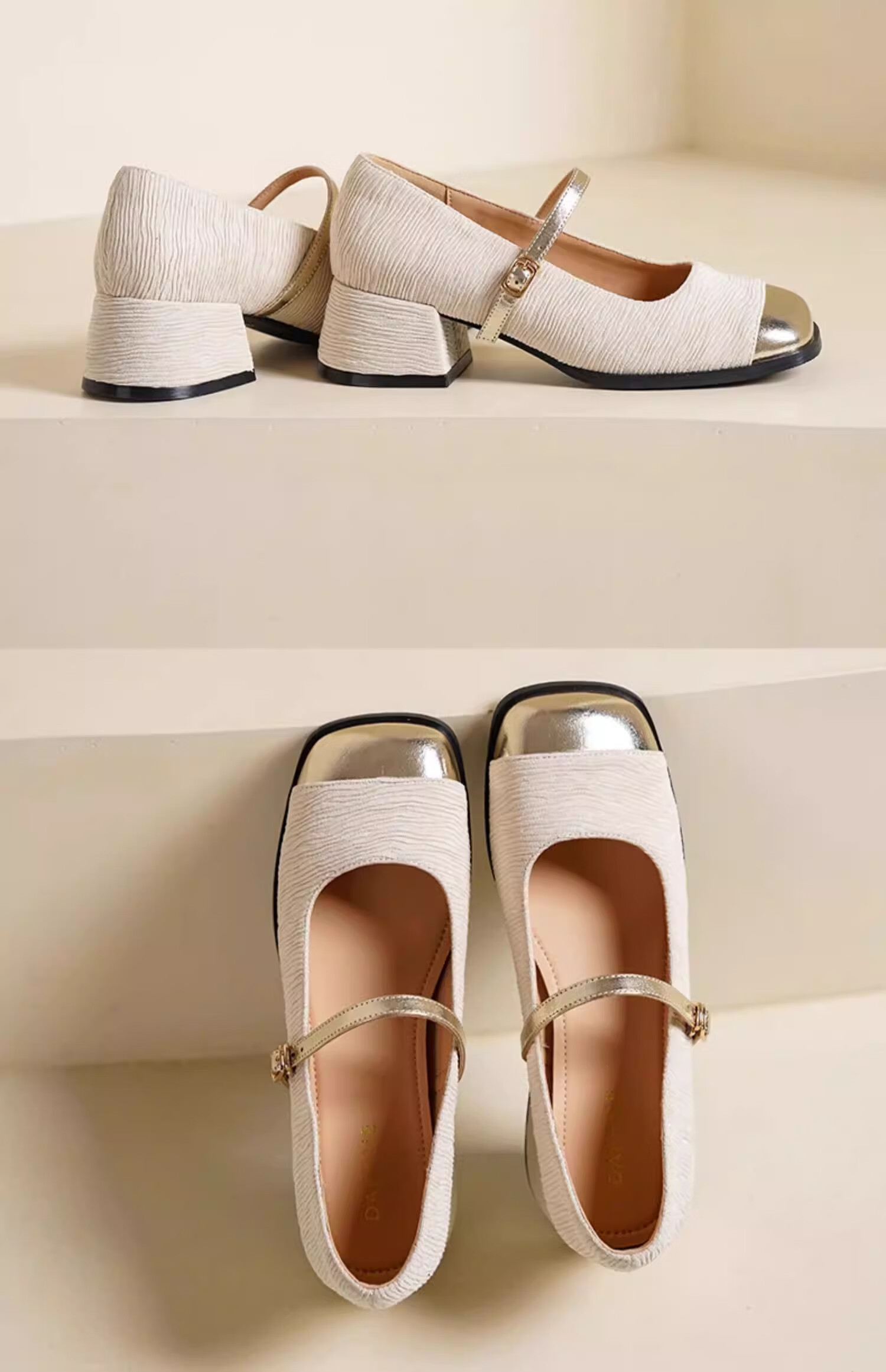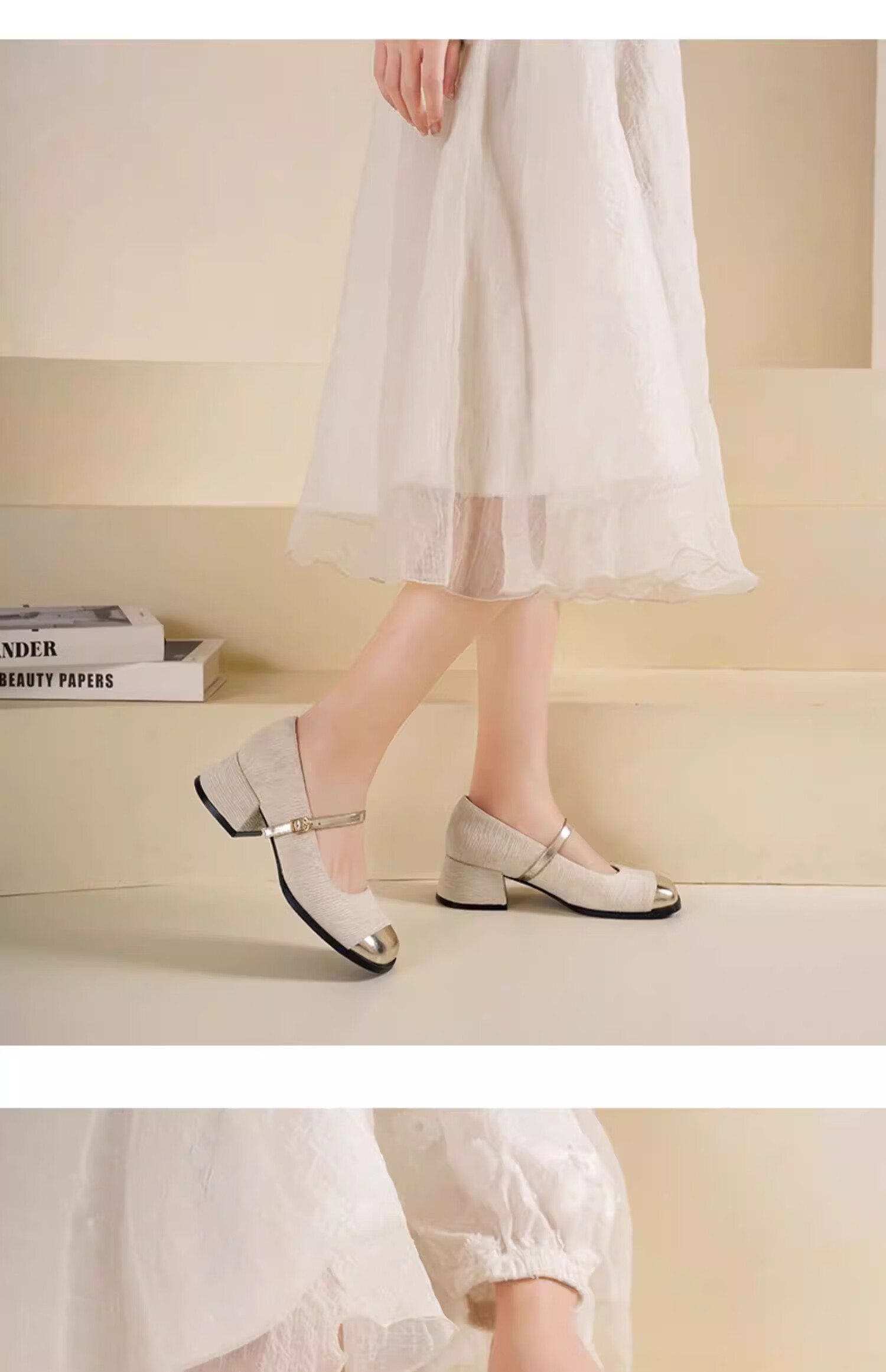 达芙妮浅口单鞋女2026新款春季粗跟小香风高跟鞋法式玛丽珍女鞋ZJ 米白色 37