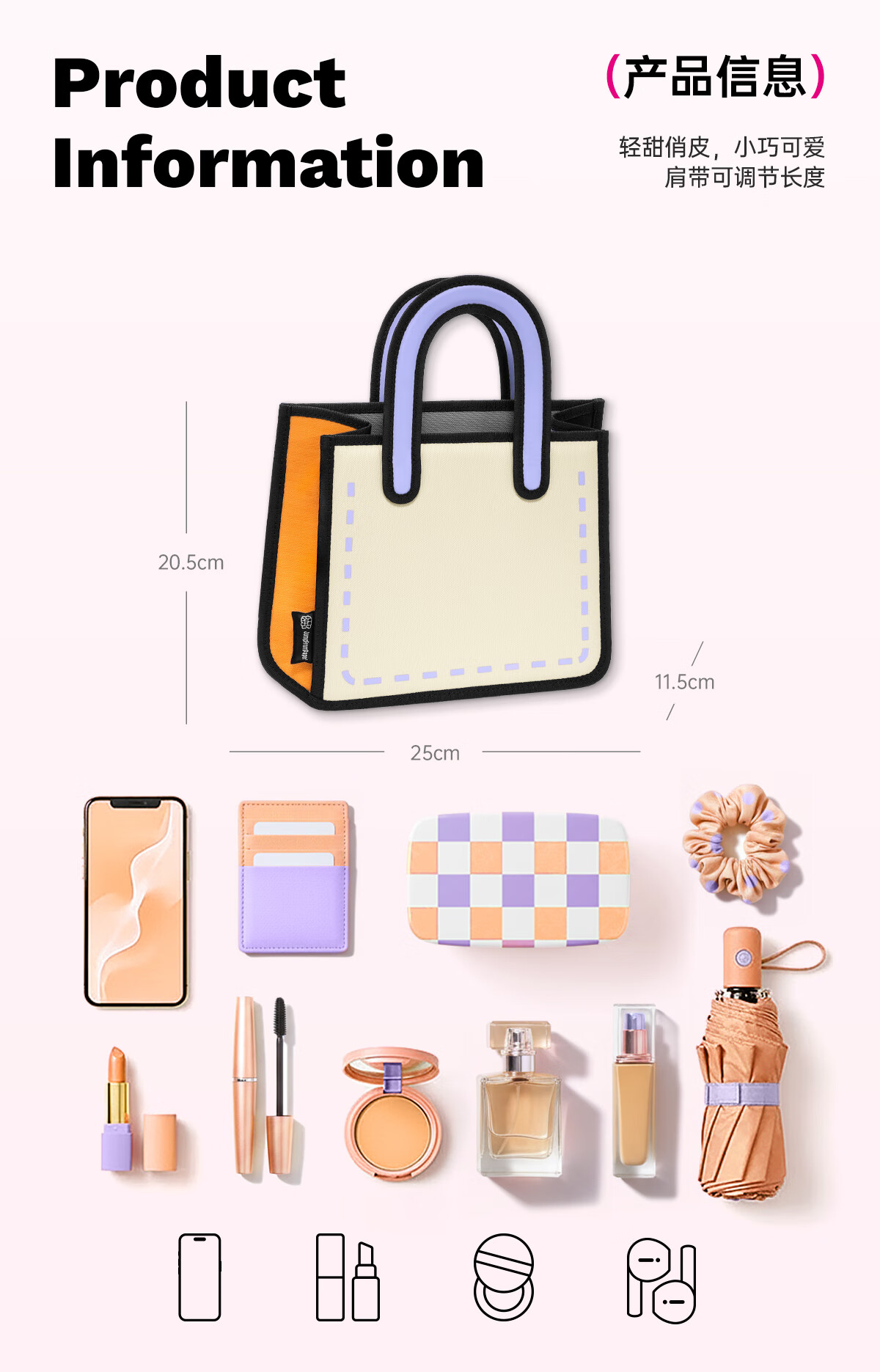 JumpFromPaper生日礼物扁扁包二次元2D漫画斜挎包女单肩包送礼斜挎包托特包女 焦糖橙