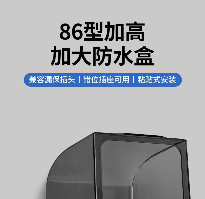 国际电工智能马桶斜五孔插座防水盒86错位加高防溅盒浴室卫生间自粘防水罩 加高加大防水盒【透明】