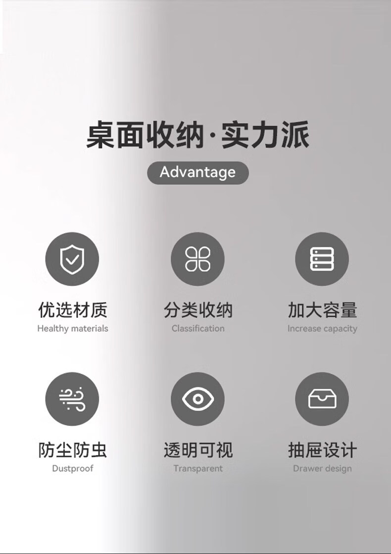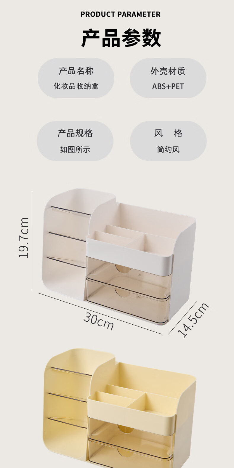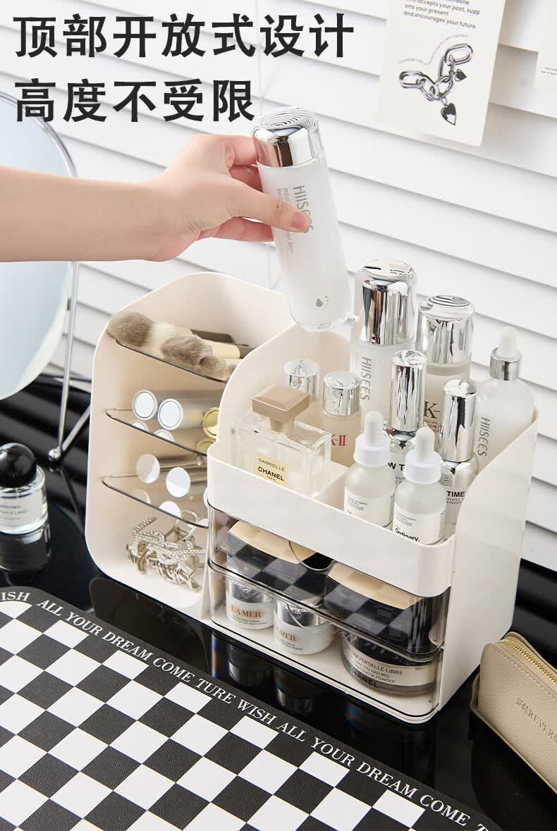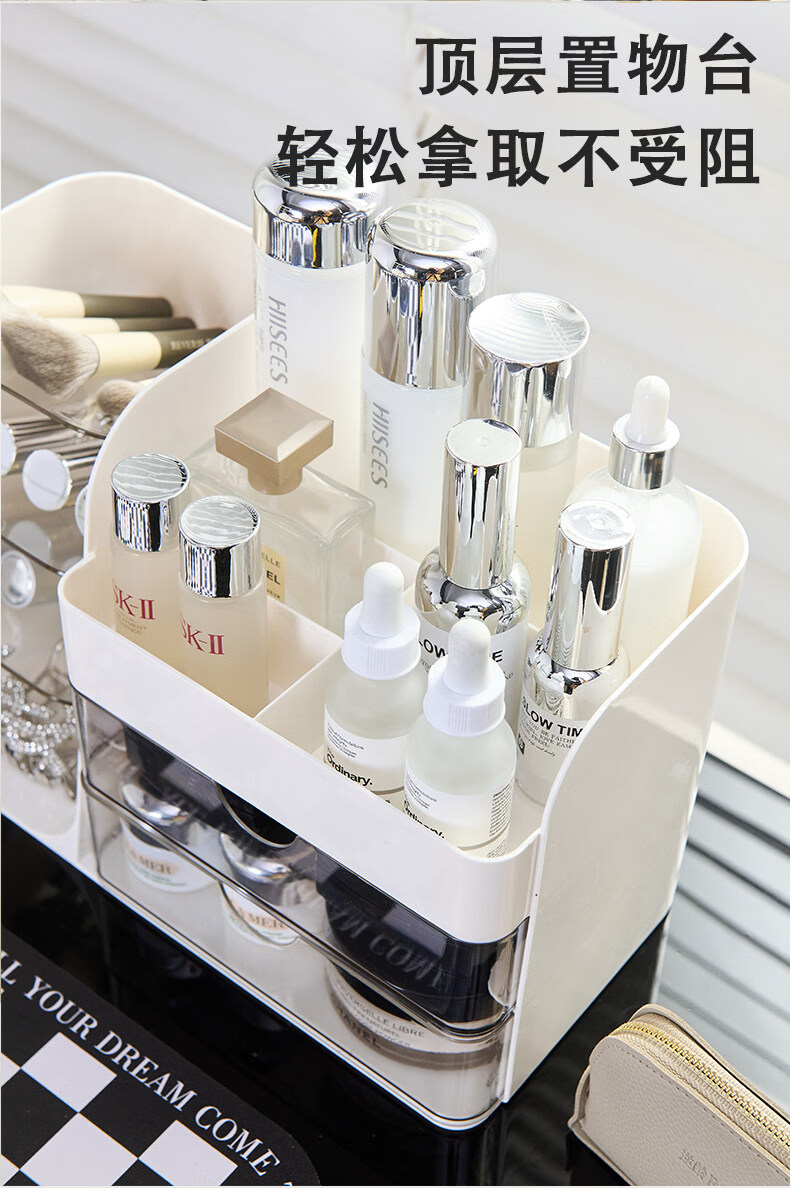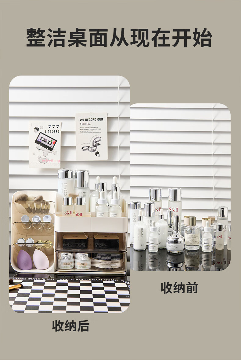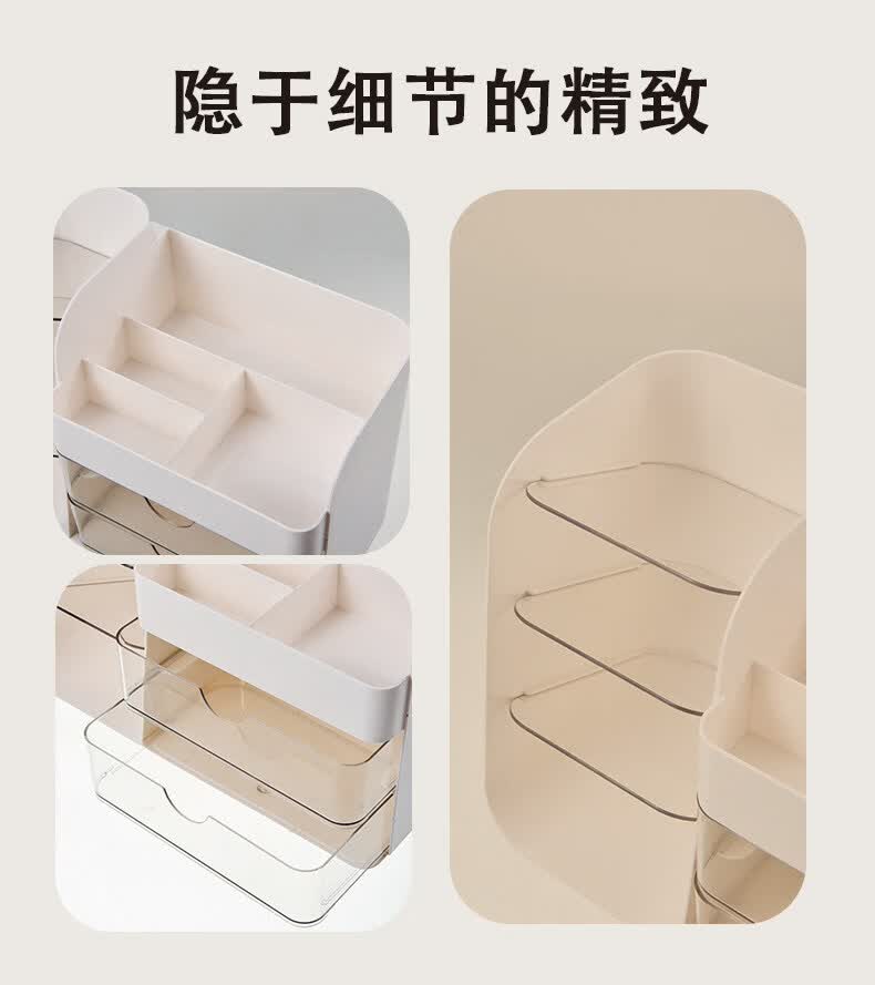 艾仕可(ASCOR)化妆品收纳盒高级感梳妆台桌面口红眉笔整理箱护肤品大容量置物架 化妆品收纳盒-奶油白【桌面组合丨分格设计】