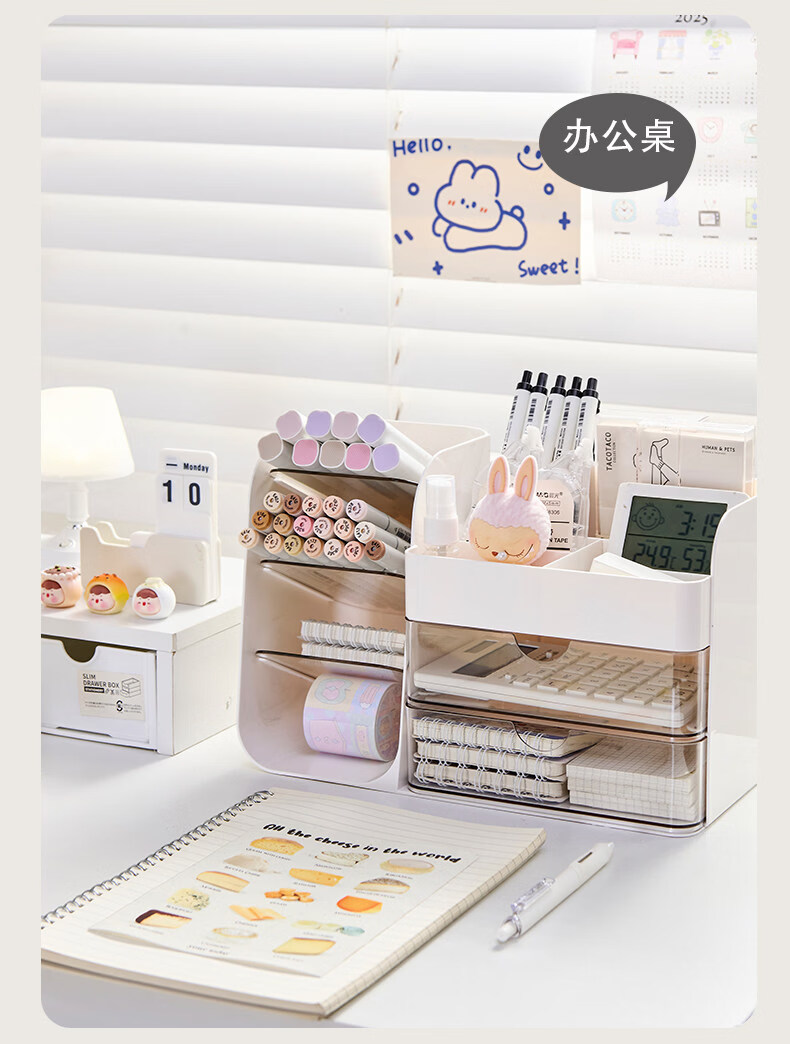 艾仕可(ASCOR)桌面收纳盒抽屉式办公室杂物整理盒大容量多功能斜插式文具笔筒 格纹小狗【旋转笔筒丨分格收纳】