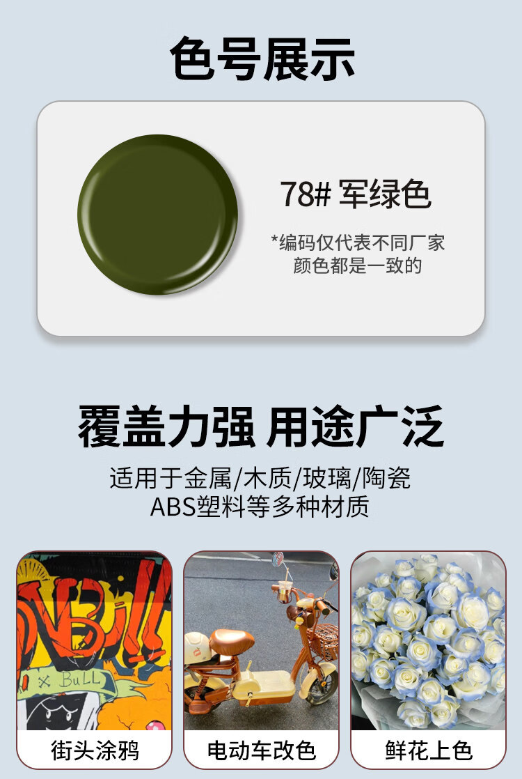 漆先生军绿色自喷漆广告装潢改色漆护栏家具自行车汽车电动车改色翻新墙面涂鸦手喷漆机柜文件柜门窗防锈金属油漆 78军绿色400ml