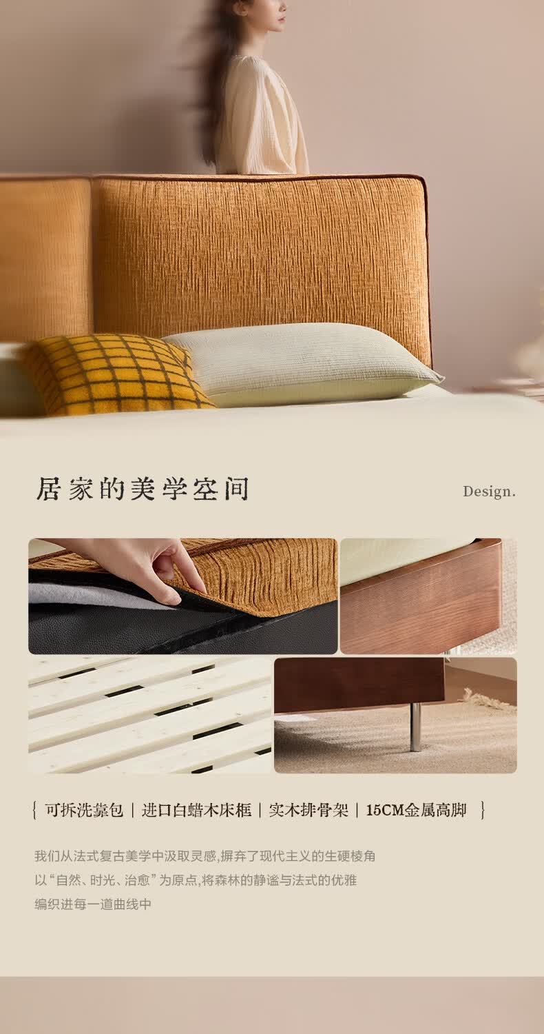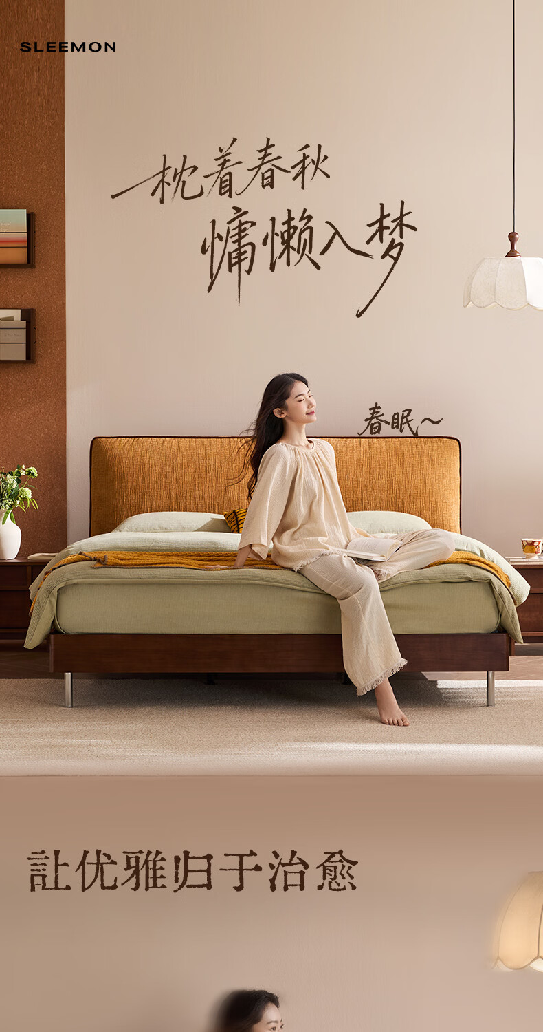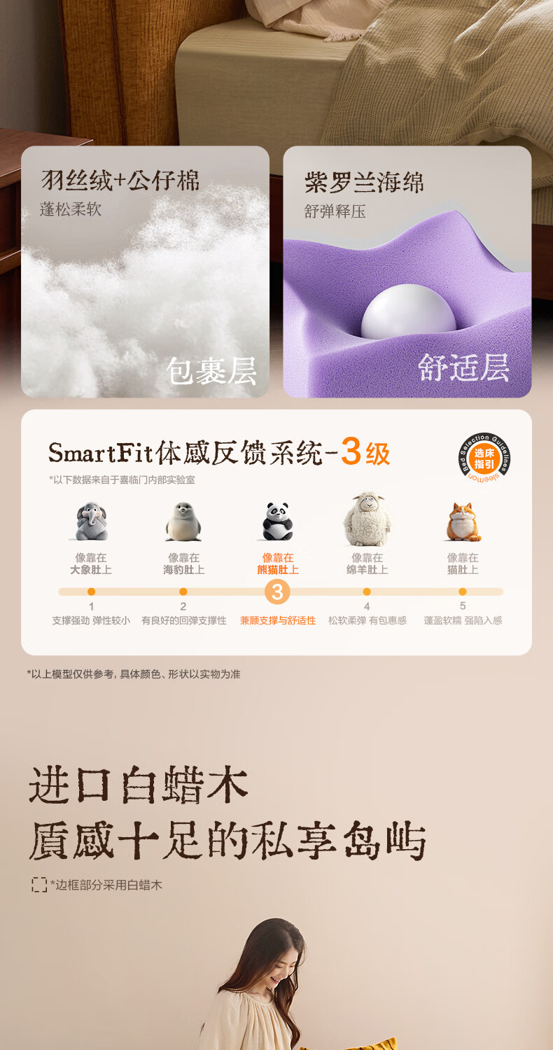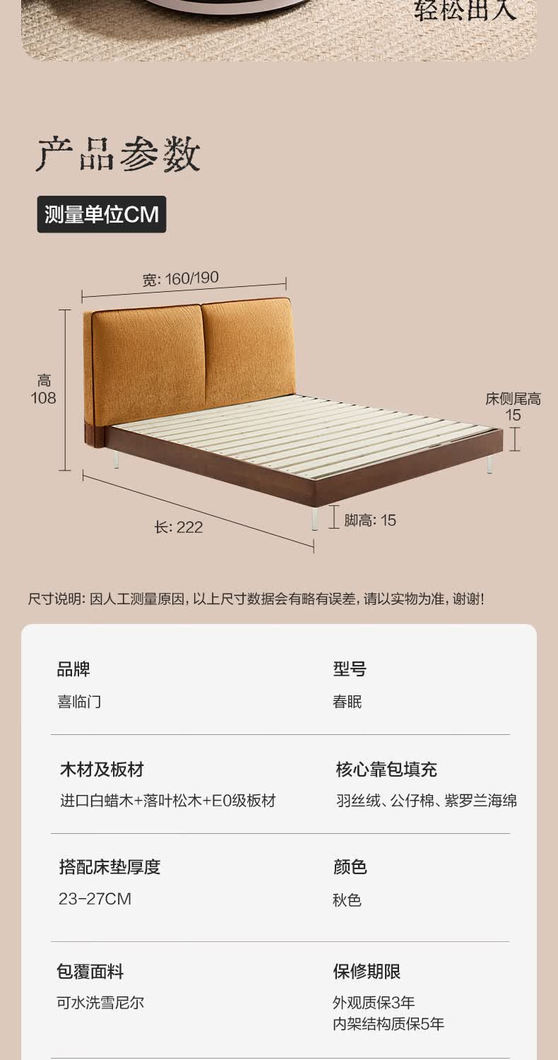 喜临门现代简约实木床双人长绒棉软包床头金属脚架卧室家具 春眠 秋色+白骑士Plus床垫 1.8*2米