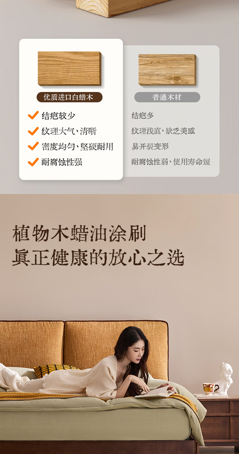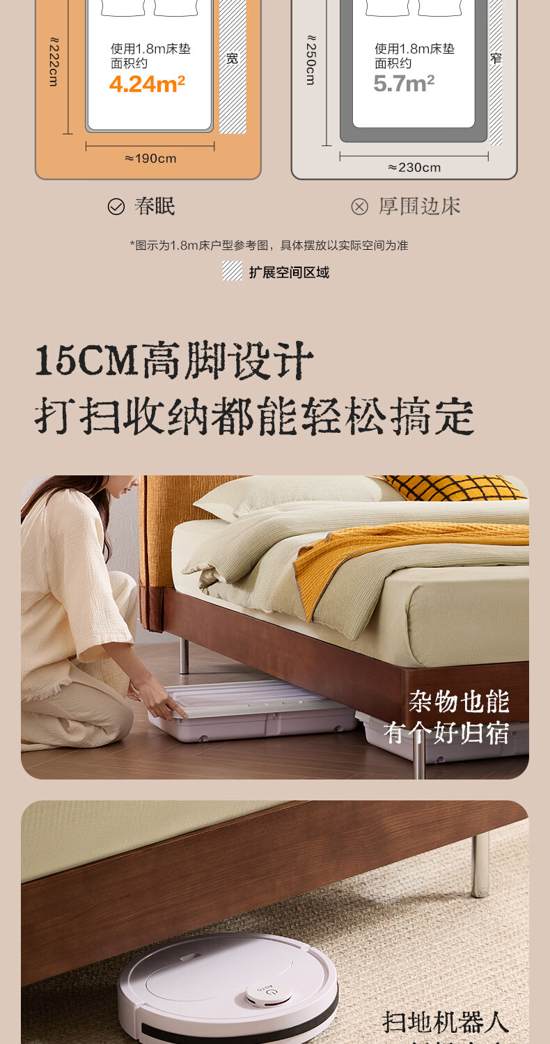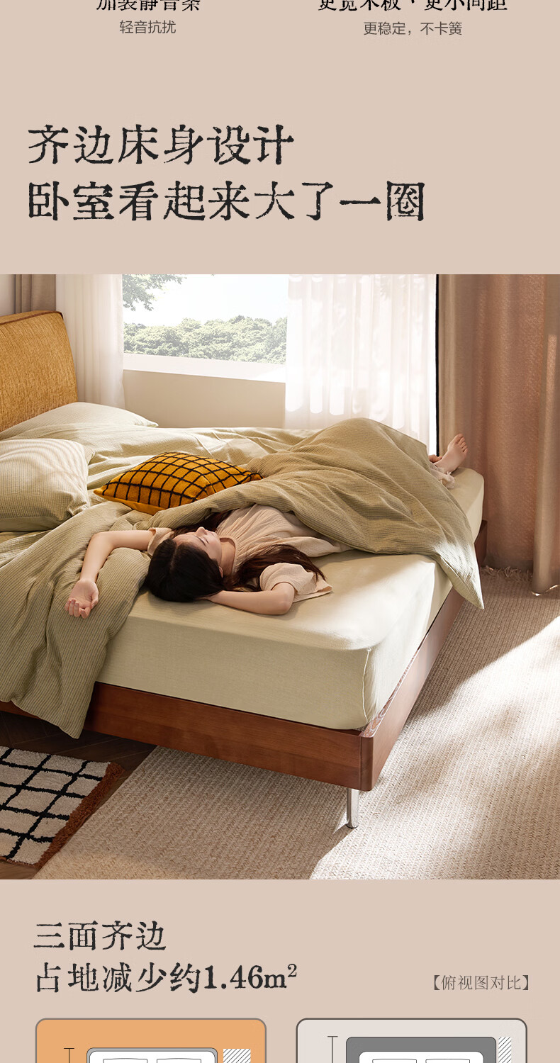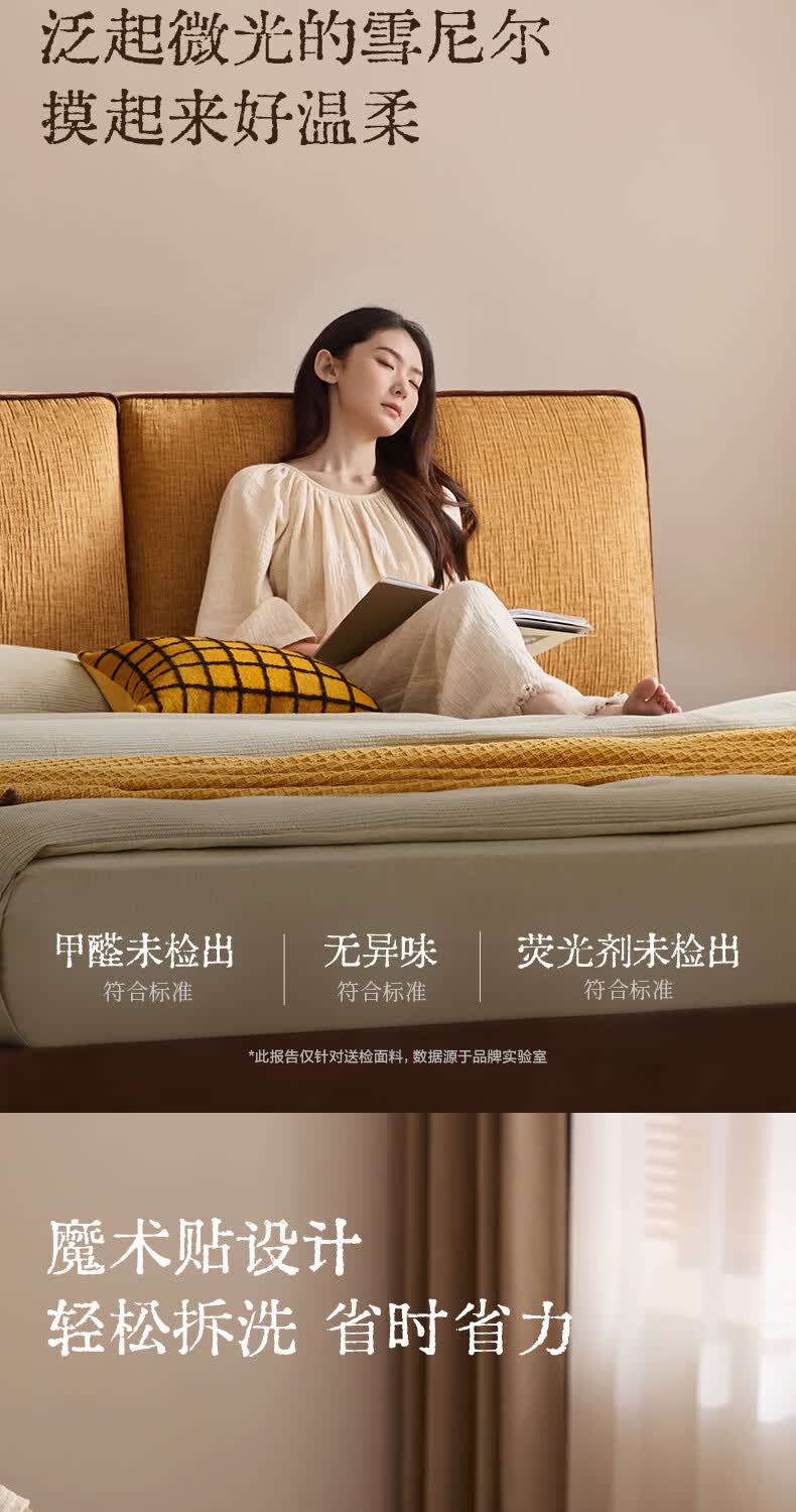 喜临门现代简约实木床双人长绒棉软包床头金属脚架卧室家具 春眠 秋色+白骑士Plus床垫 1.8*2米