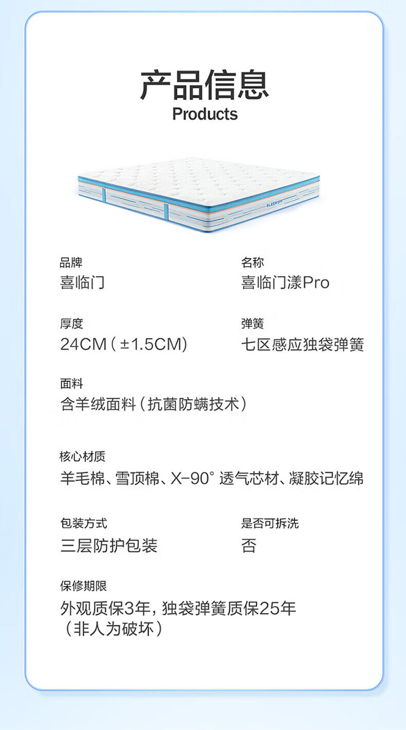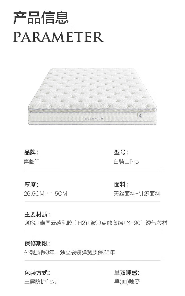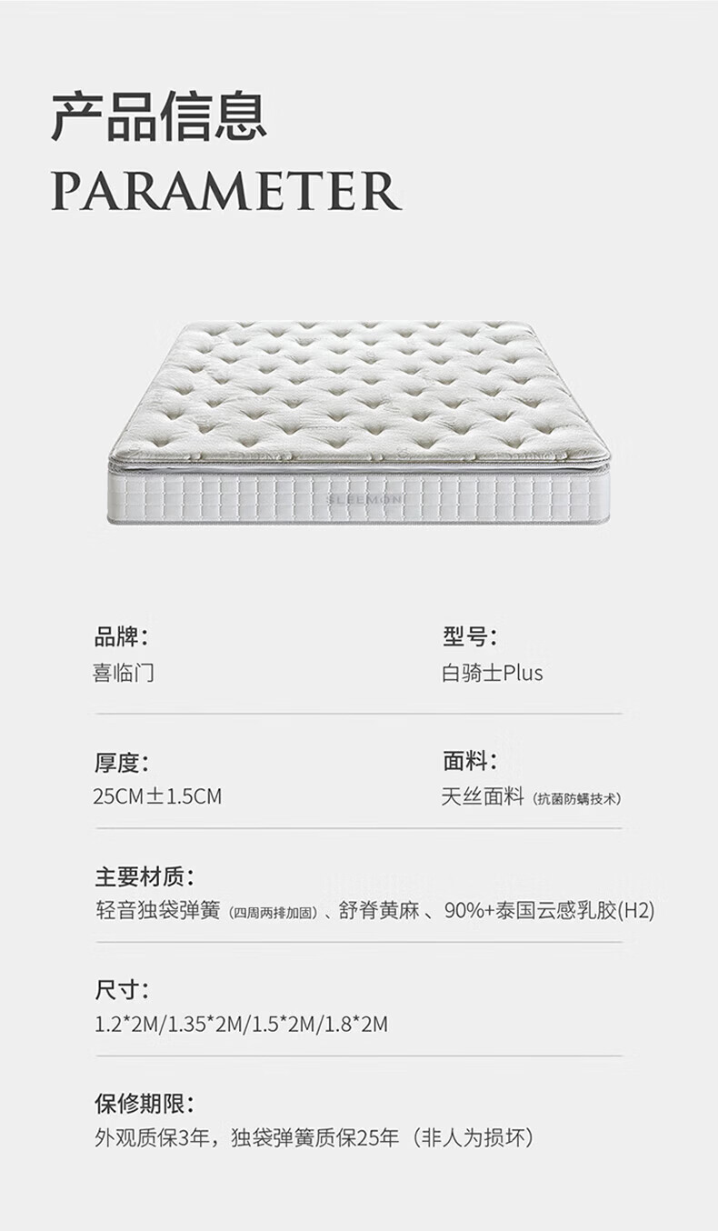海马天然乳胶椰棕黄麻护脊席梦思防螨1.8米软硬独立袋装弹簧床垫 独立弹簧+2cm乳胶(23cm) 1.8*2米