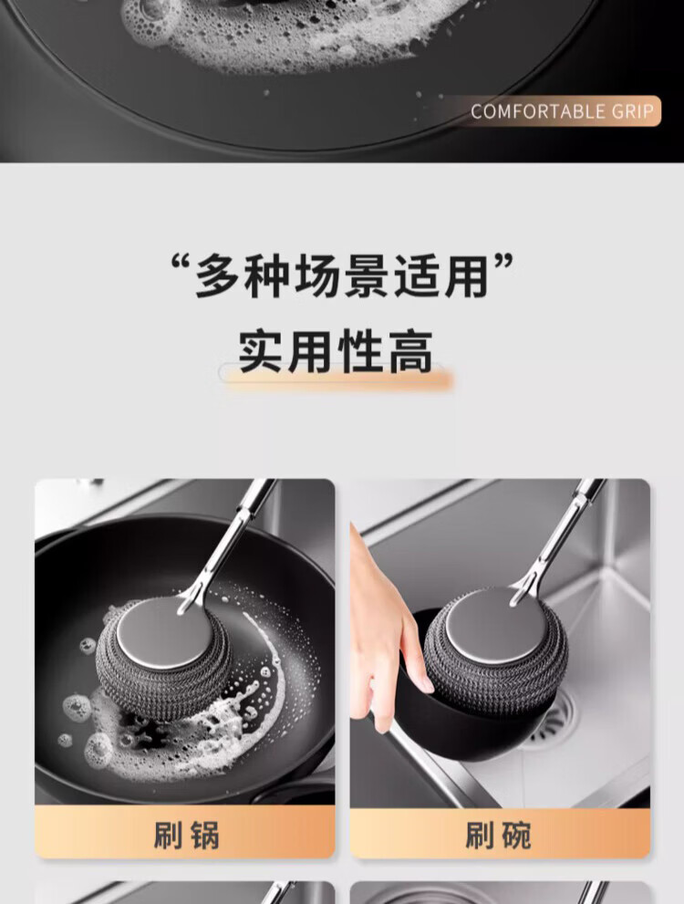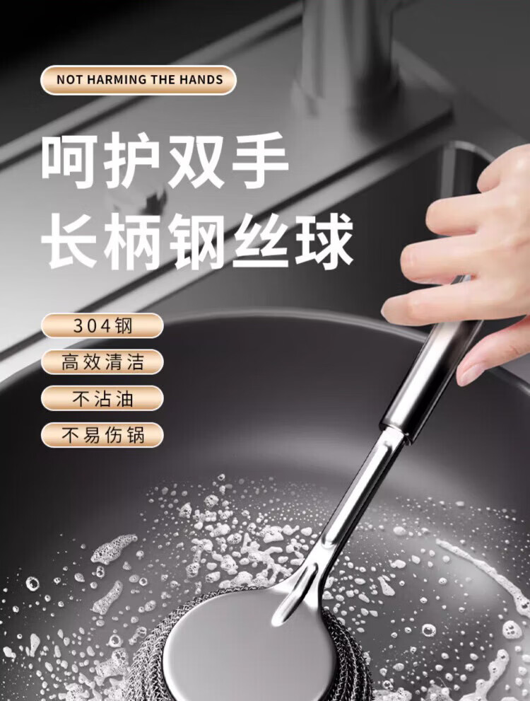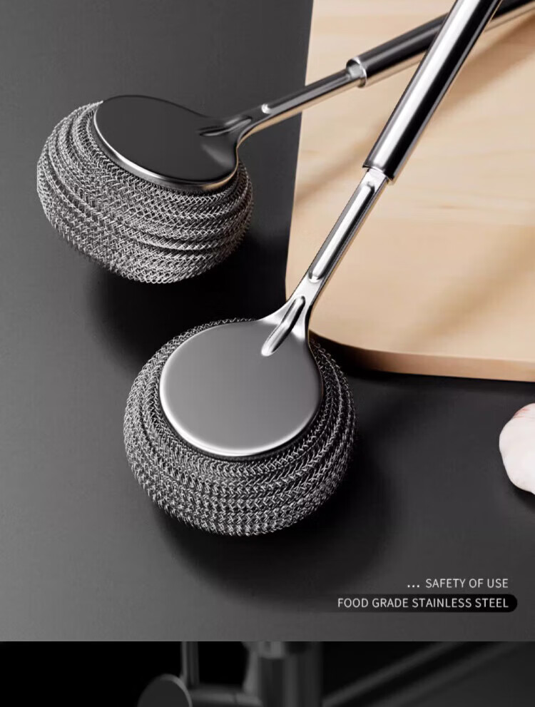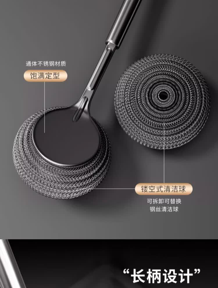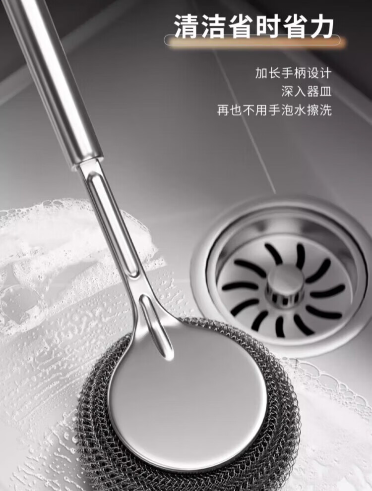 艾仕可(ASCOR)不锈钢锅刷子钢丝球刷锅神器洗锅神器刷锅刷子钢丝刷长柄清洁工具 304不锈钢锅刷 1柄+1个刷头套装