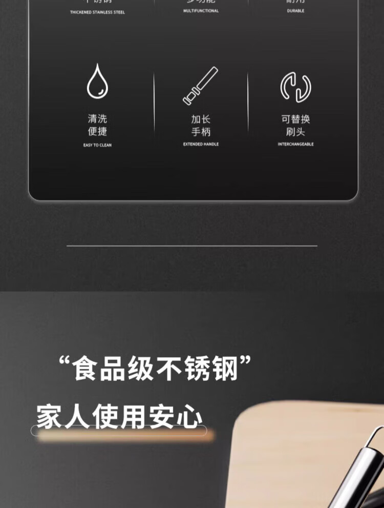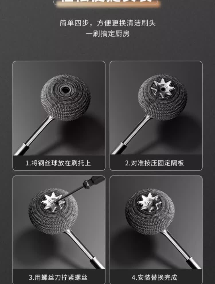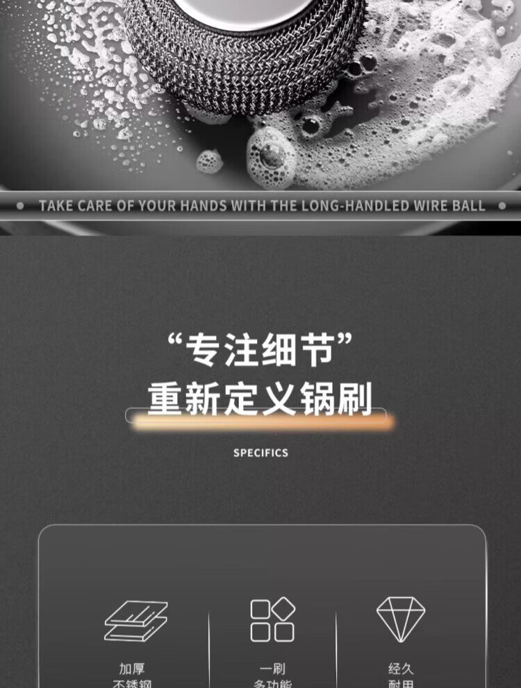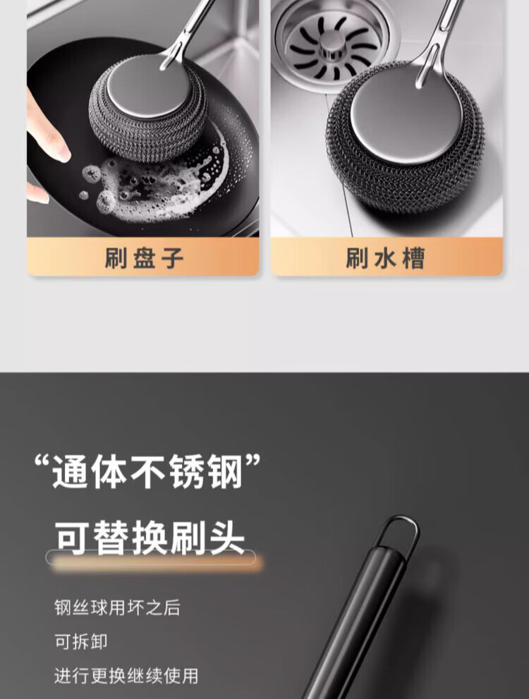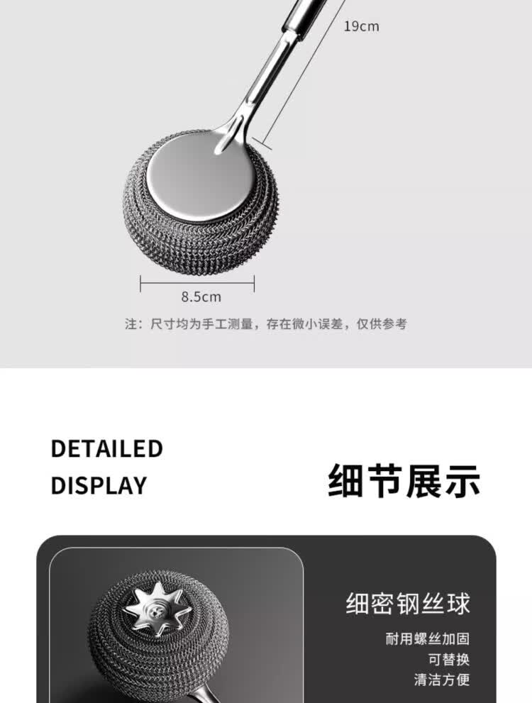 艾仕可(ASCOR)不锈钢锅刷子钢丝球刷锅神器洗锅神器刷锅刷子钢丝刷长柄清洁工具 304不锈钢锅刷 1柄+1个刷头套装