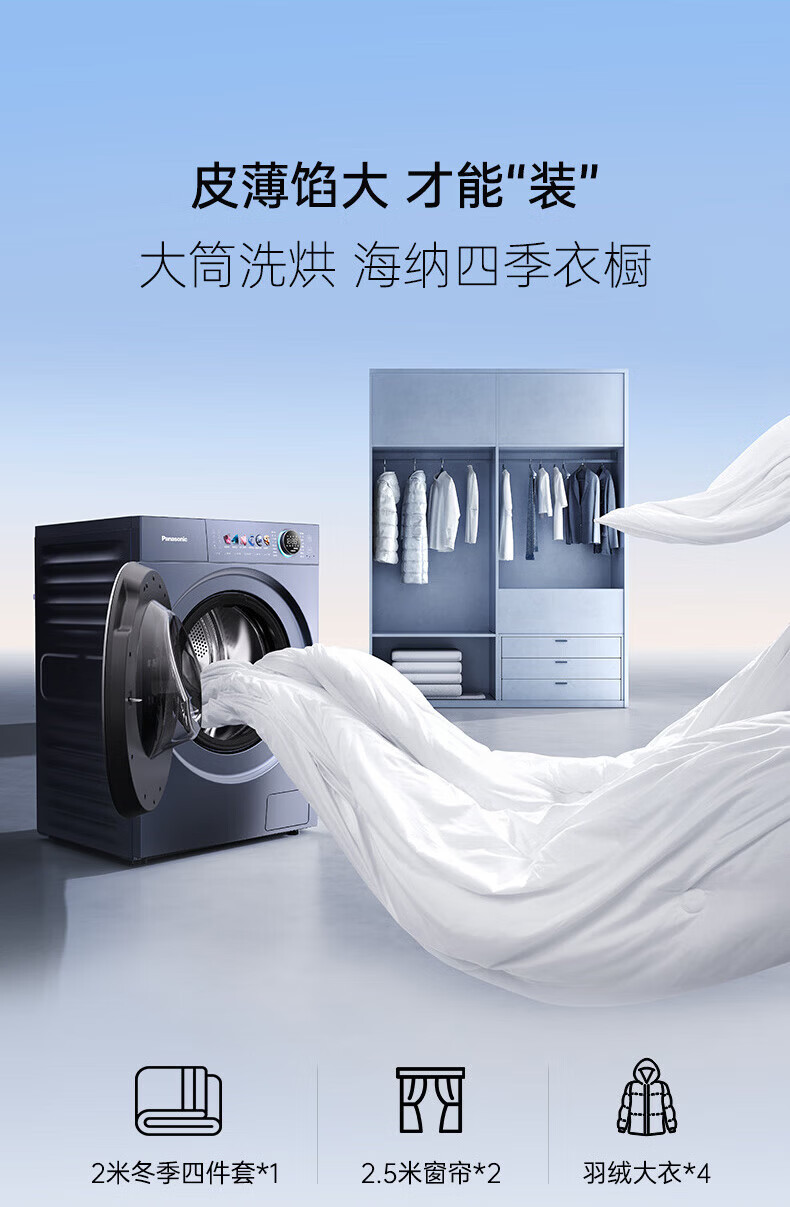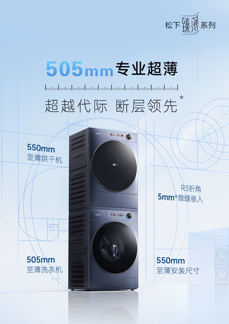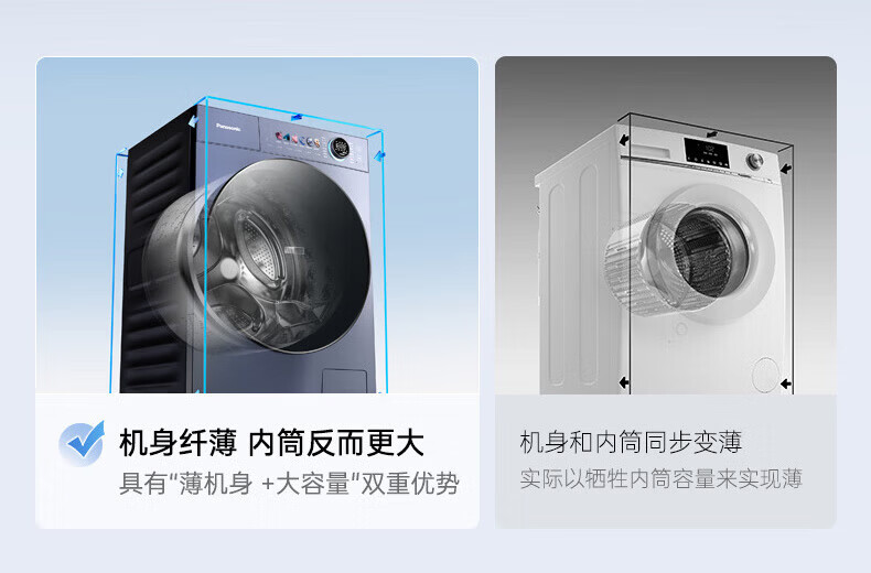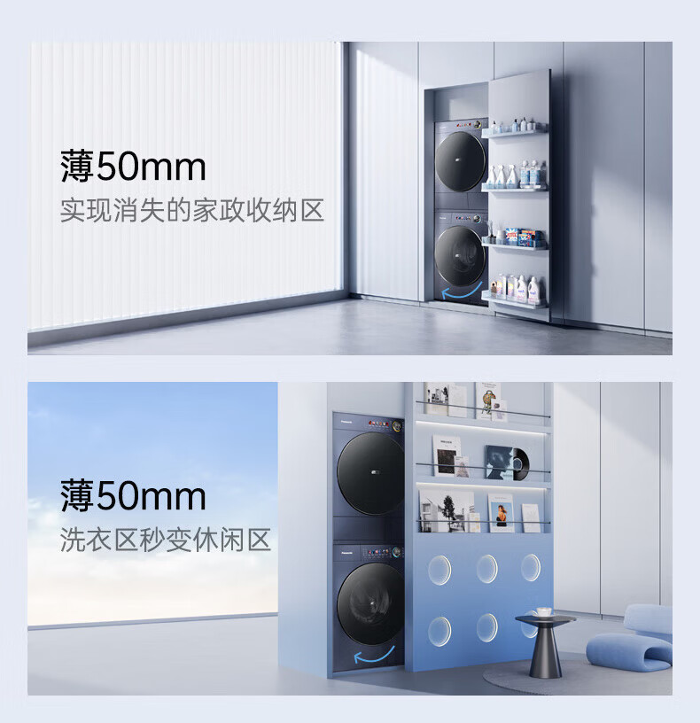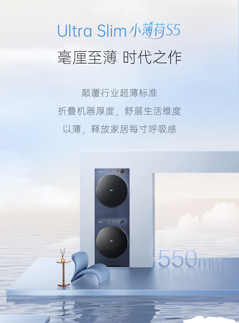 松下(Panasonic)小薄荷S5洗烘套装10kg滚筒洗衣机+10kg变频热泵烘干机超薄全嵌水氧泡沫净光动银除菌 M2N1+M2NR1小薄荷S5洗烘套装