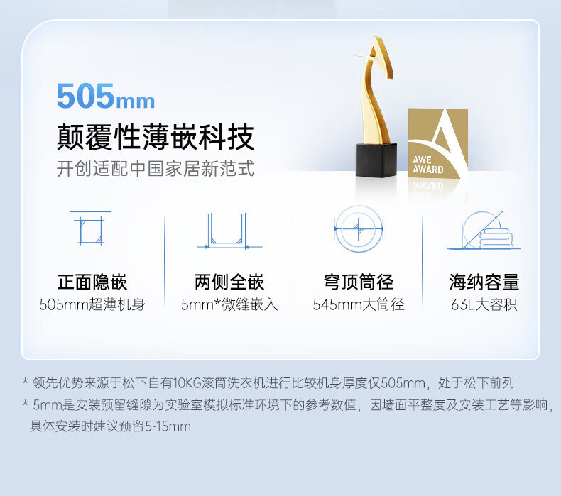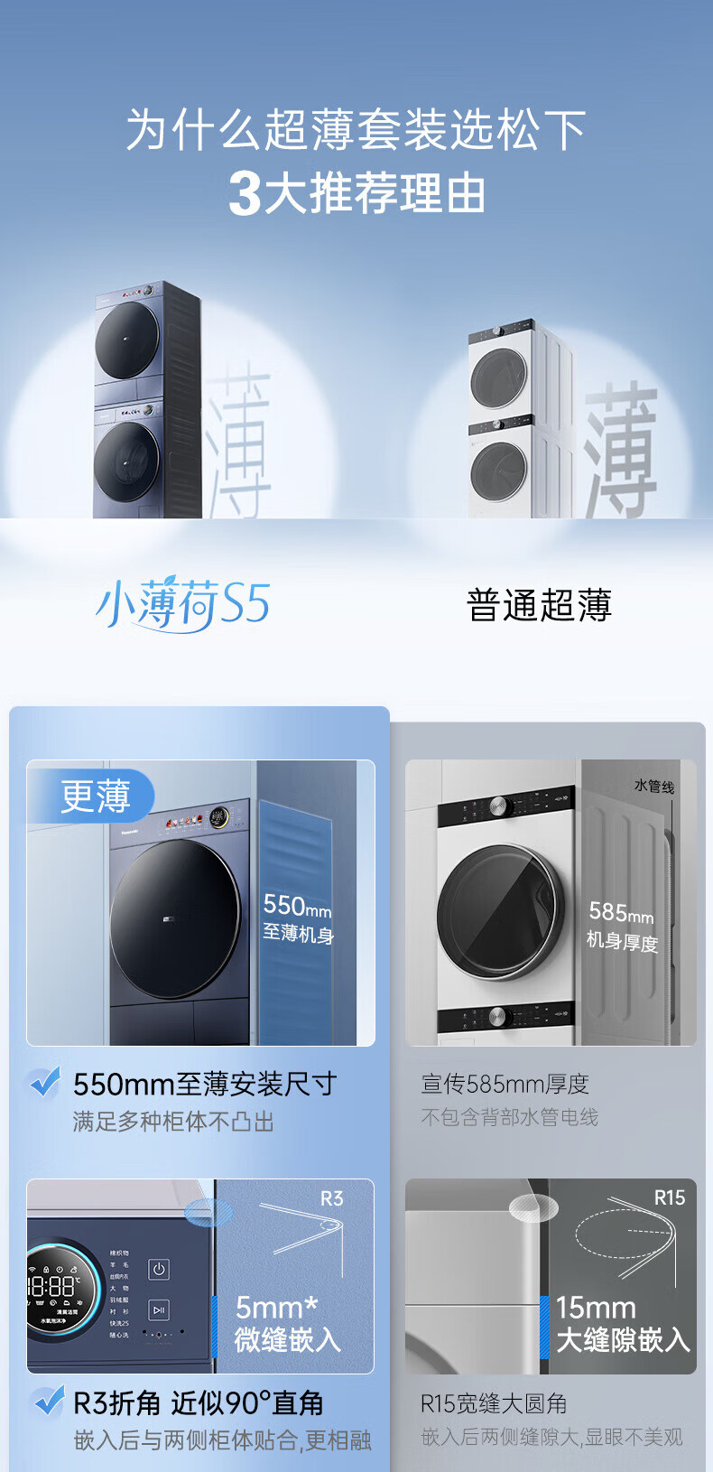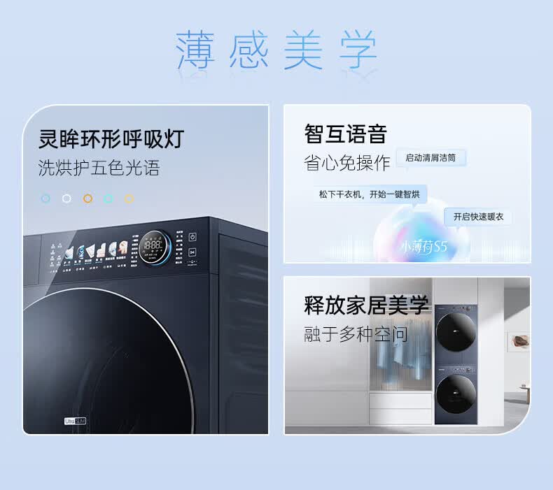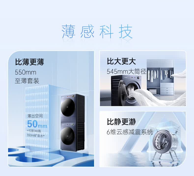 松下(Panasonic)小薄荷S5洗烘套装10kg滚筒洗衣机+10kg变频热泵烘干机超薄全嵌水氧泡沫净光动银除菌 M2N1+M2NR1小薄荷S5洗烘套装