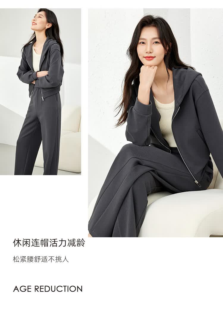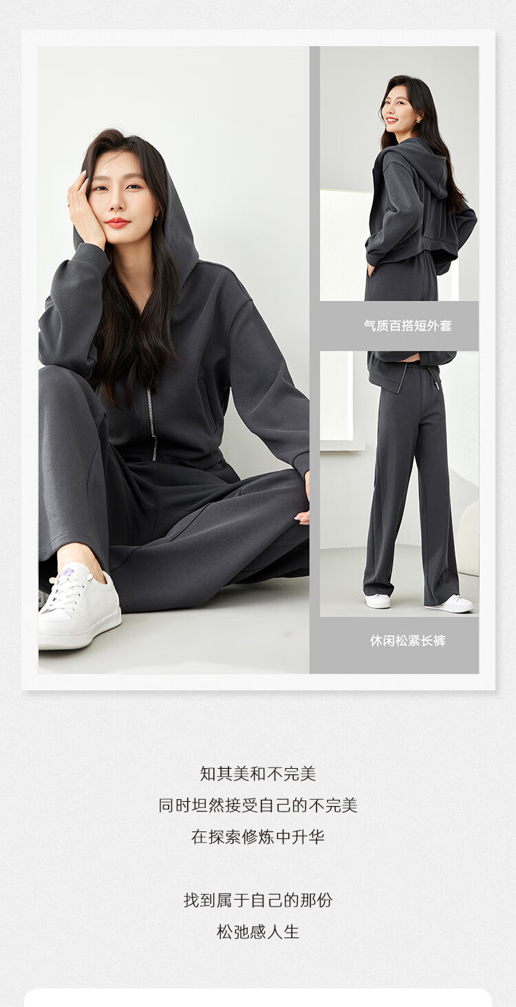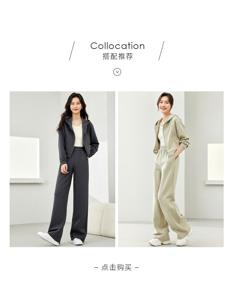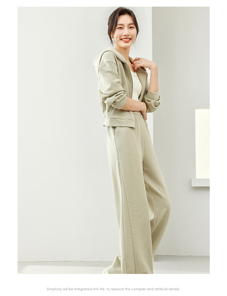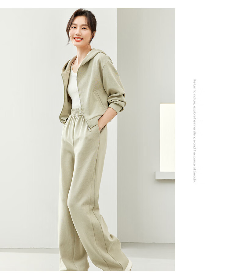 梵希蔓休闲运动套装女秋季新款高级感卫衣裤子两件套 浅绿色 S
