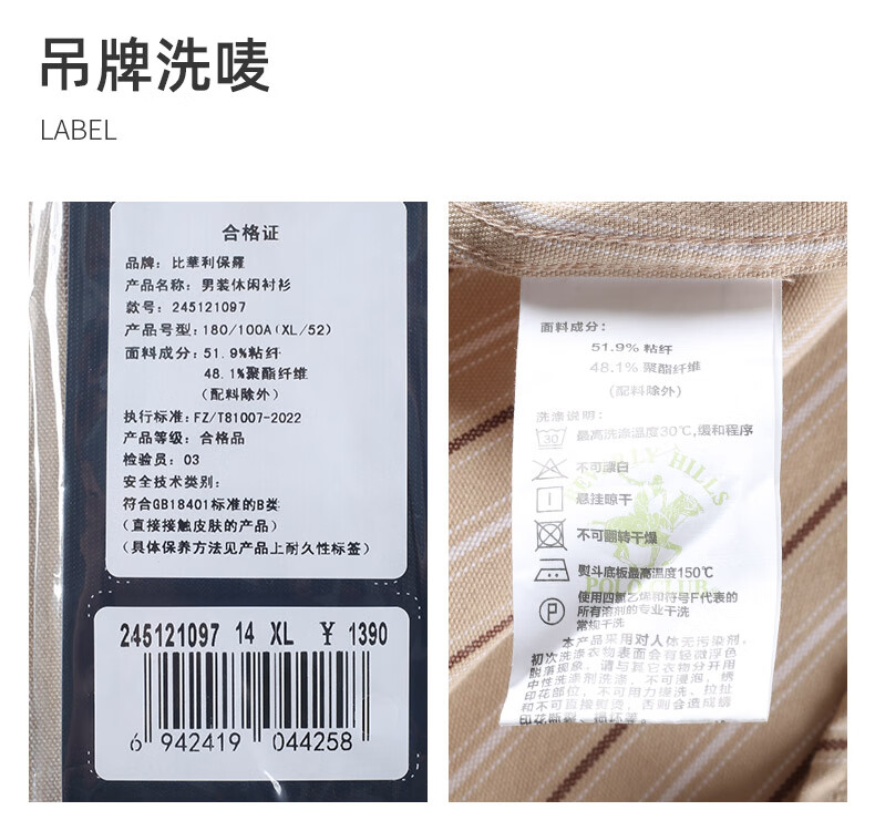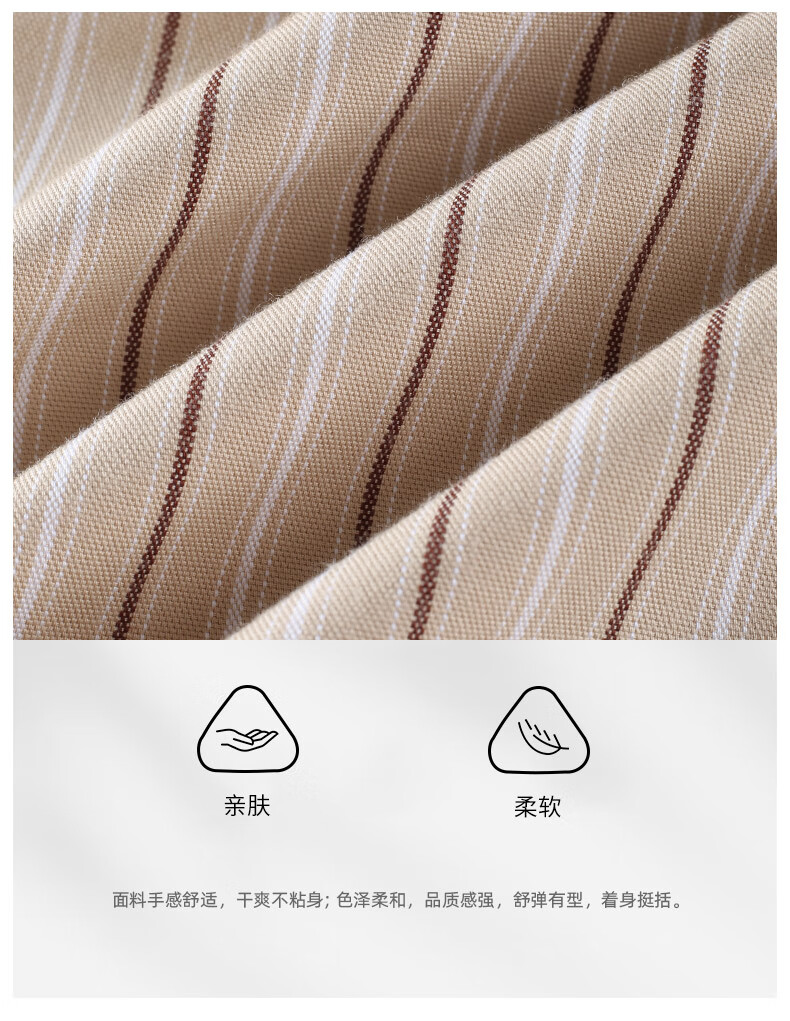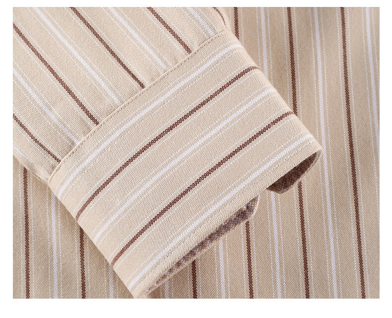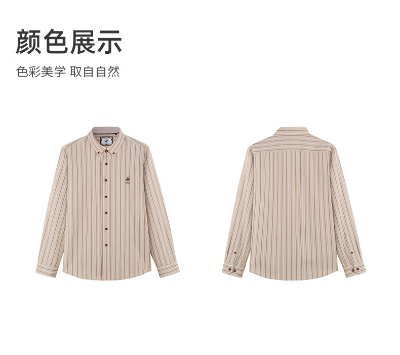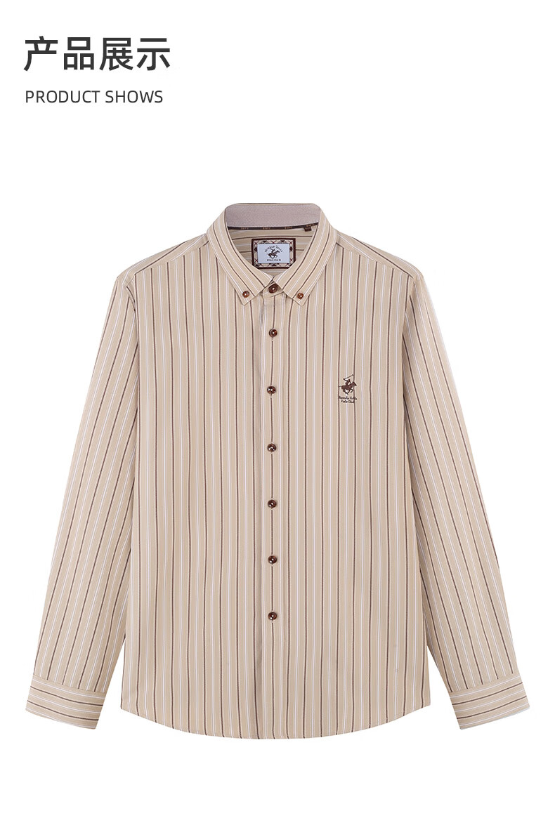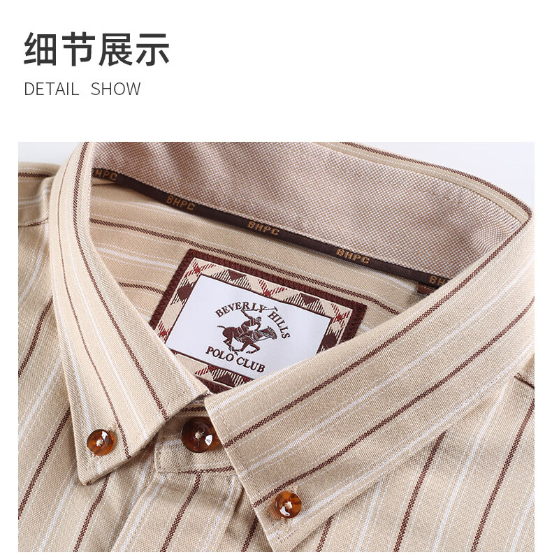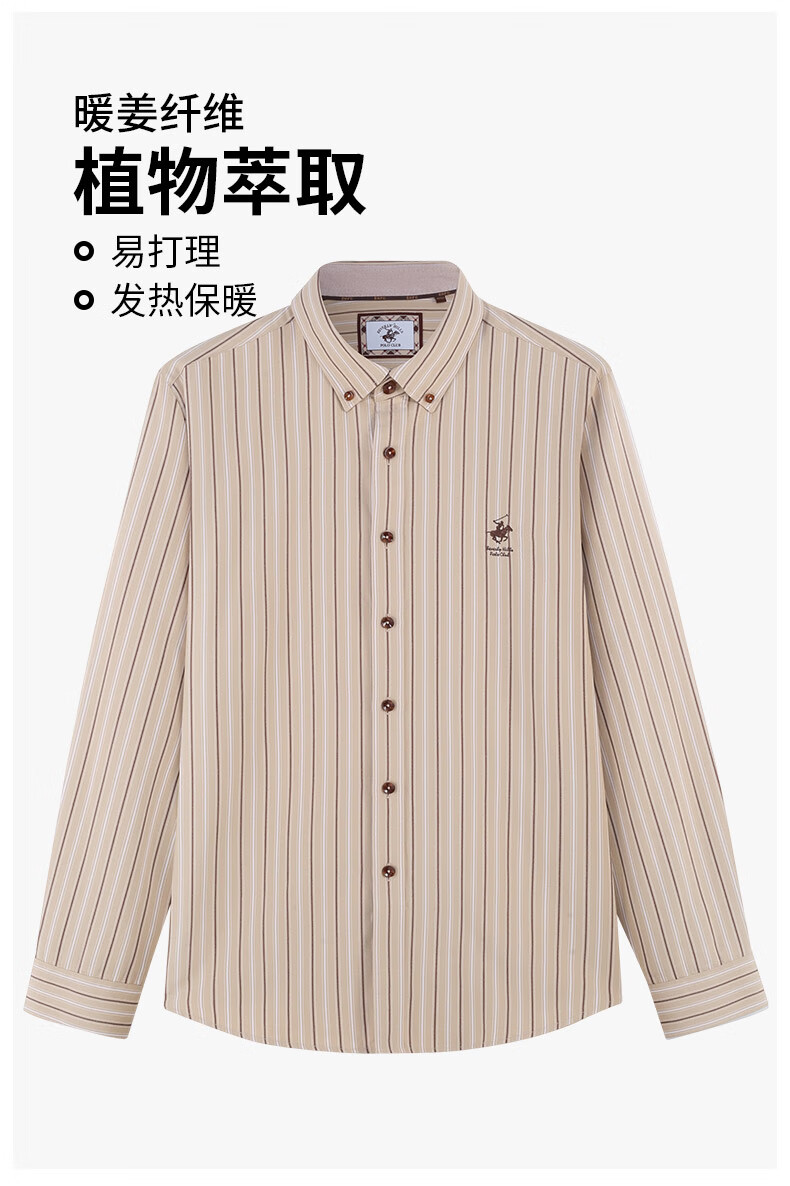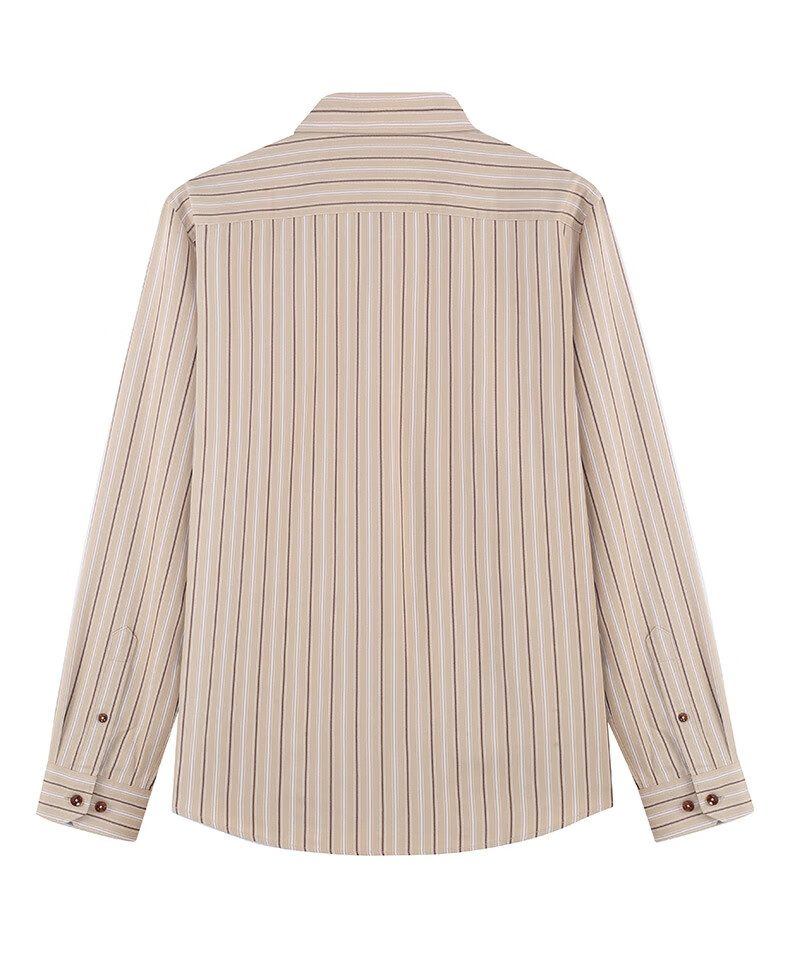 比华利保罗【暖姜纤维】秋冬新款休闲舒适条纹长袖衬衣浅卡其245121097 浅卡其 L