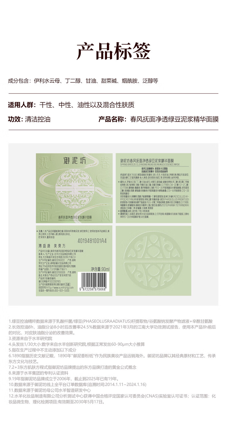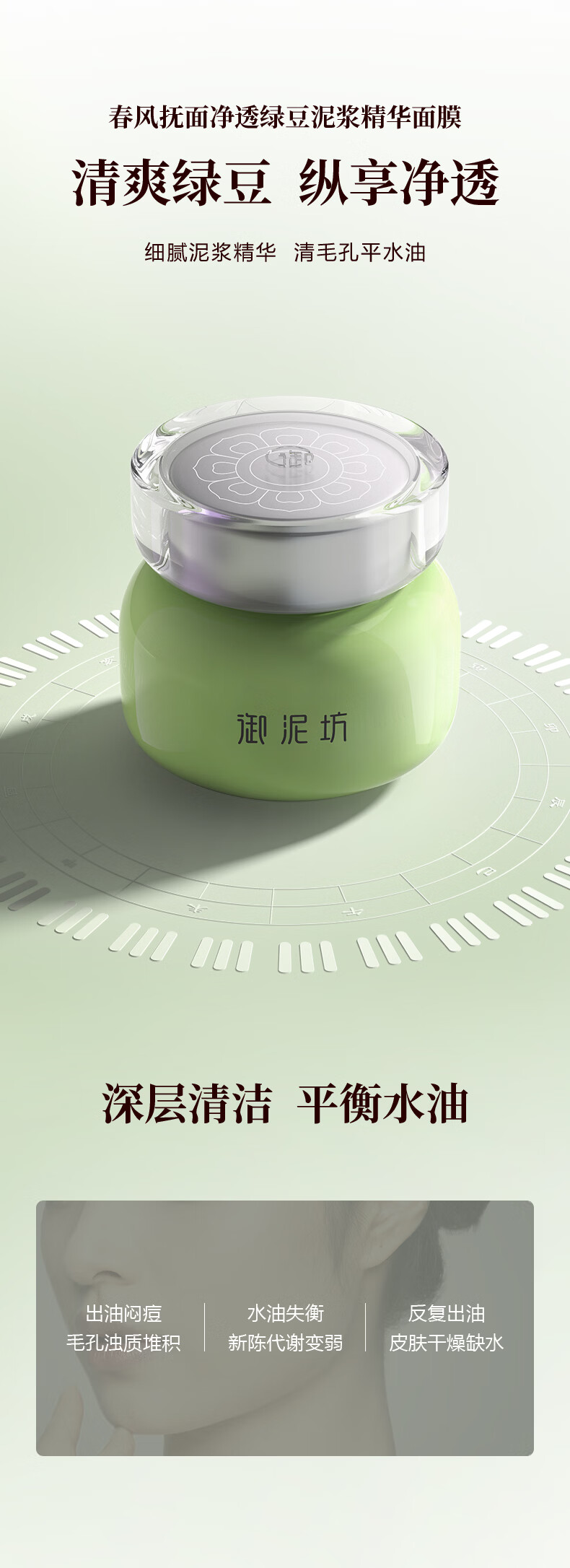 御泥坊春风抚面净透绿豆泥浆精华面膜清洁泥膜 涂抹式泥膜 三八节女神礼 绿豆泥正装90ml