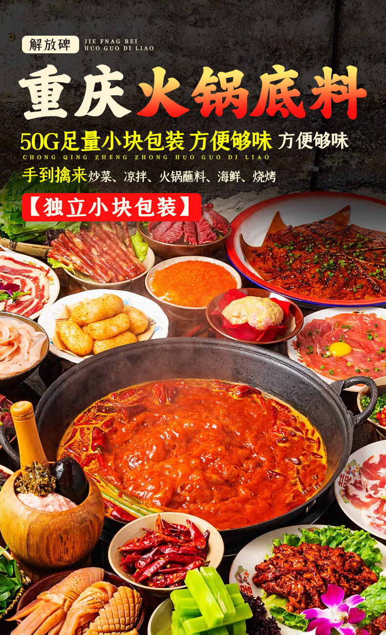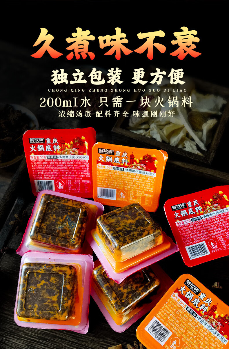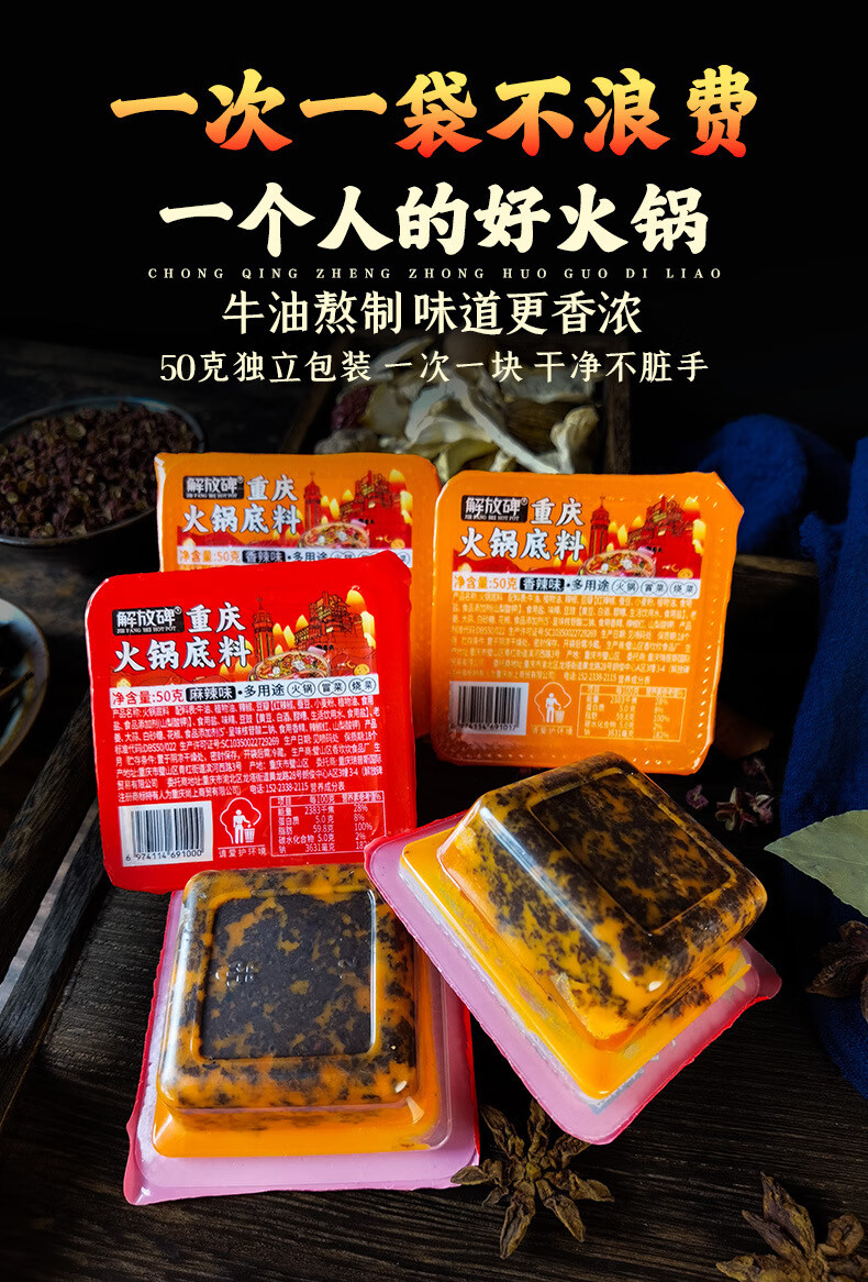 解放碑15包解放碑正宗重庆牛油香辣老火锅底料小包装50g/盒重庆火锅底料 牛油香辣底料*15包