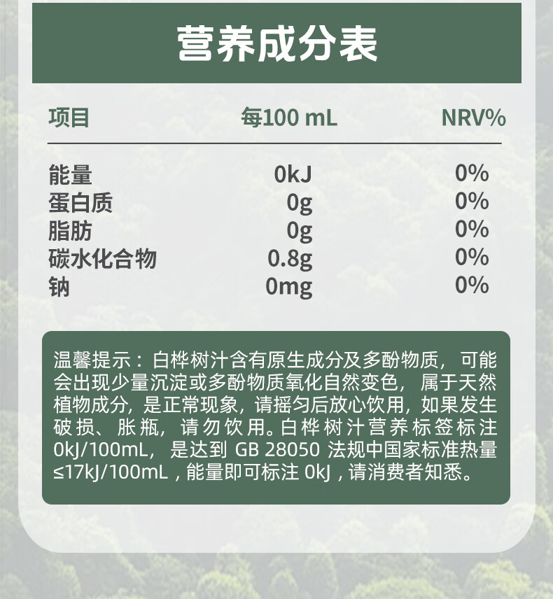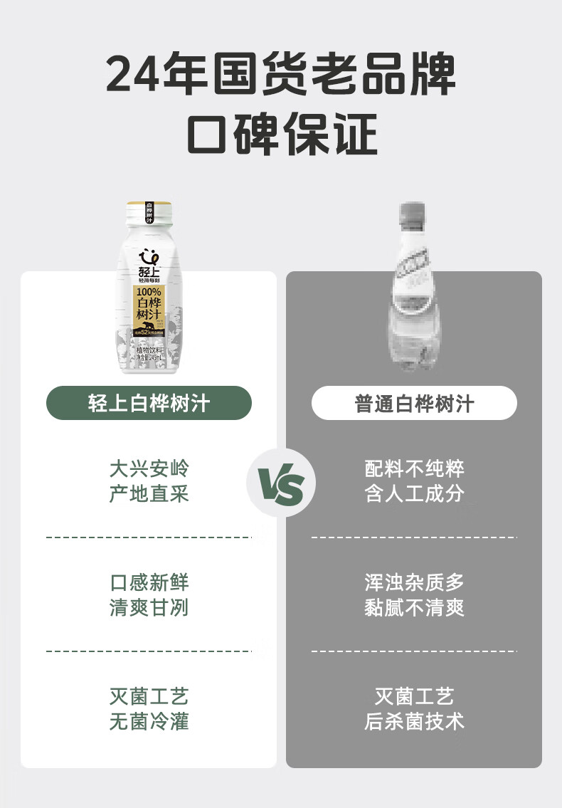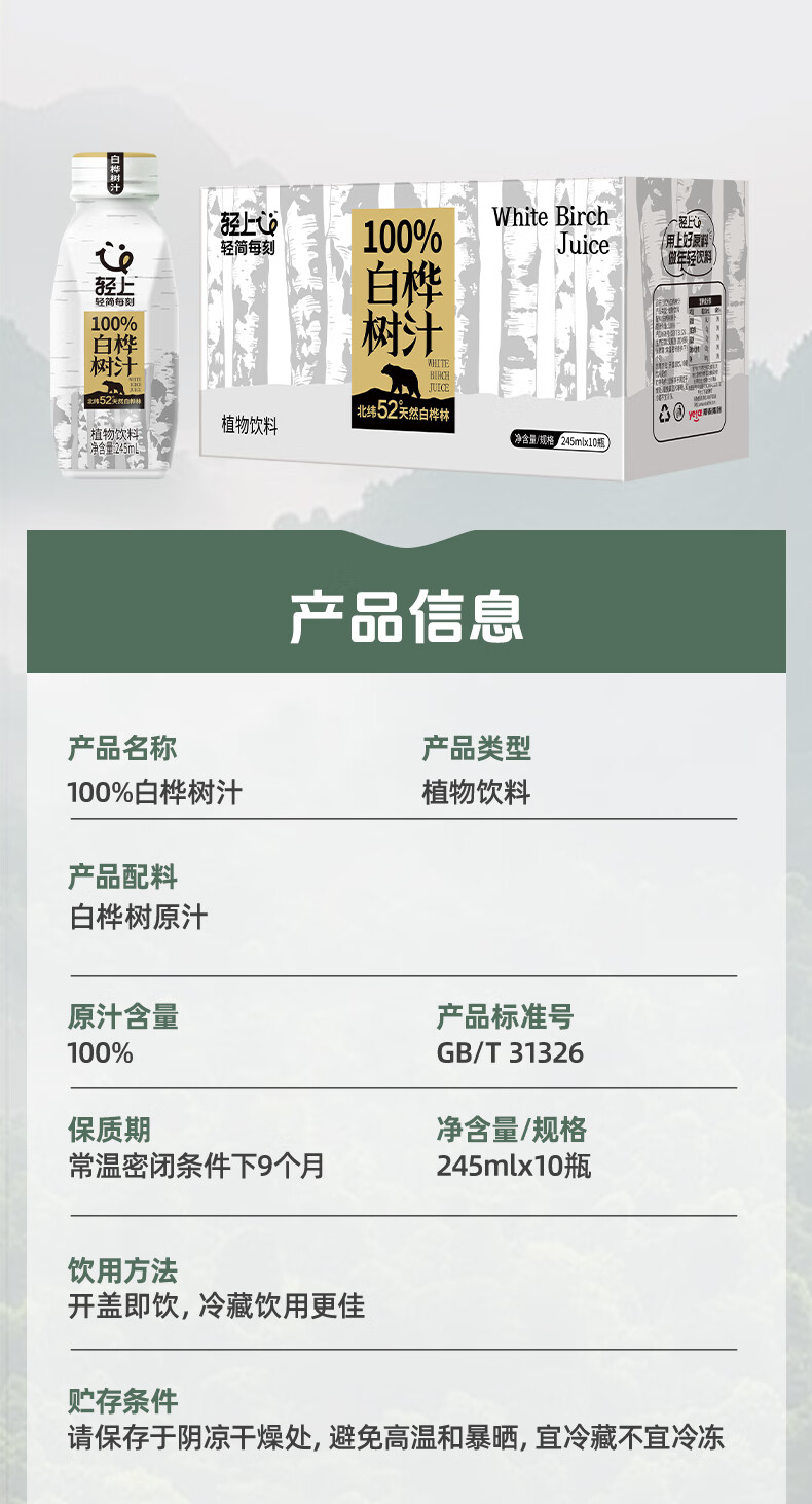 轻上100%NFC白桦树汁饮品天然原汁植物饮料 白桦树汁 245ml*10瓶