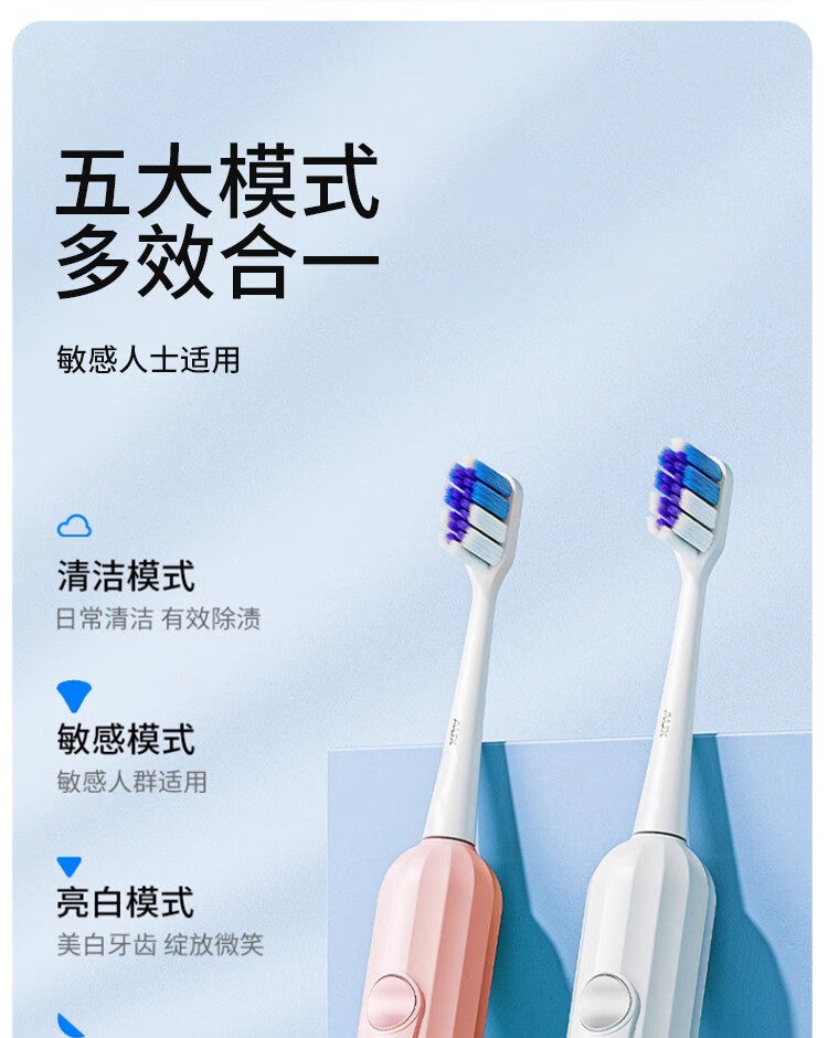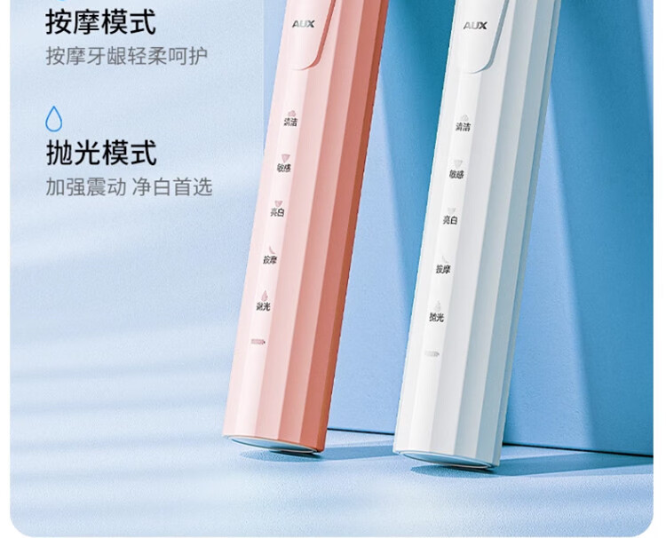 奥克斯(AUX)电动牙刷成人全自动充电式软毛男女学生情侣套装男女朋友礼物超声波牙刷520七夕母亲节礼物送礼 成人颜值款【莫兰蒂粉+4刷头可用一整年】