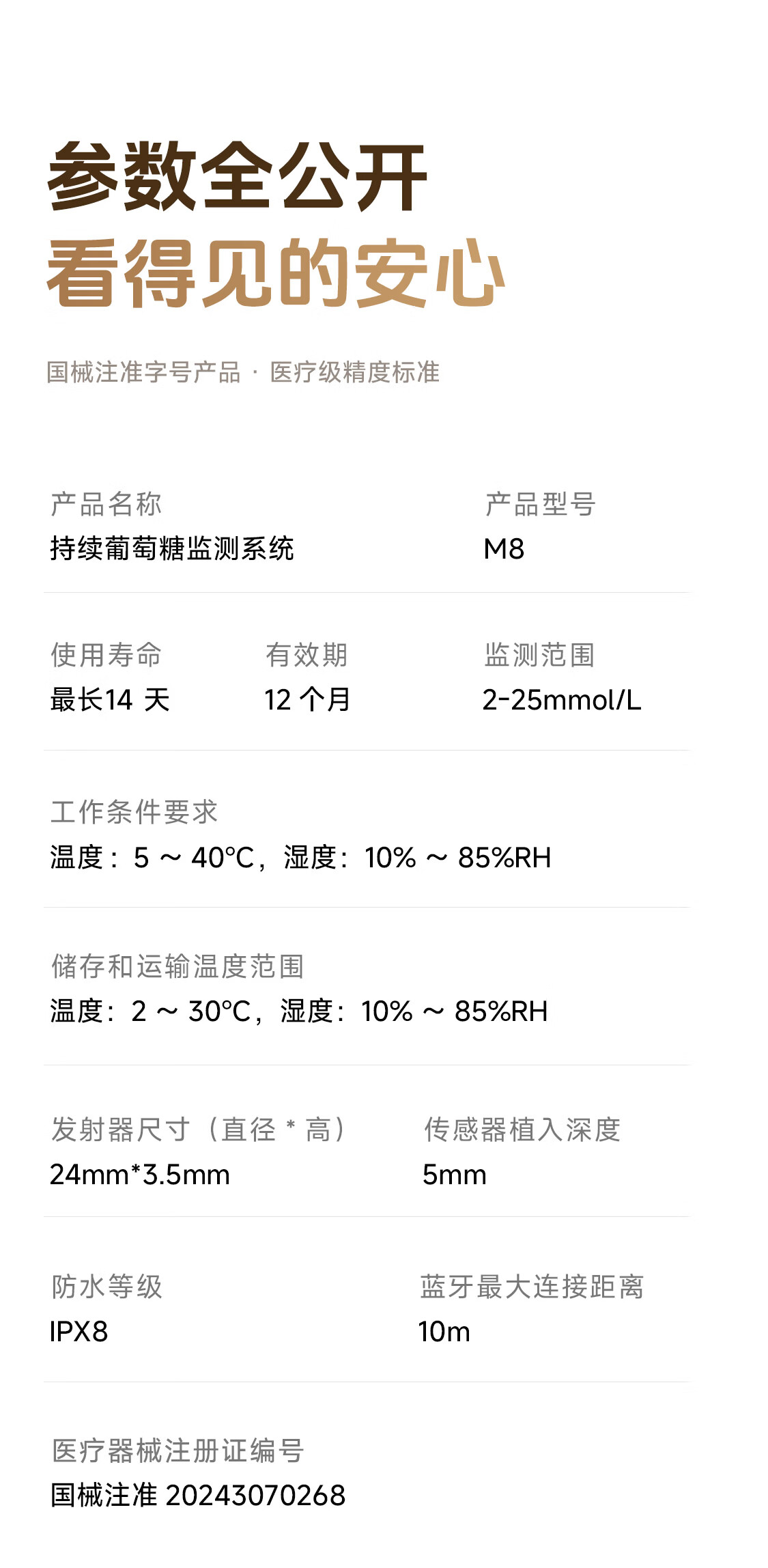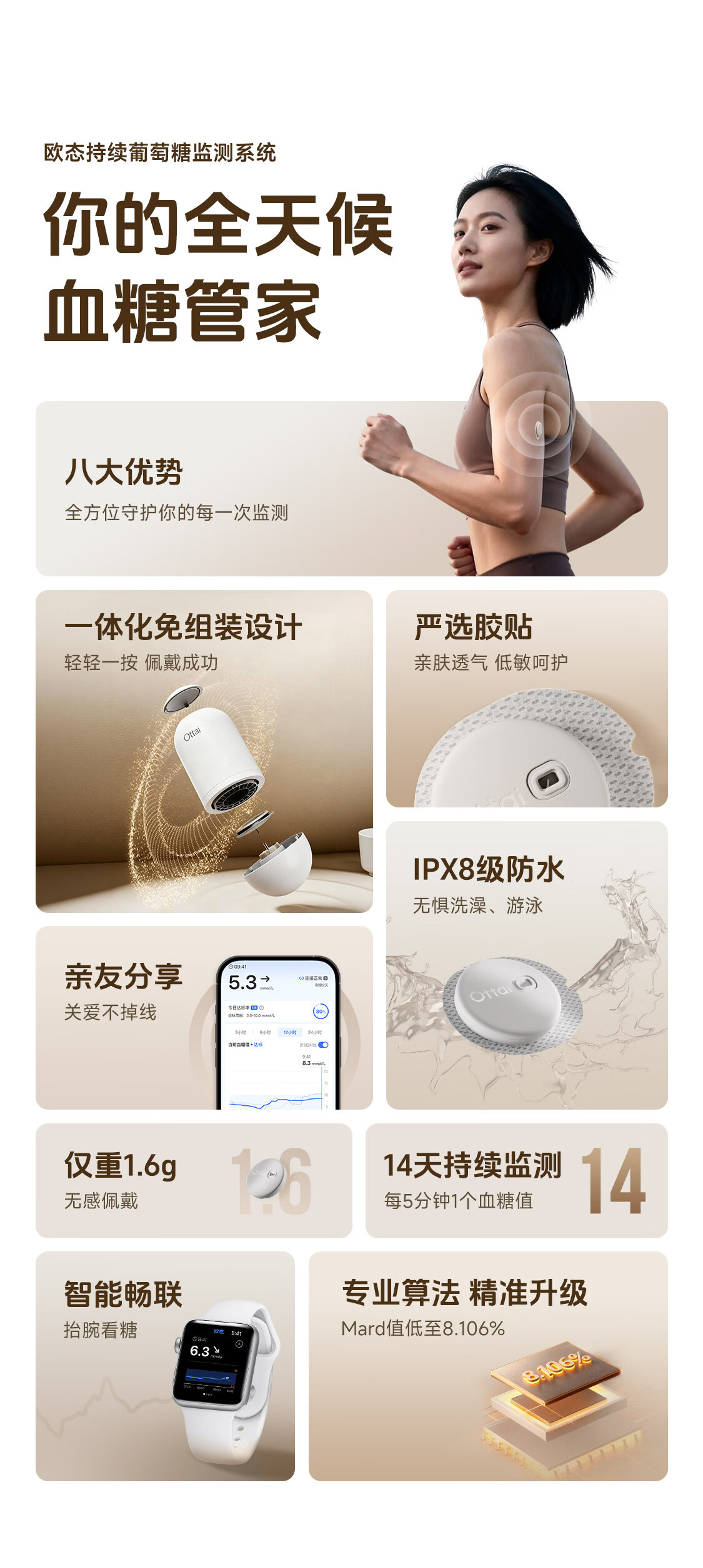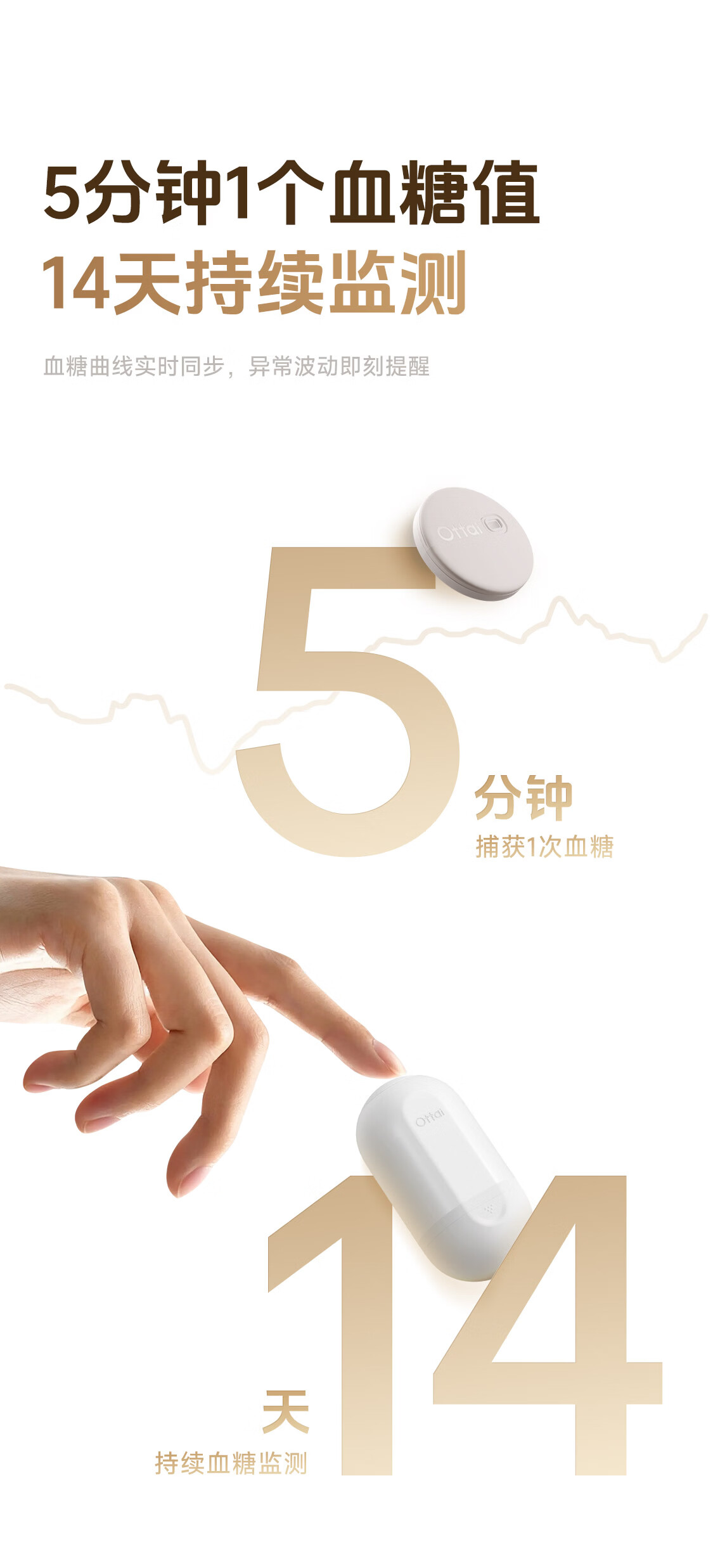 欧态动态血糖仪免扎手指测糖 免组装一体式14天持续葡萄糖监测系统 M8 【测糖优选】1盒装