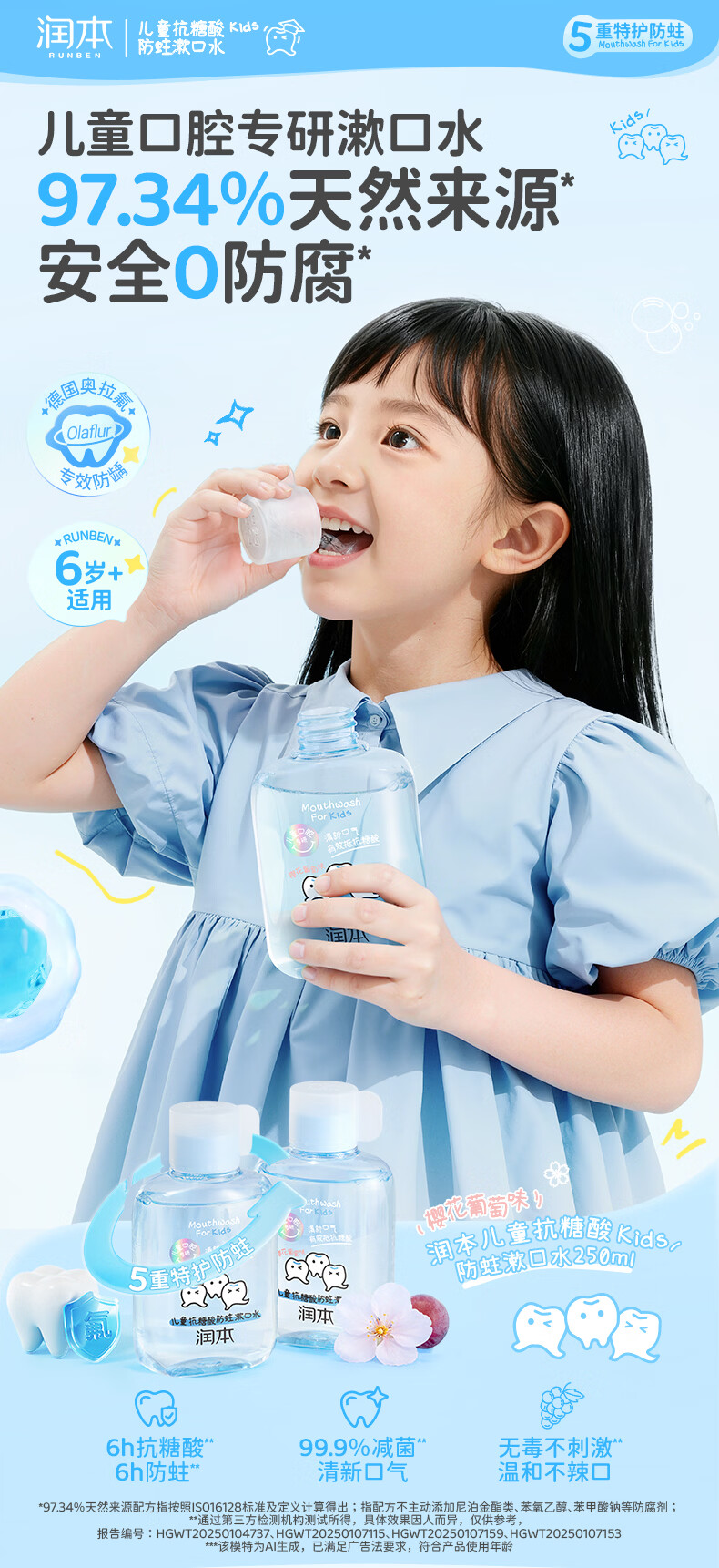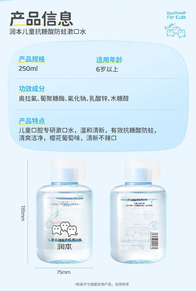 润本儿童牙膏3到6到12岁婴幼儿含氟换牙期防蛀奥拉氟牙膏抗糖酸 【3-12岁】 60g 2支 含氟防蛀儿童牙膏