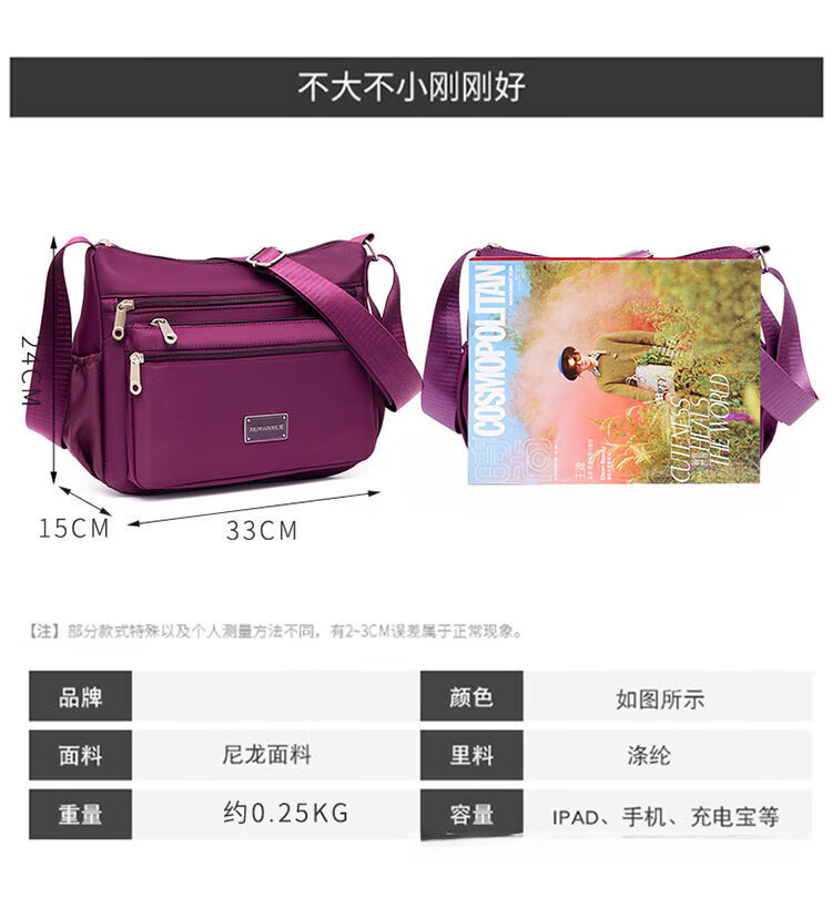 2025新款牛津布女包休闲多层单肩斜挎包透气大容量小方包妈妈包 黑色