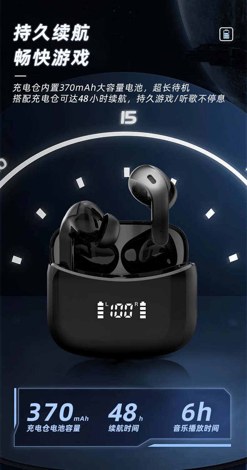 SEWIN无线蓝牙耳机入耳式HIFI音质智能降噪高清通话运动商务高端高品质音乐手机笔记本通用 黑色