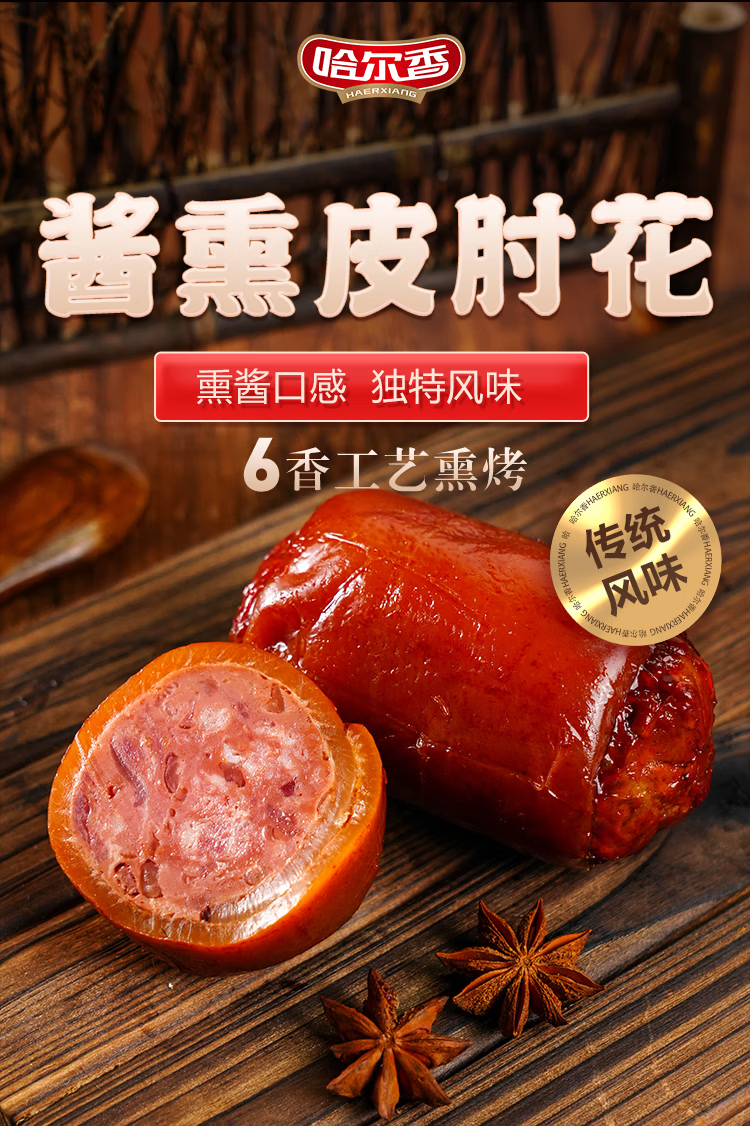 哈尔香熏肘猪肘花 卤味熟 休闲食品 香熏肘下酒菜 酱香熏肘300g*2袋