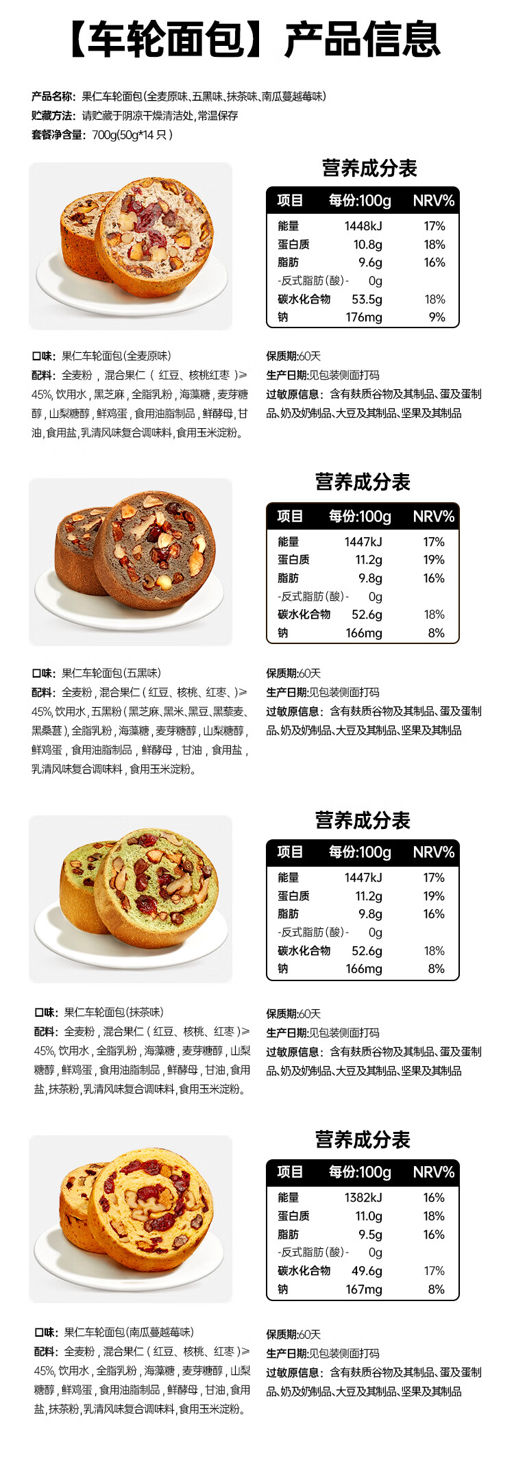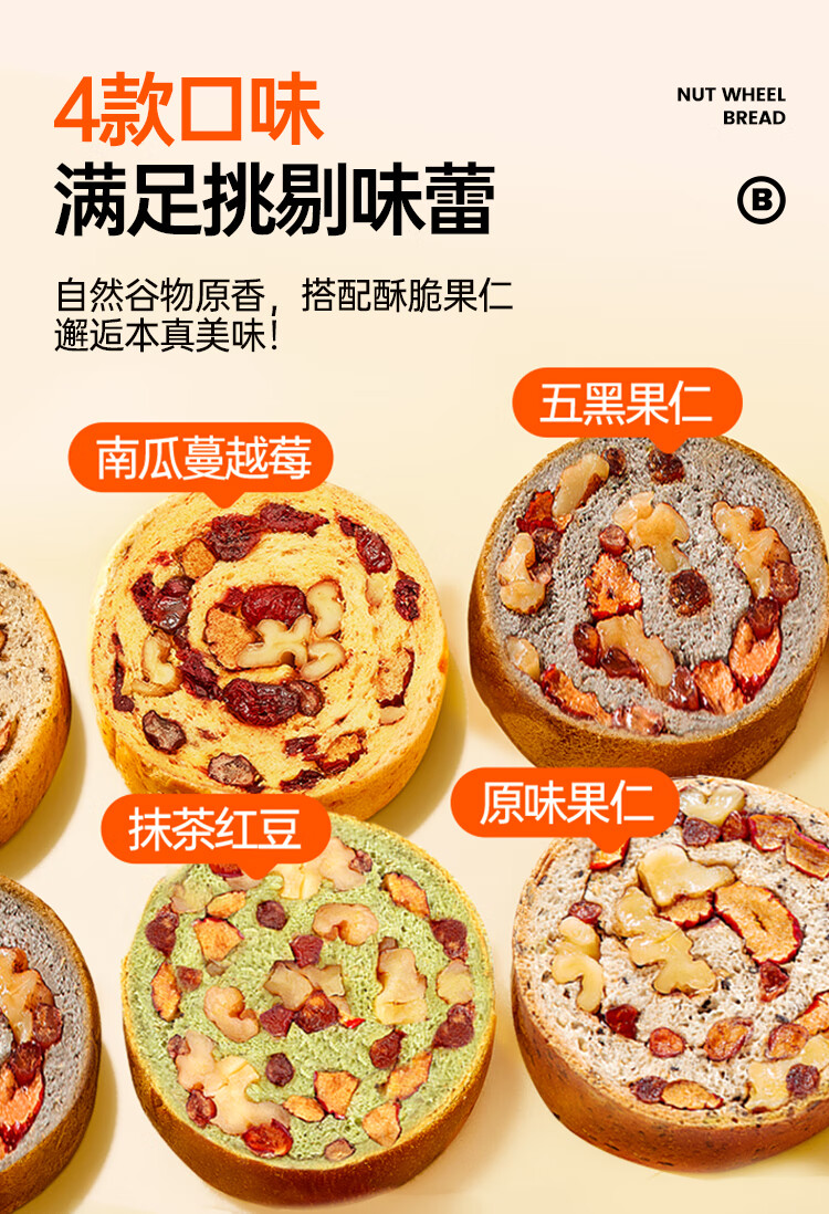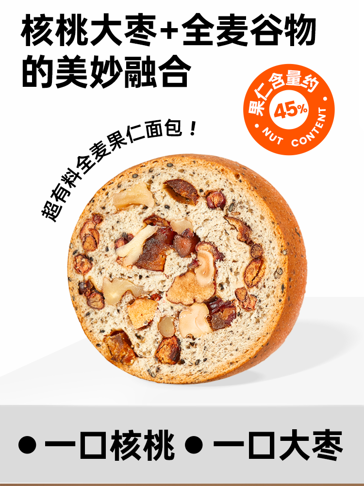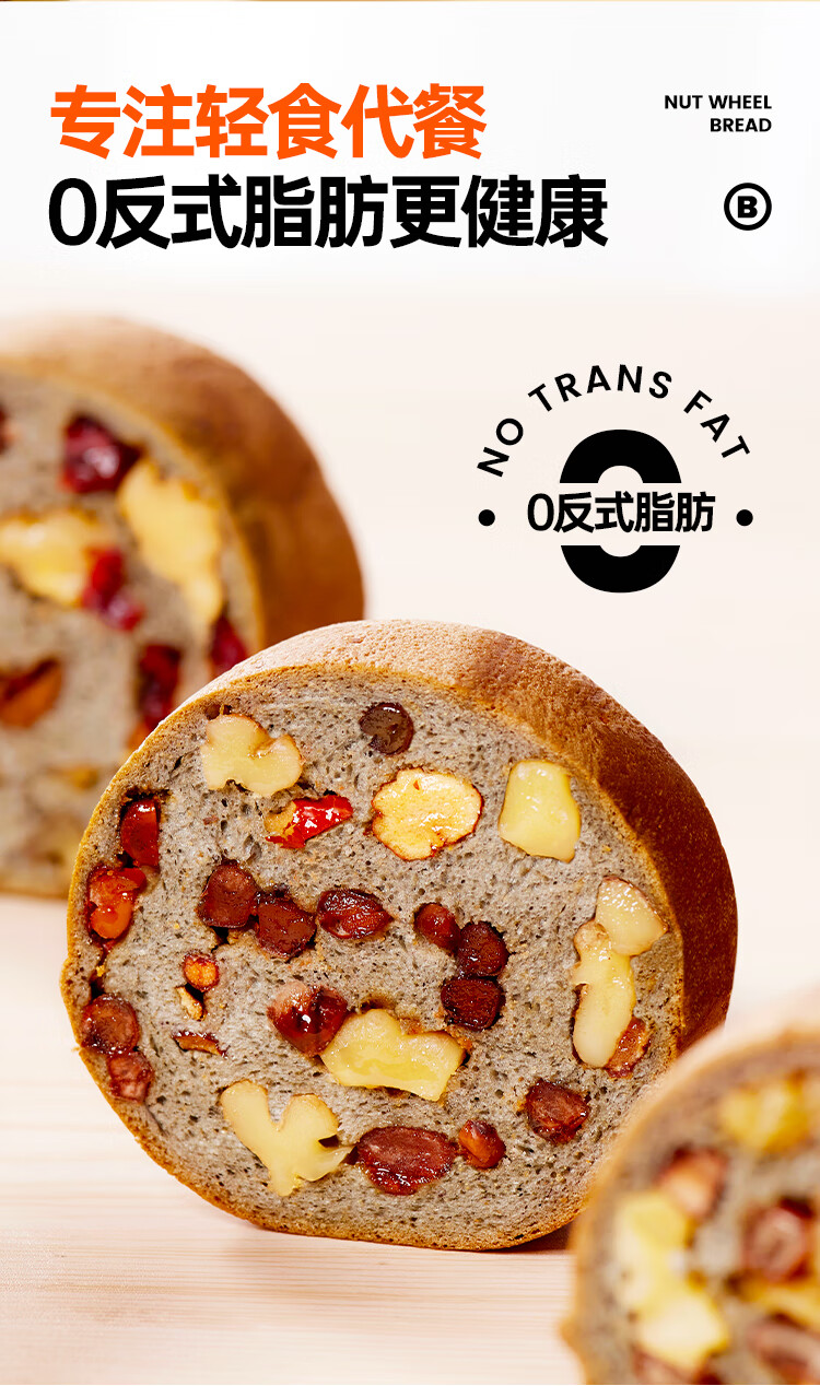碧翠园全麦面包早餐果仁车轮坚果吐司700g枣仁大列巴五黑粗粮欧包代餐