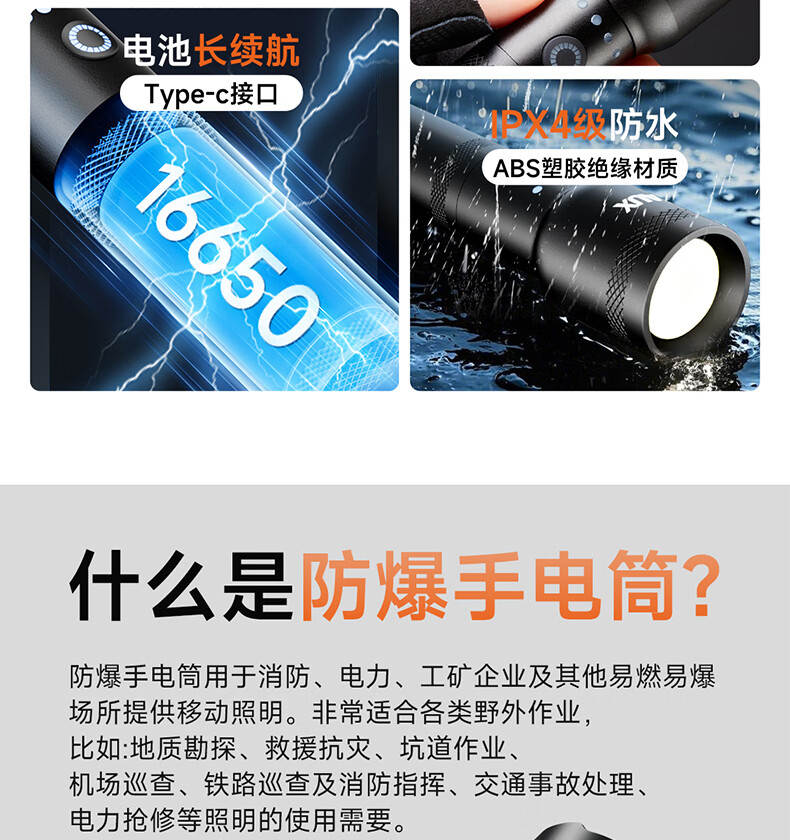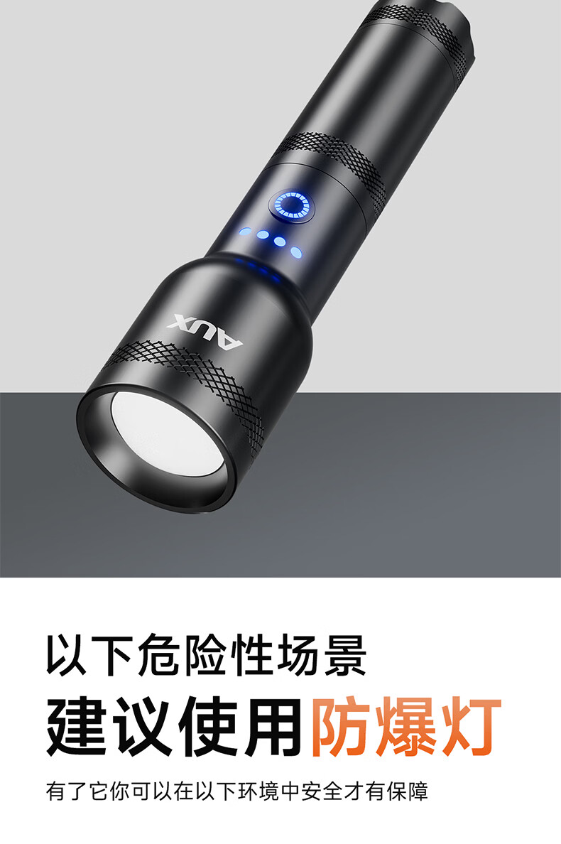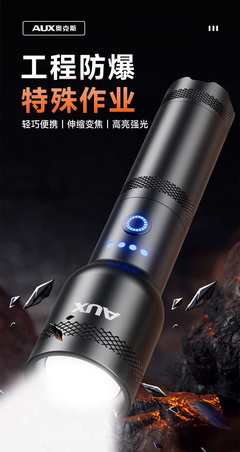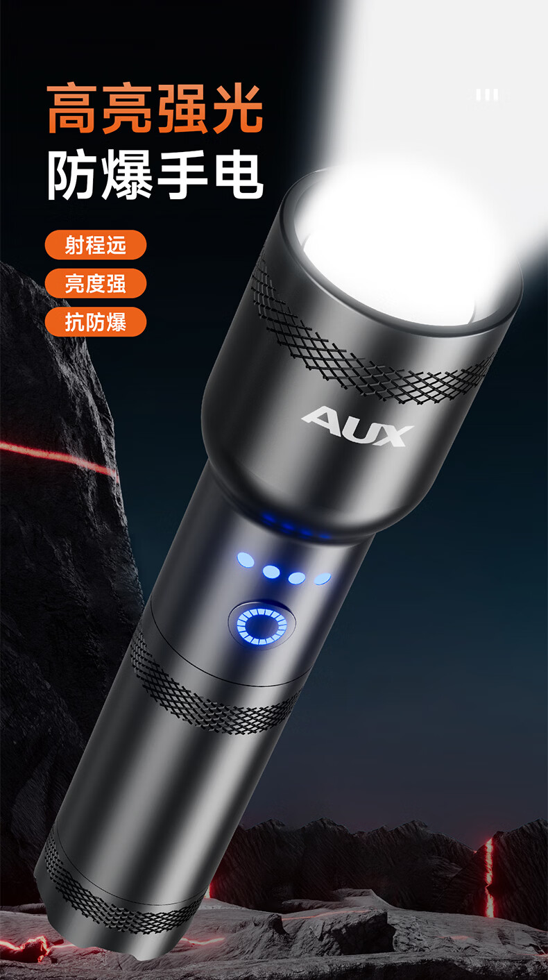 奥克斯(AUX)防爆手电筒工业级强光超亮充电式防水消防应急照明远射便携工作灯 【工业级防爆手电】高亮灯芯+6小时续航
