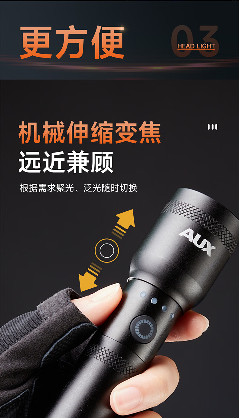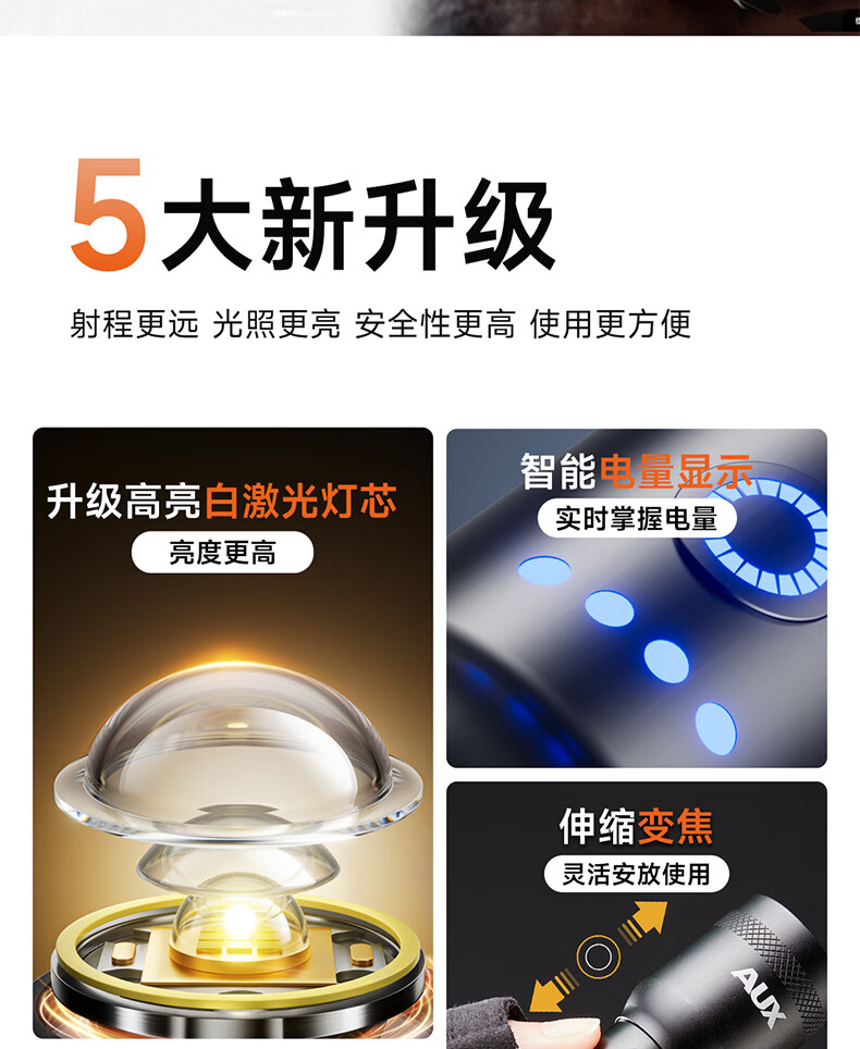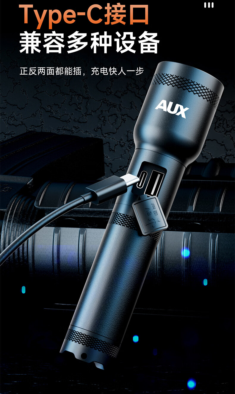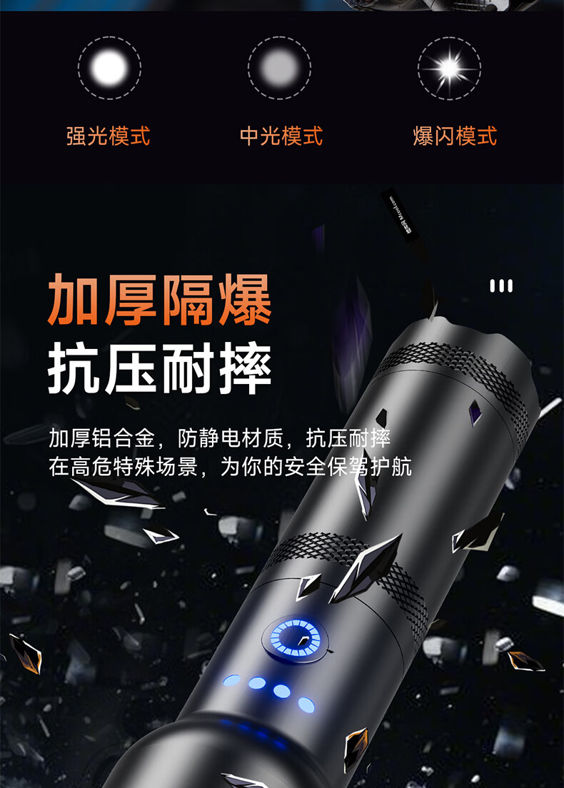 奥克斯(AUX)防爆手电筒工业级强光超亮充电式防水消防应急照明远射便携工作灯 【工业级防爆手电】高亮灯芯+6小时续航