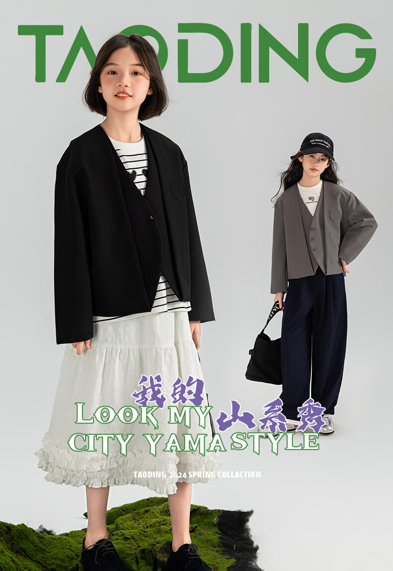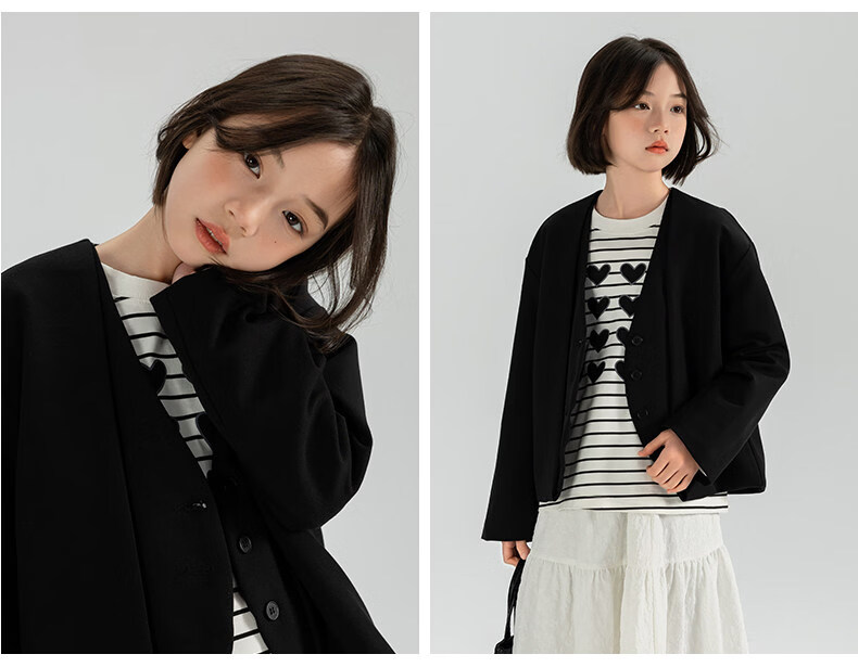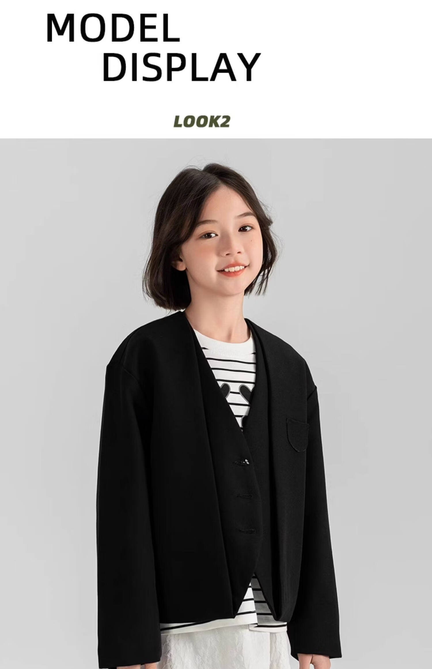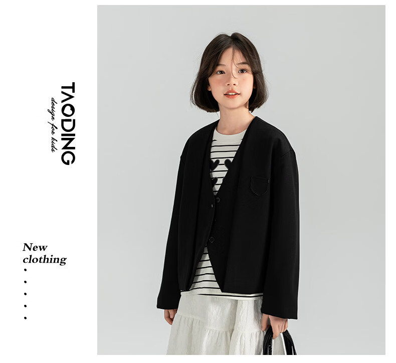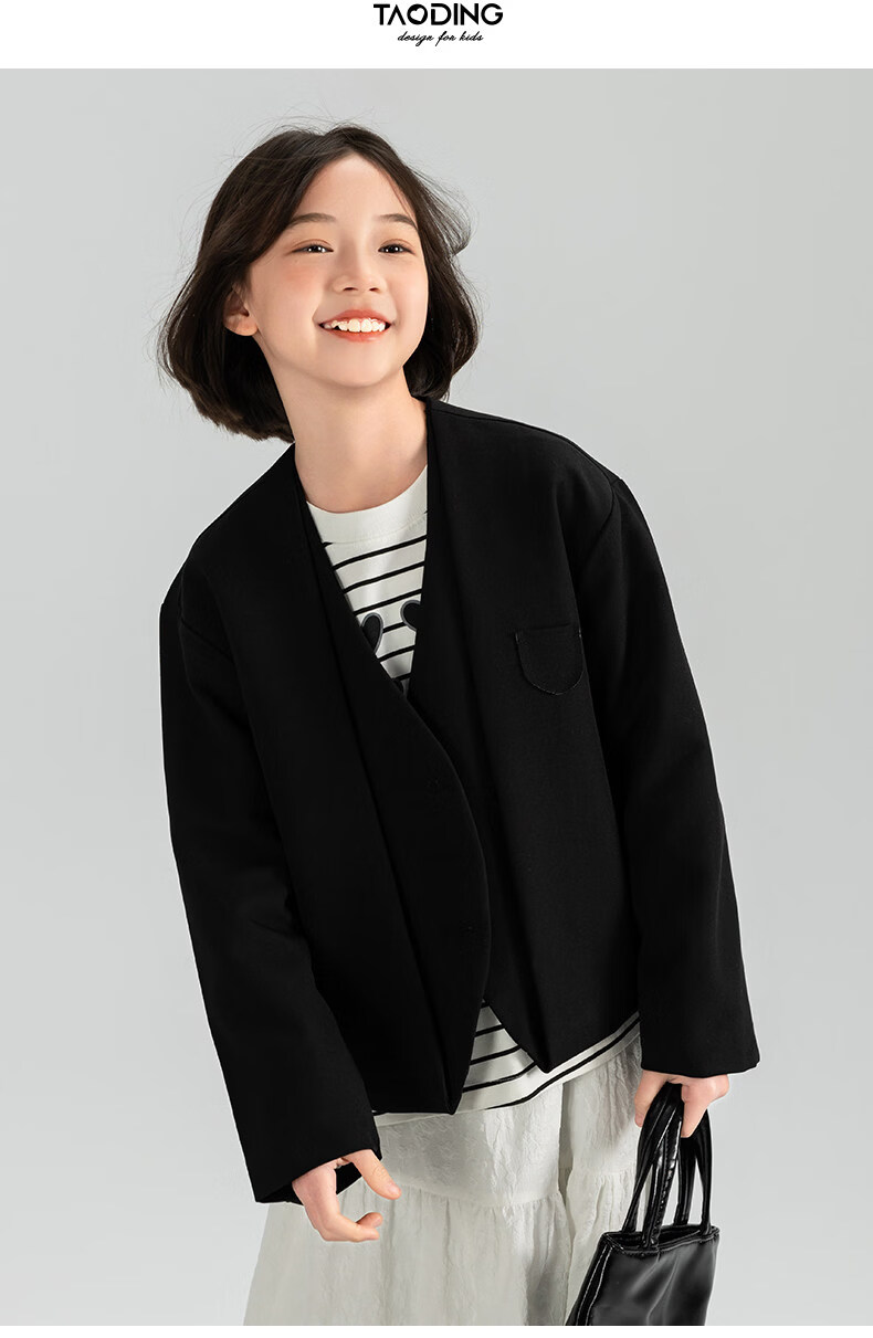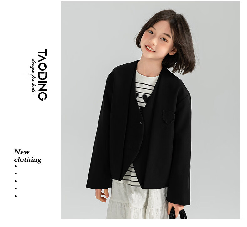 淘町女童休闲外套春秋新款中大童百搭法式西装洋气简约洋气上衣 黑色 150