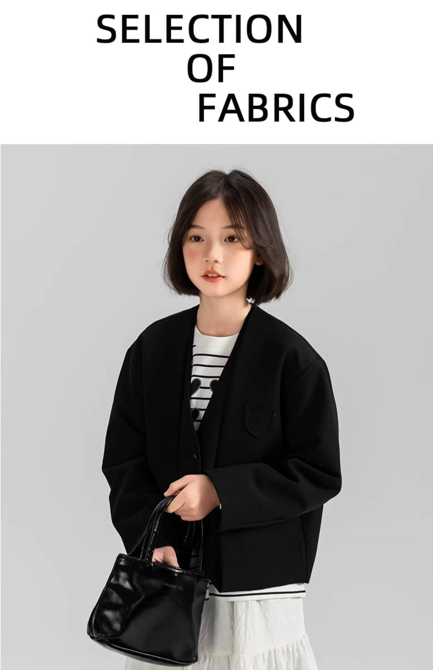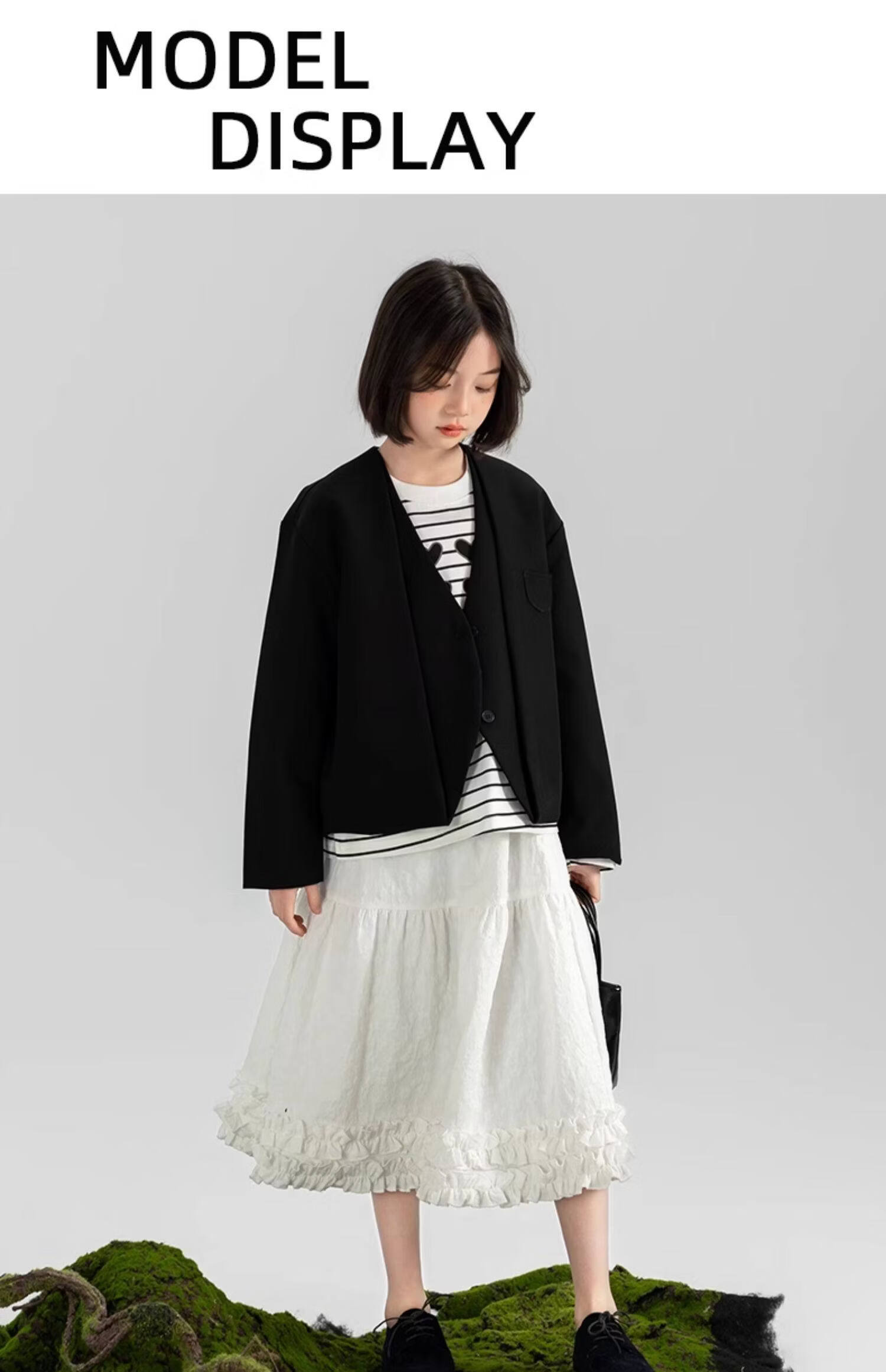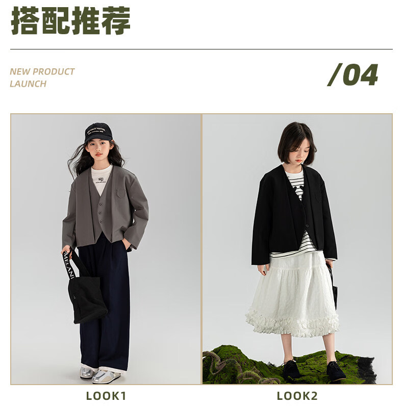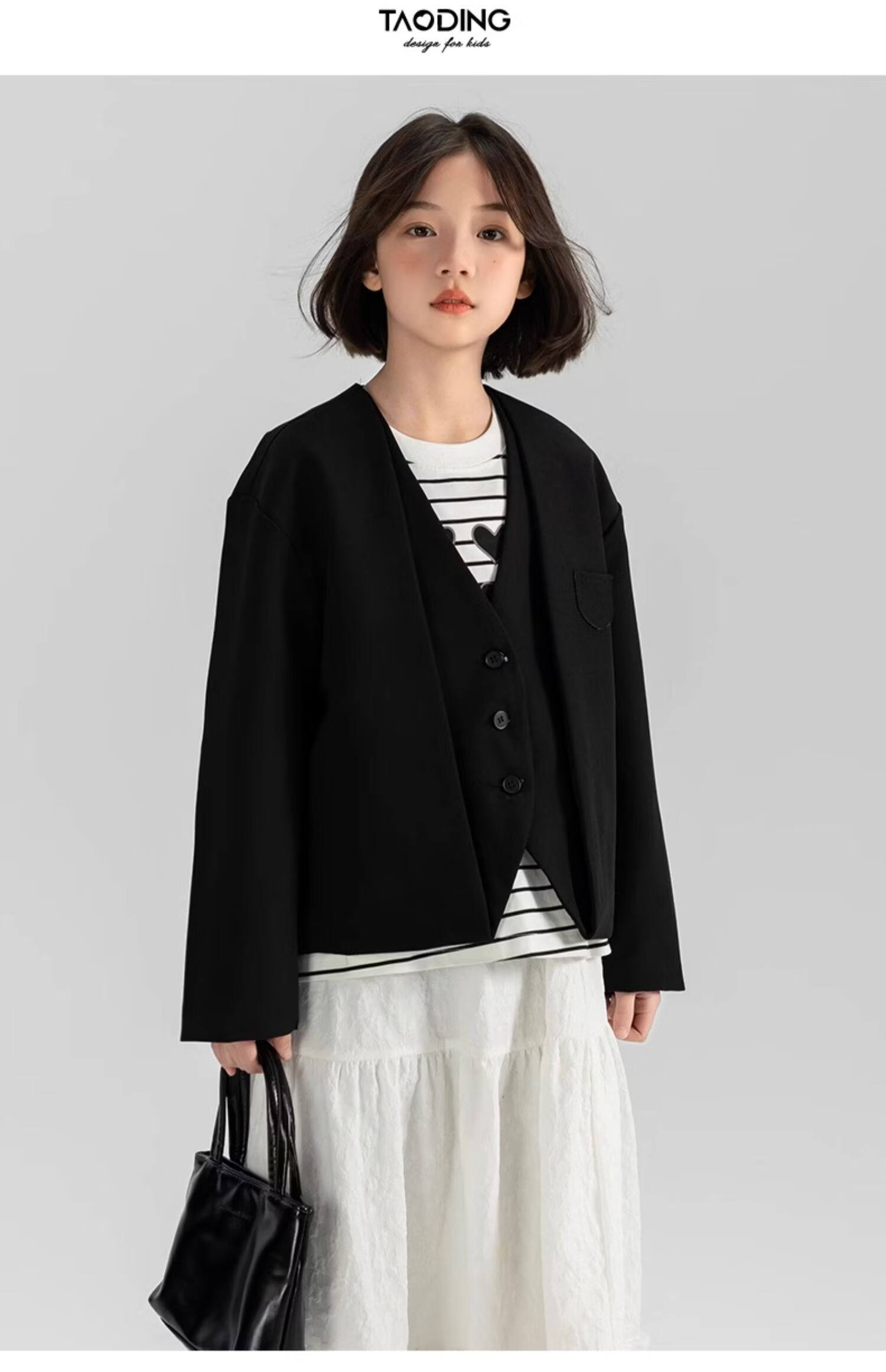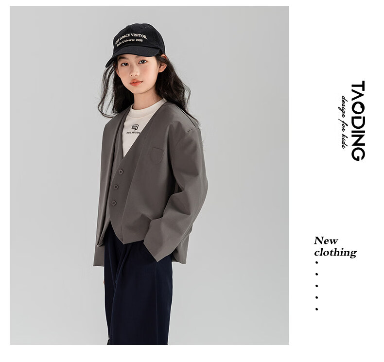 淘町女童休闲外套春秋新款中大童百搭法式西装洋气简约洋气上衣 黑色 150