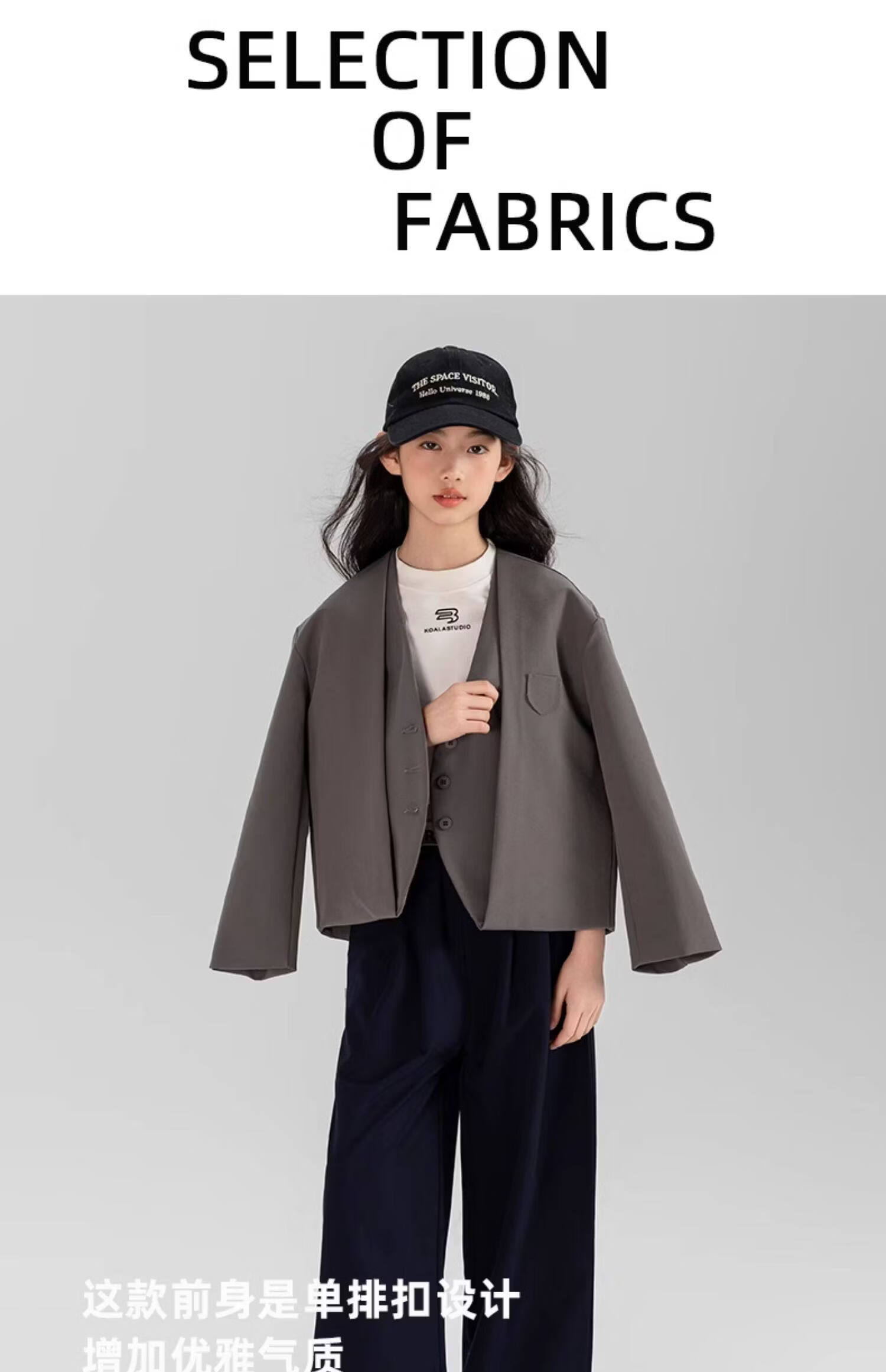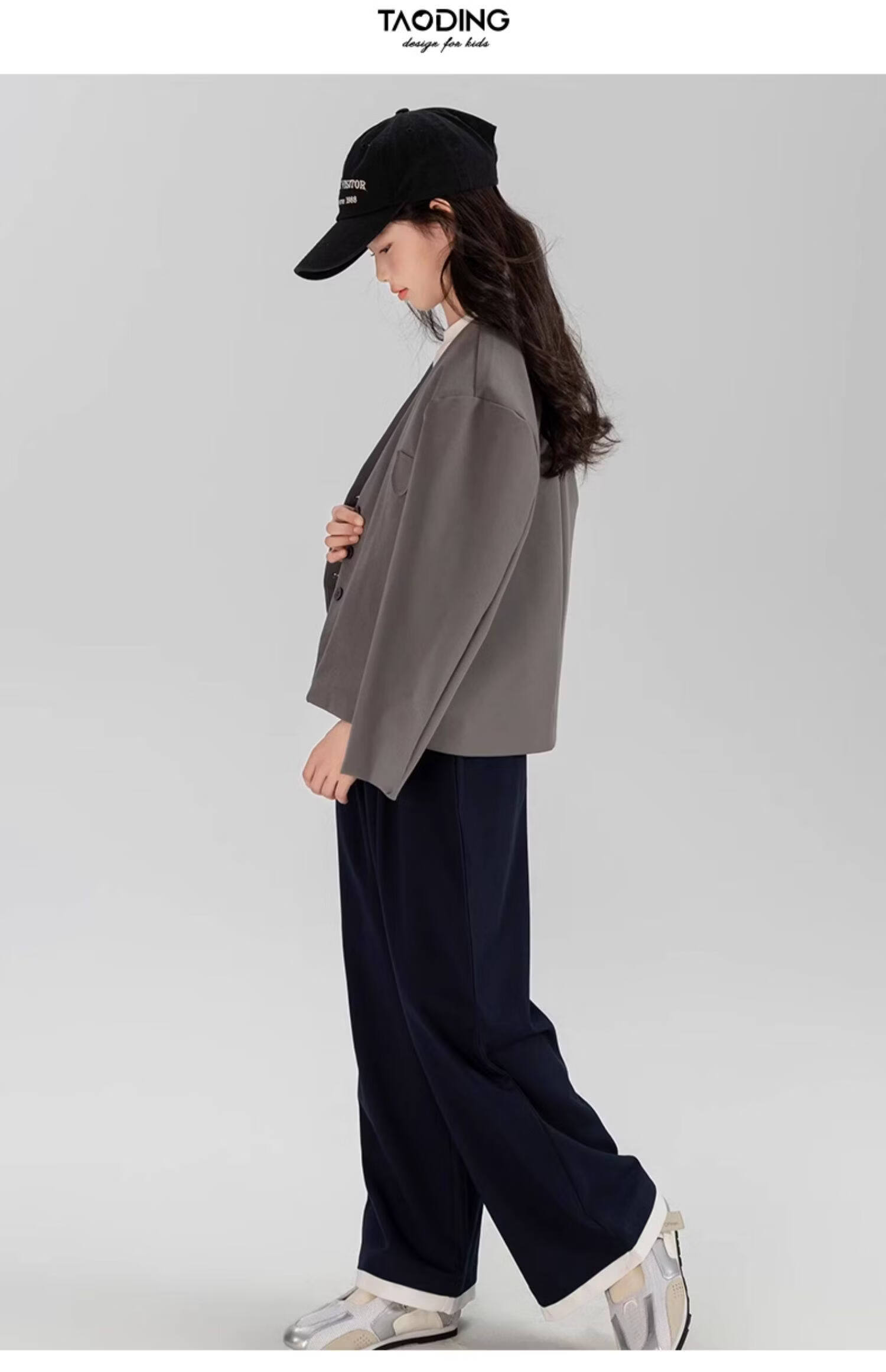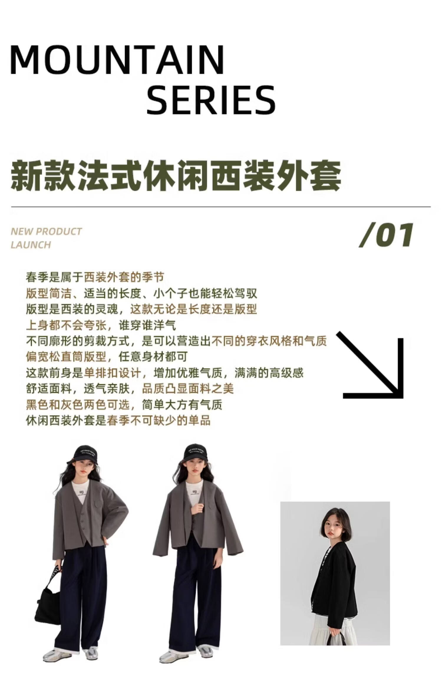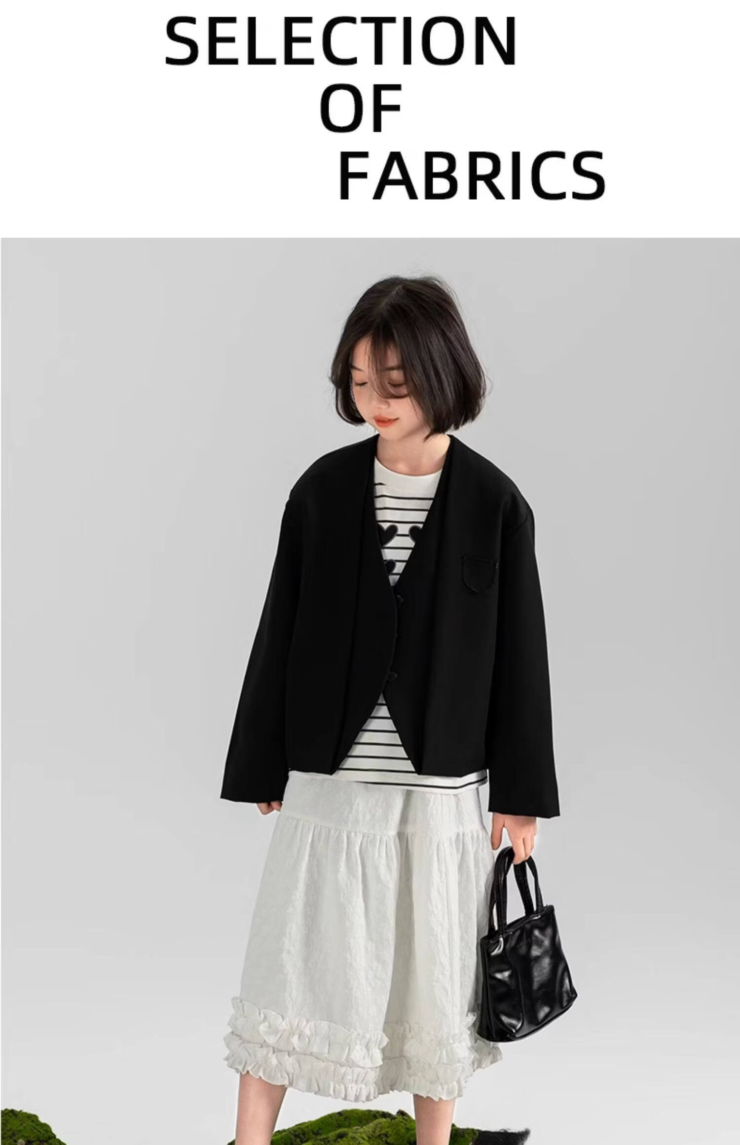 淘町女童休闲外套春秋新款中大童百搭法式西装洋气简约洋气上衣 黑色 150