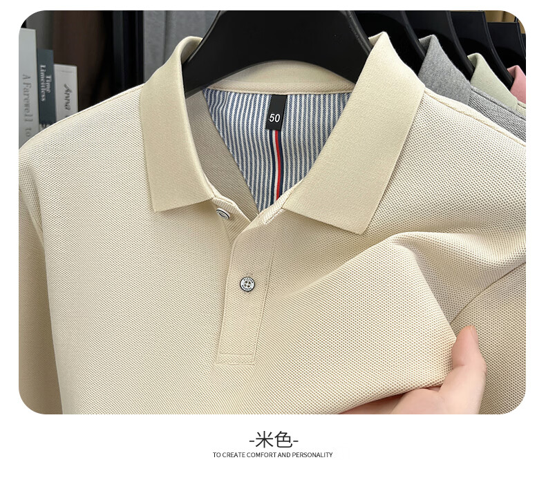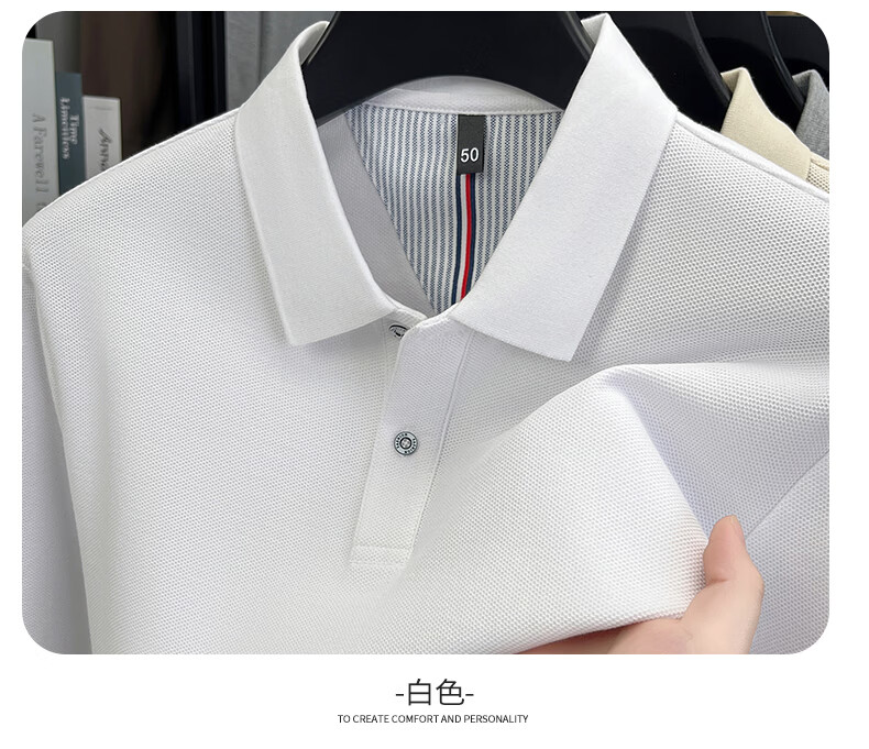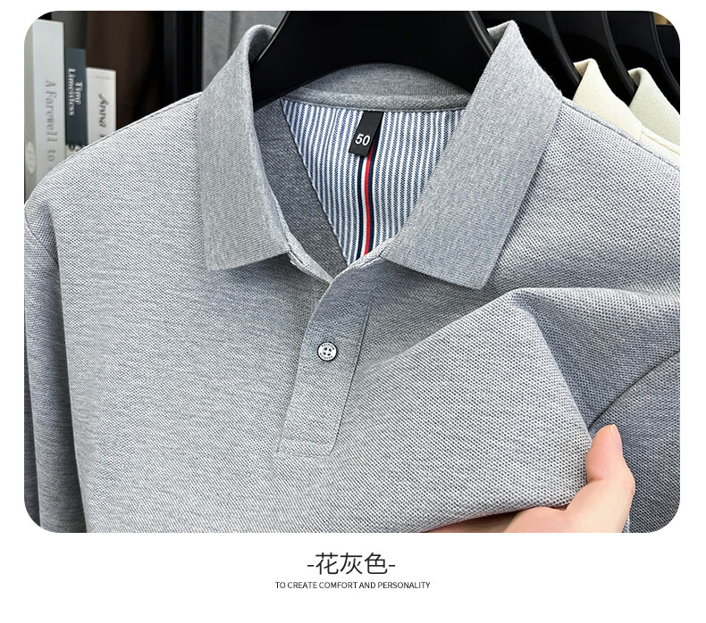 SHANSHAN杉杉【可机洗】纯棉长袖T恤男春季新款纯色简约男士打底Polo衫 白色 M /170