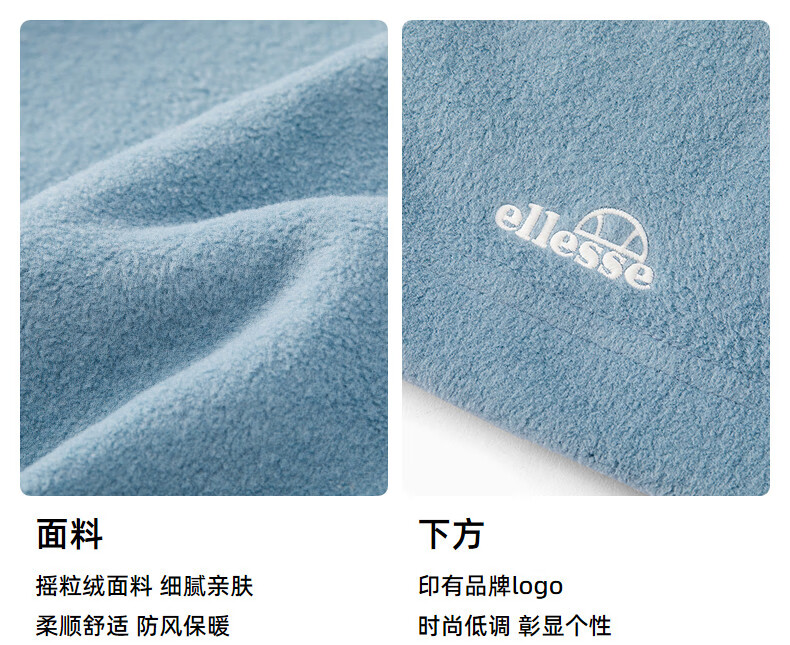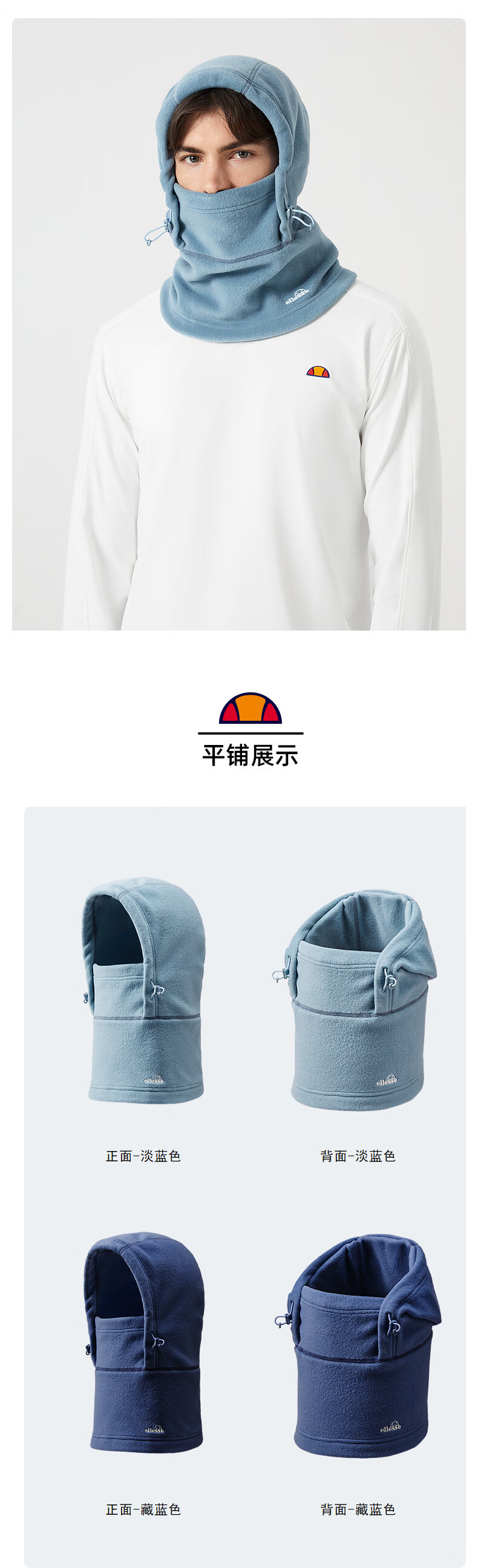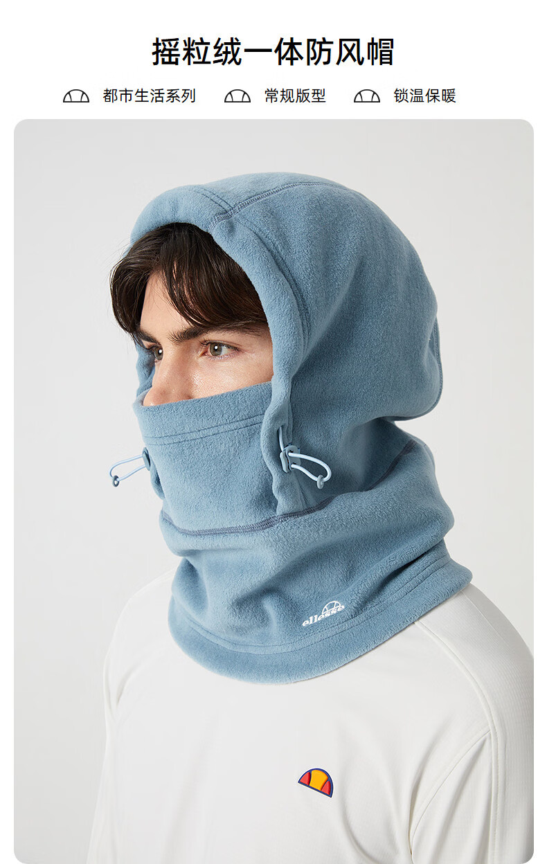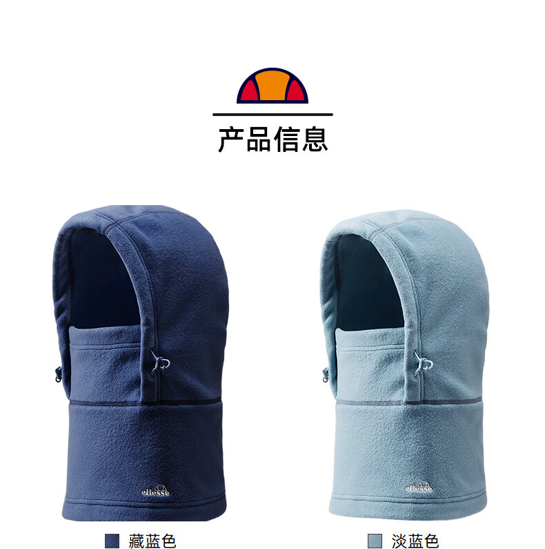 ellesse小贝壳保暖帽子面罩男2024秋冬新款防风摇粒绒骑行头套 藏蓝色 均码