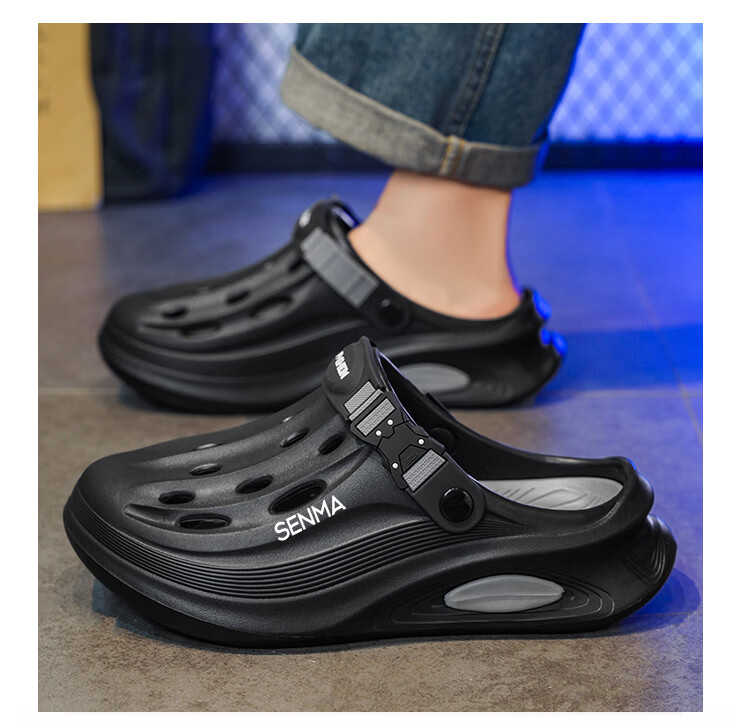 森馬洞洞鞋男2026夏季外穿防滑防臭包头拖鞋男士软底踩屎感涉水沙滩鞋 灰蓝【基础款】 38-39 现货秒发