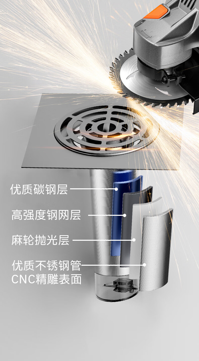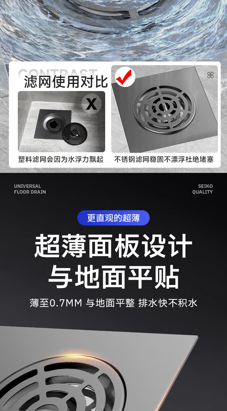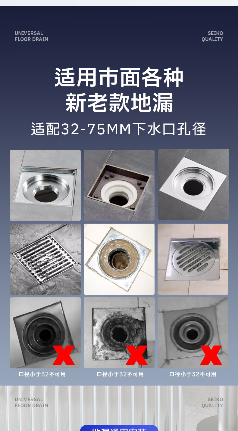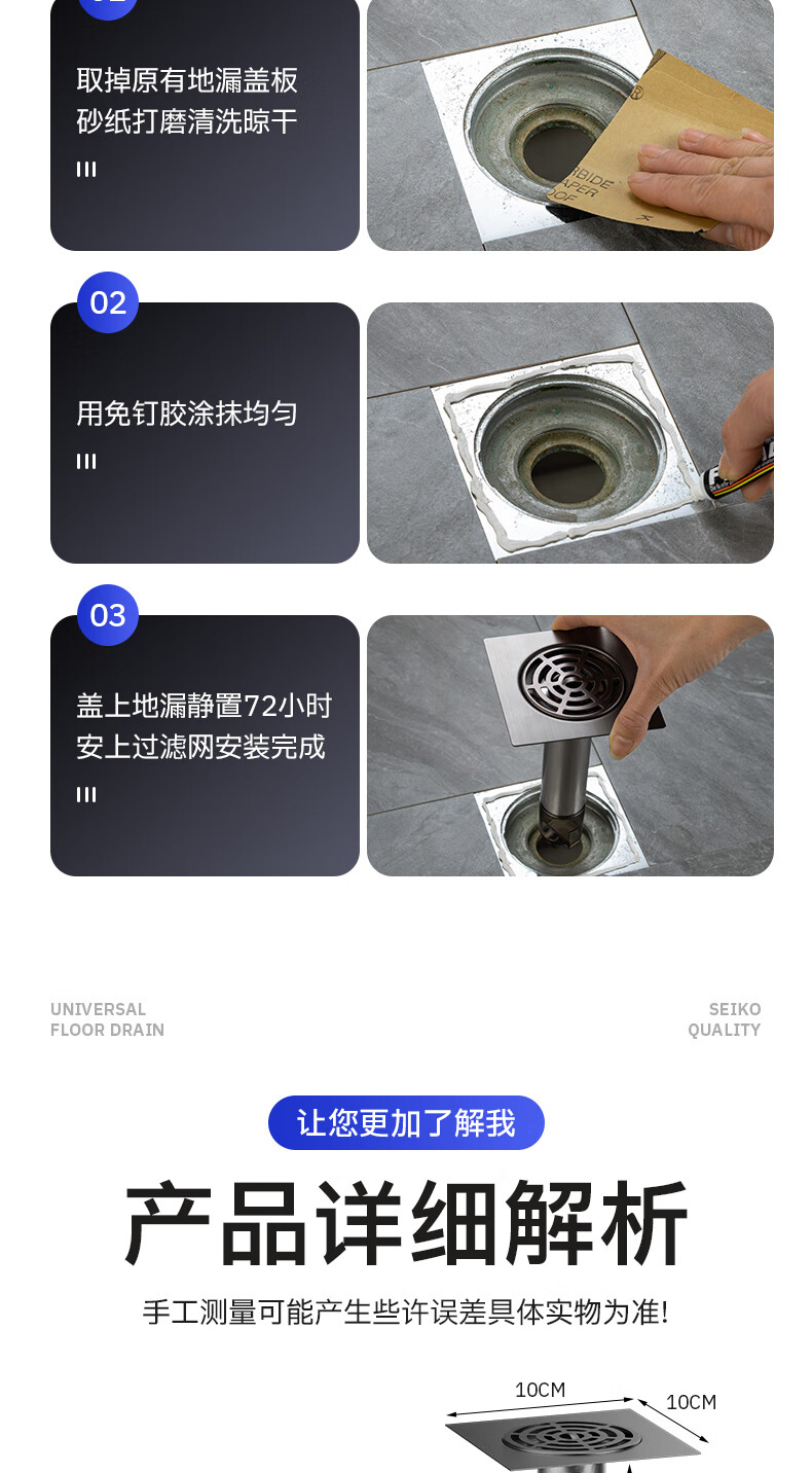 Jeonestan【德国】不锈钢断层地漏翻新器改造卫生间下水道盖板过滤防臭堵塞 【短款】大滤网断层防臭地漏贴