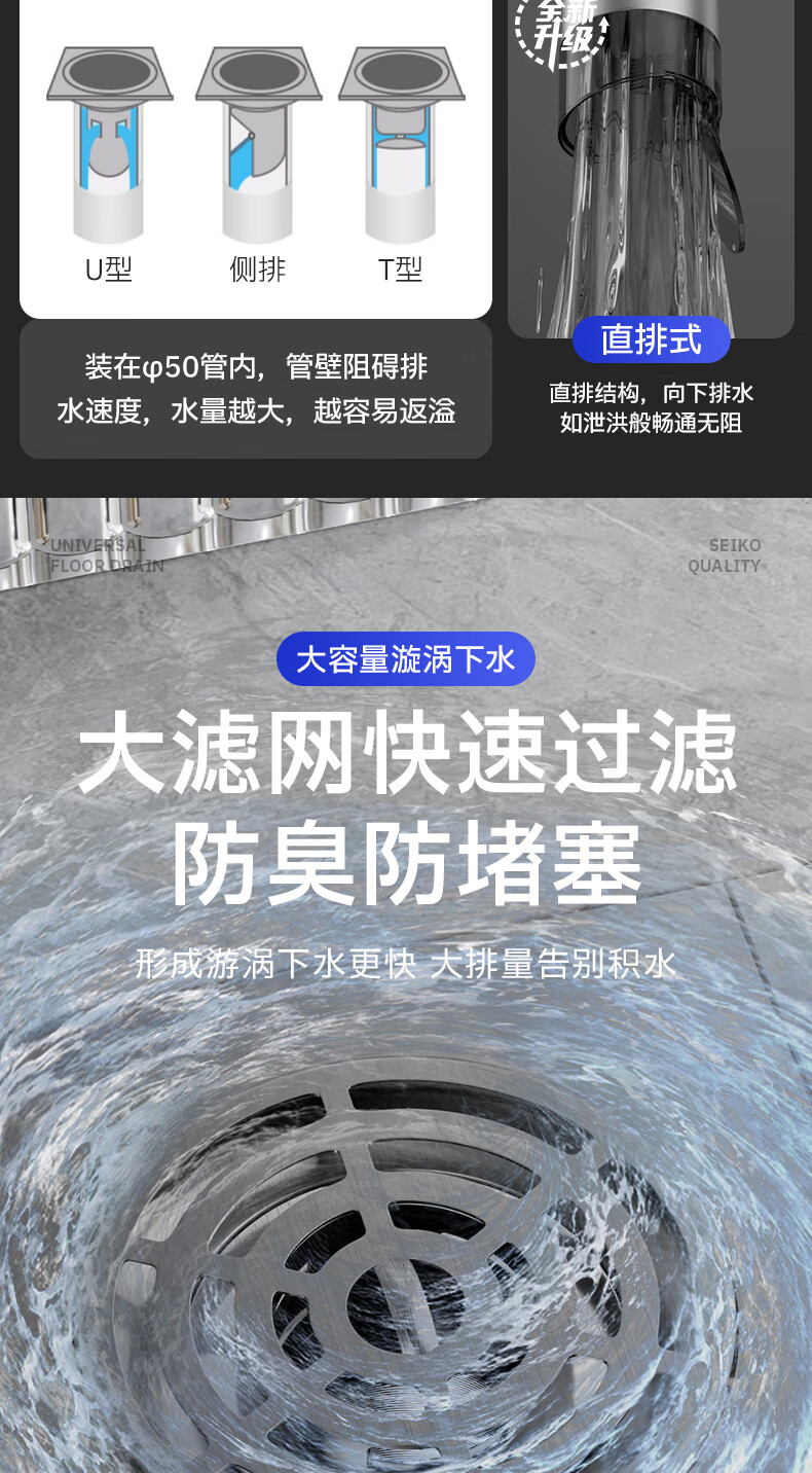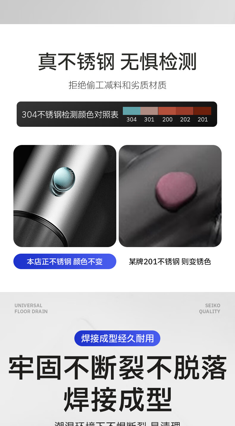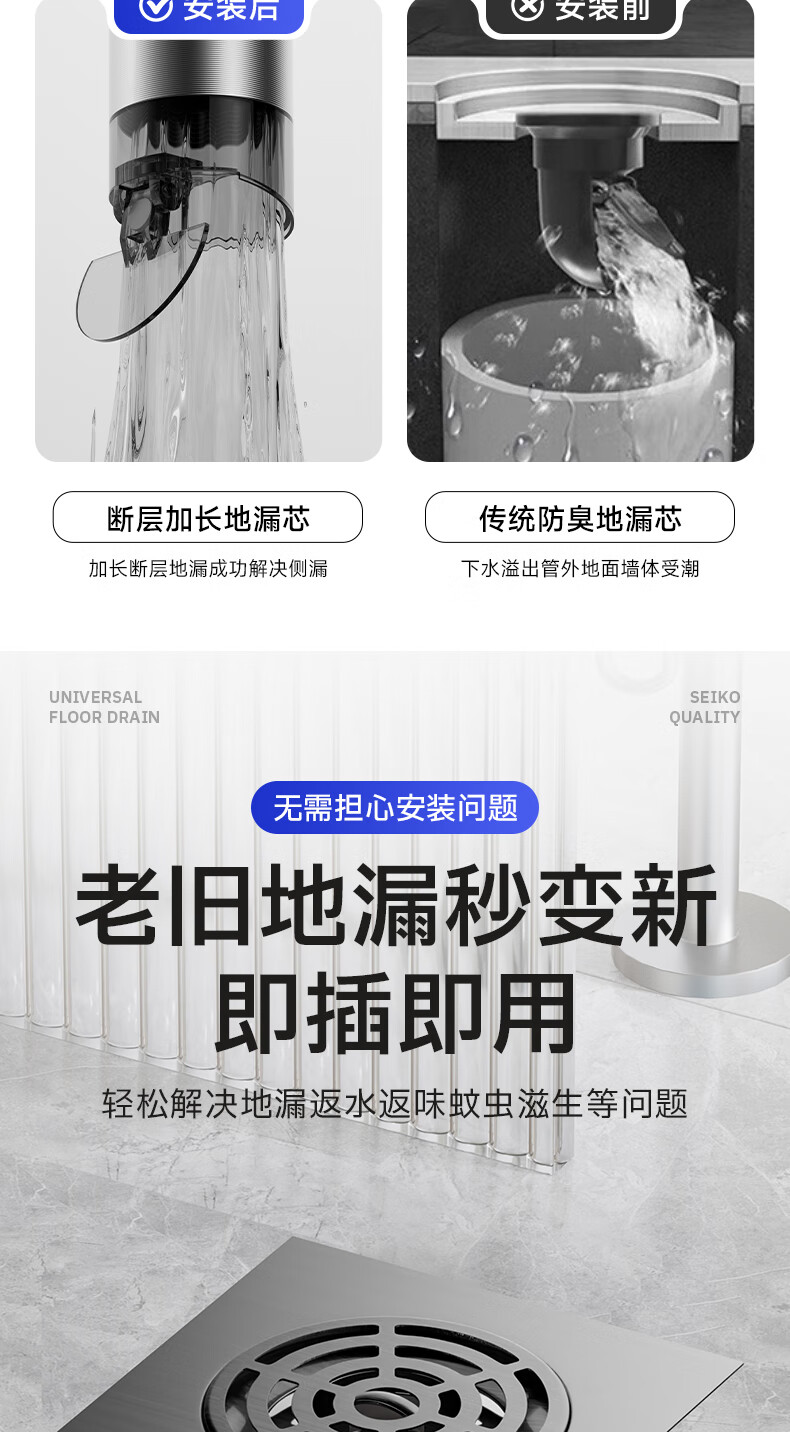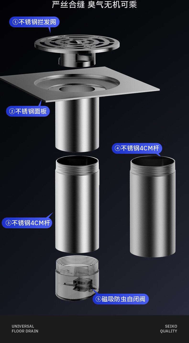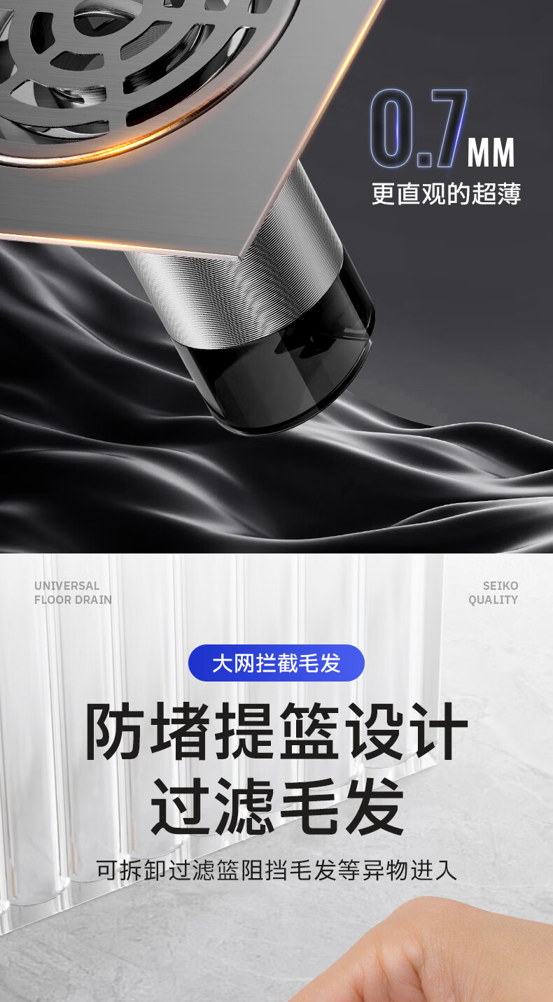 Jeonestan【德国】不锈钢断层地漏翻新器改造卫生间下水道盖板过滤防臭堵塞 【短款】大滤网断层防臭地漏贴