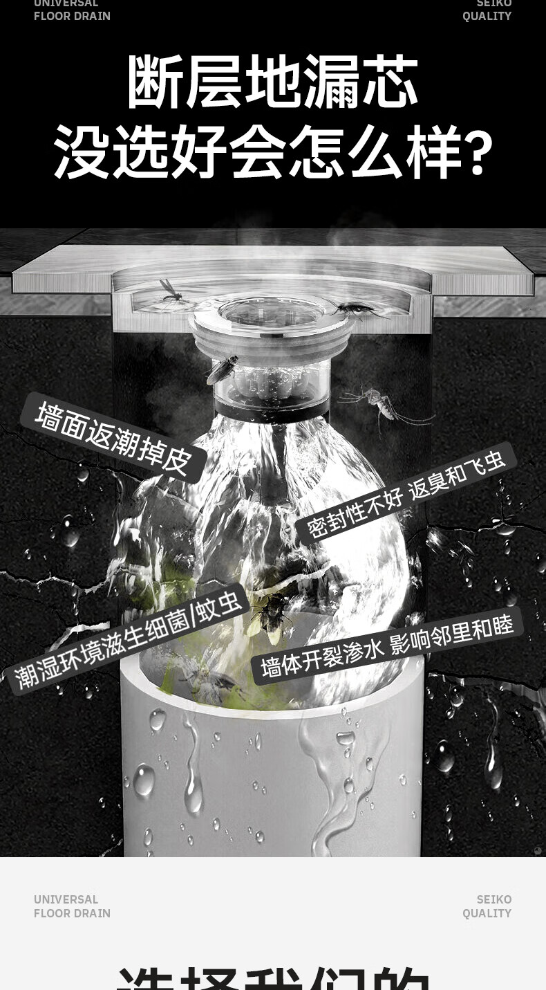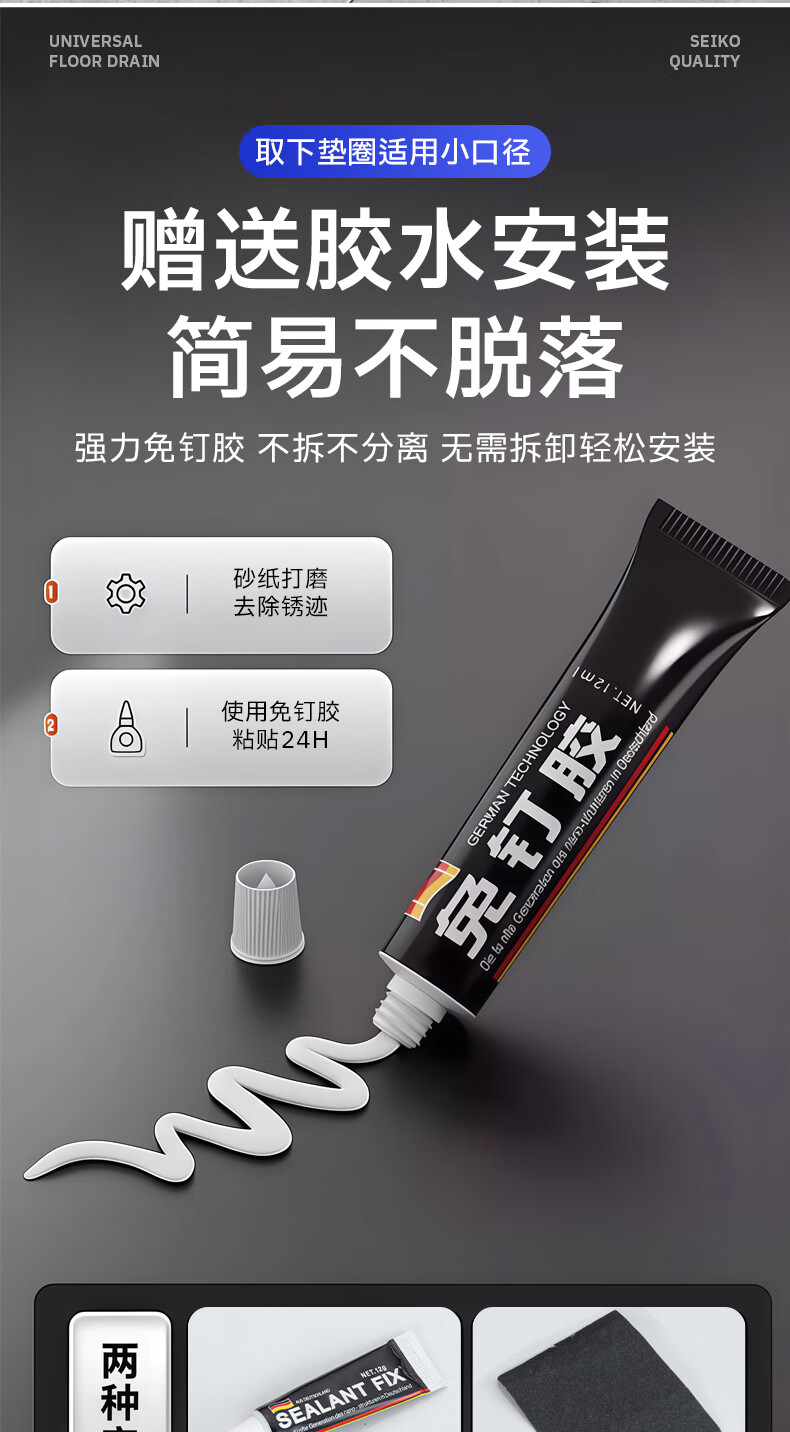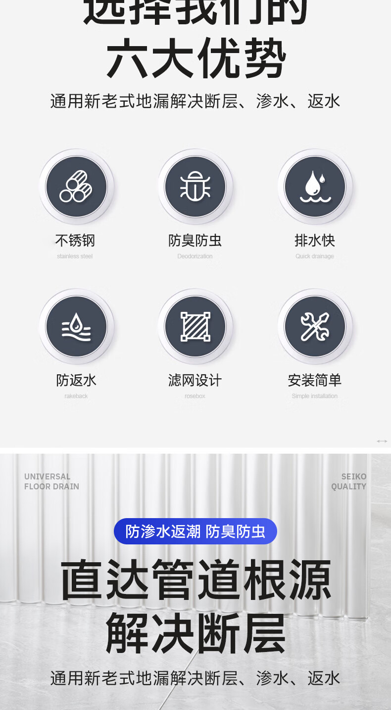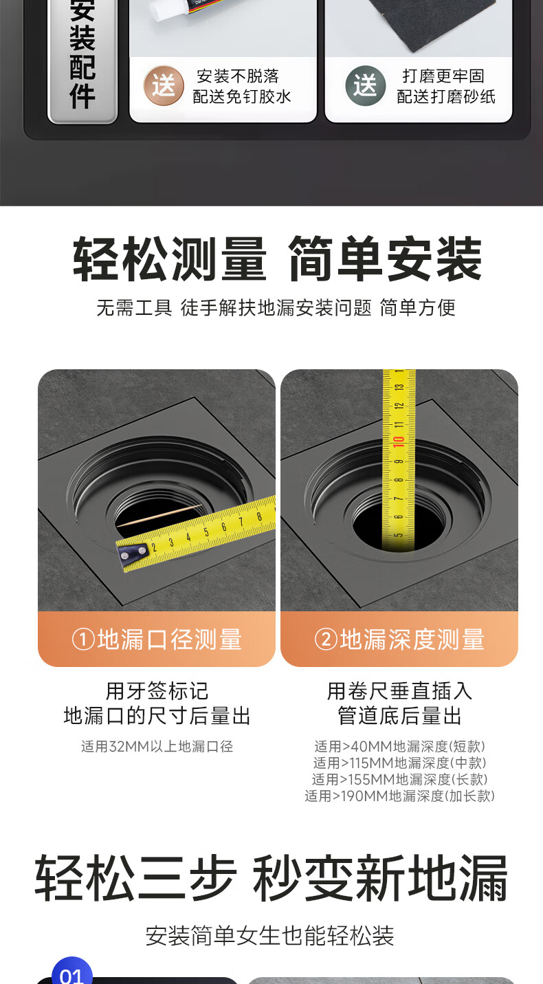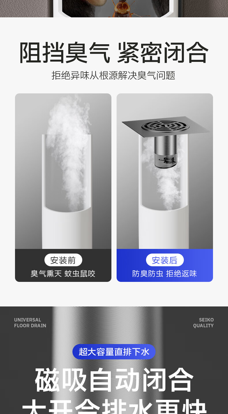 Jeonestan【德国】不锈钢断层地漏翻新器改造卫生间下水道盖板过滤防臭堵塞 【短款】大滤网断层防臭地漏贴