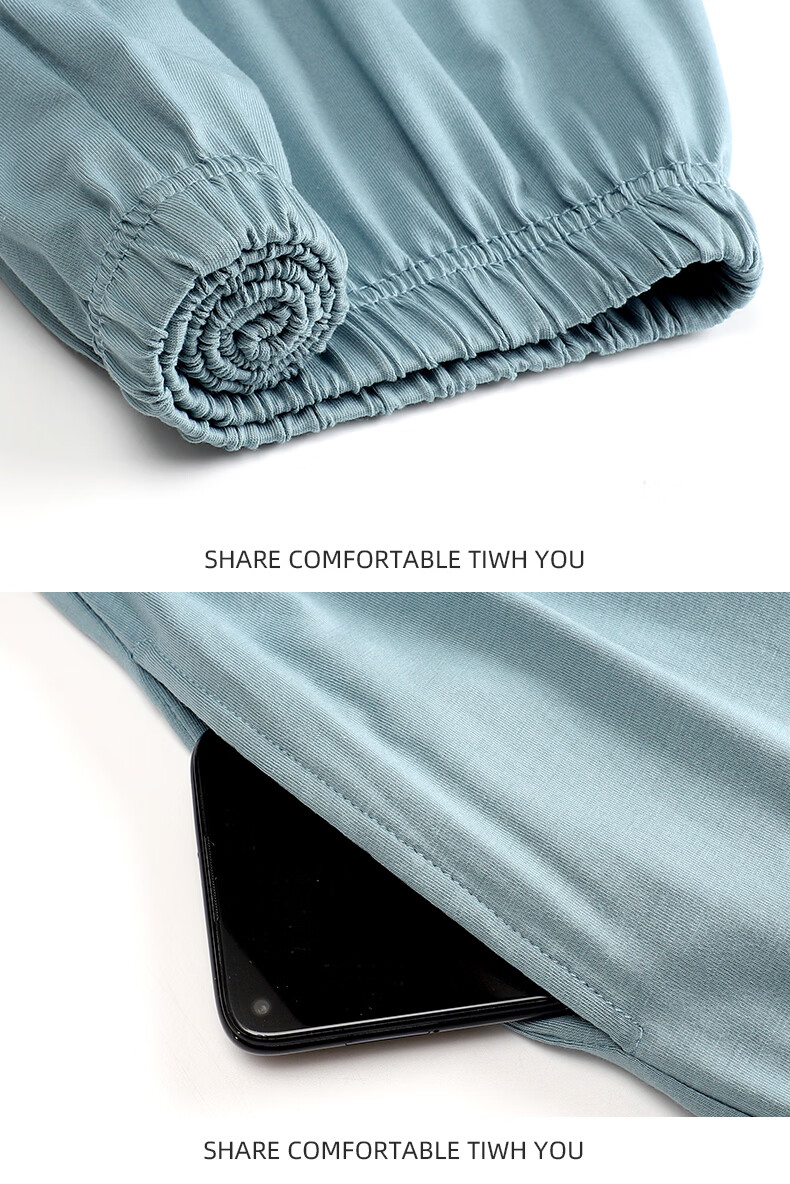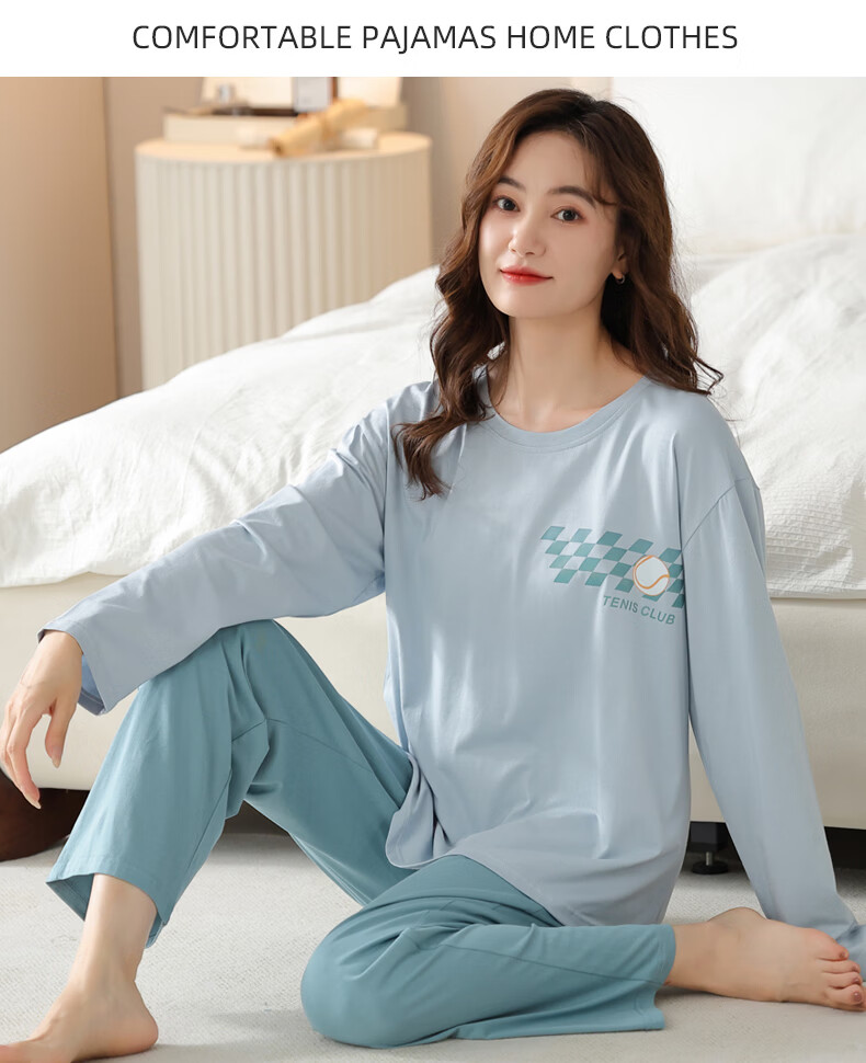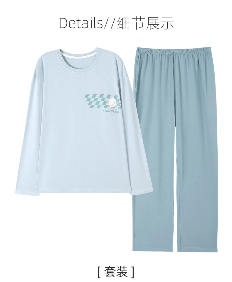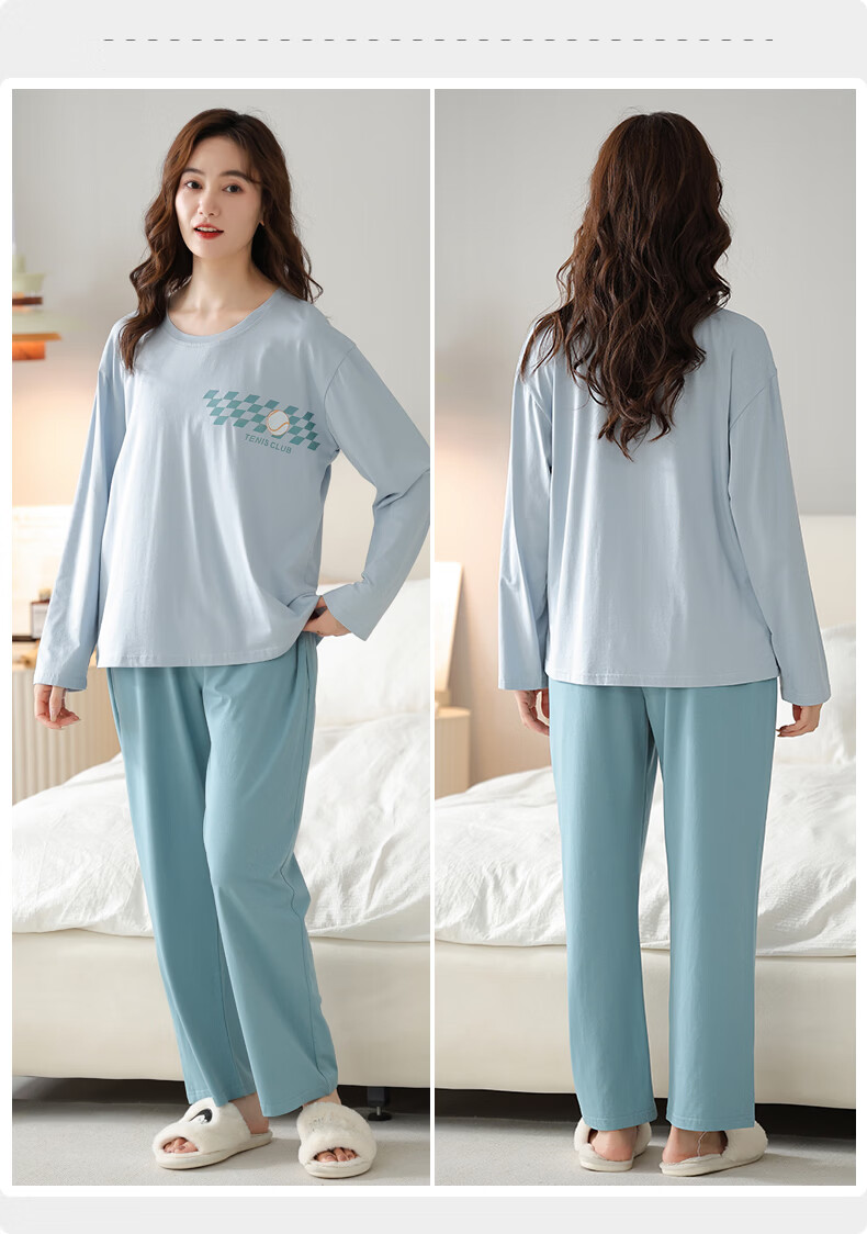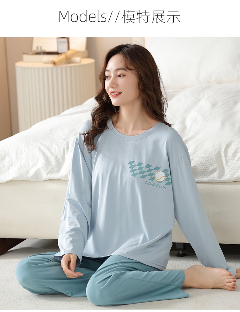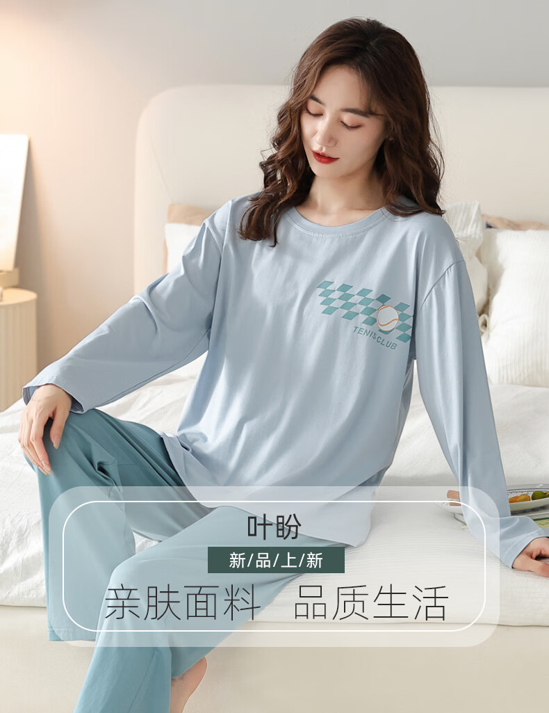 叶盼(yepan)【柔软】睡衣女春秋季莫代尔长袖宽松大码夏季薄款女士家居服套装 4360-天蓝 M (160) :建议90-110斤穿着