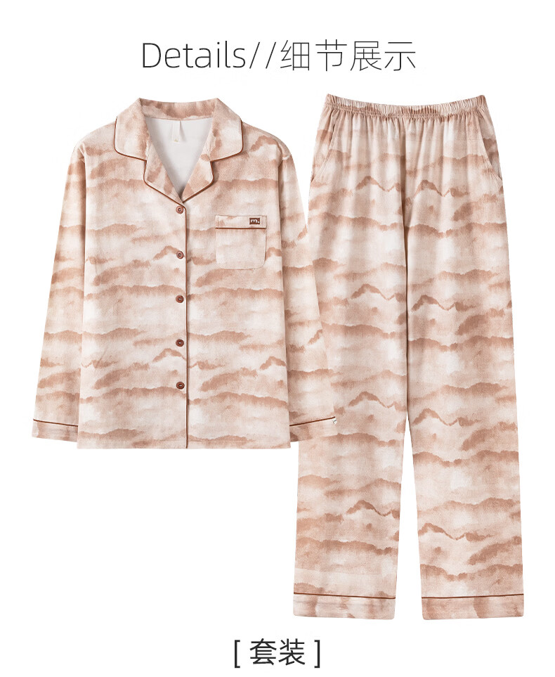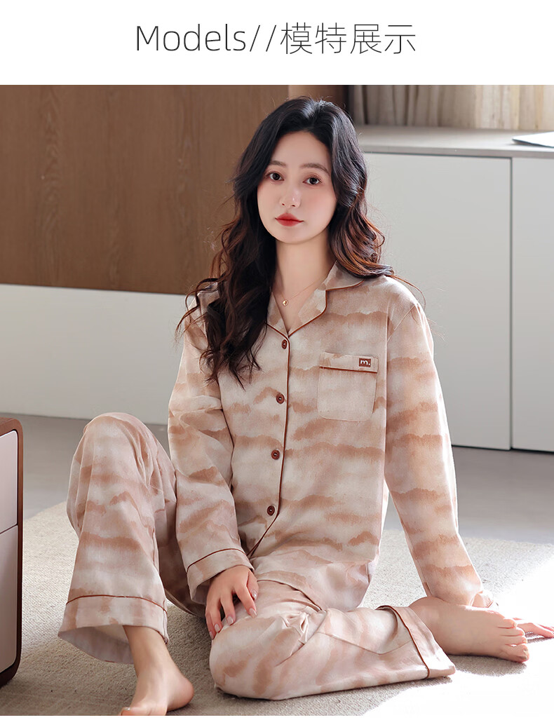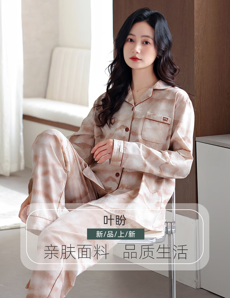 叶盼(yepan)【柔软】莱卡纯棉睡衣女长袖春秋季宽松大码可外穿女士家居服套装 81123-豆沙粉 M (160) :建议90-110斤穿着