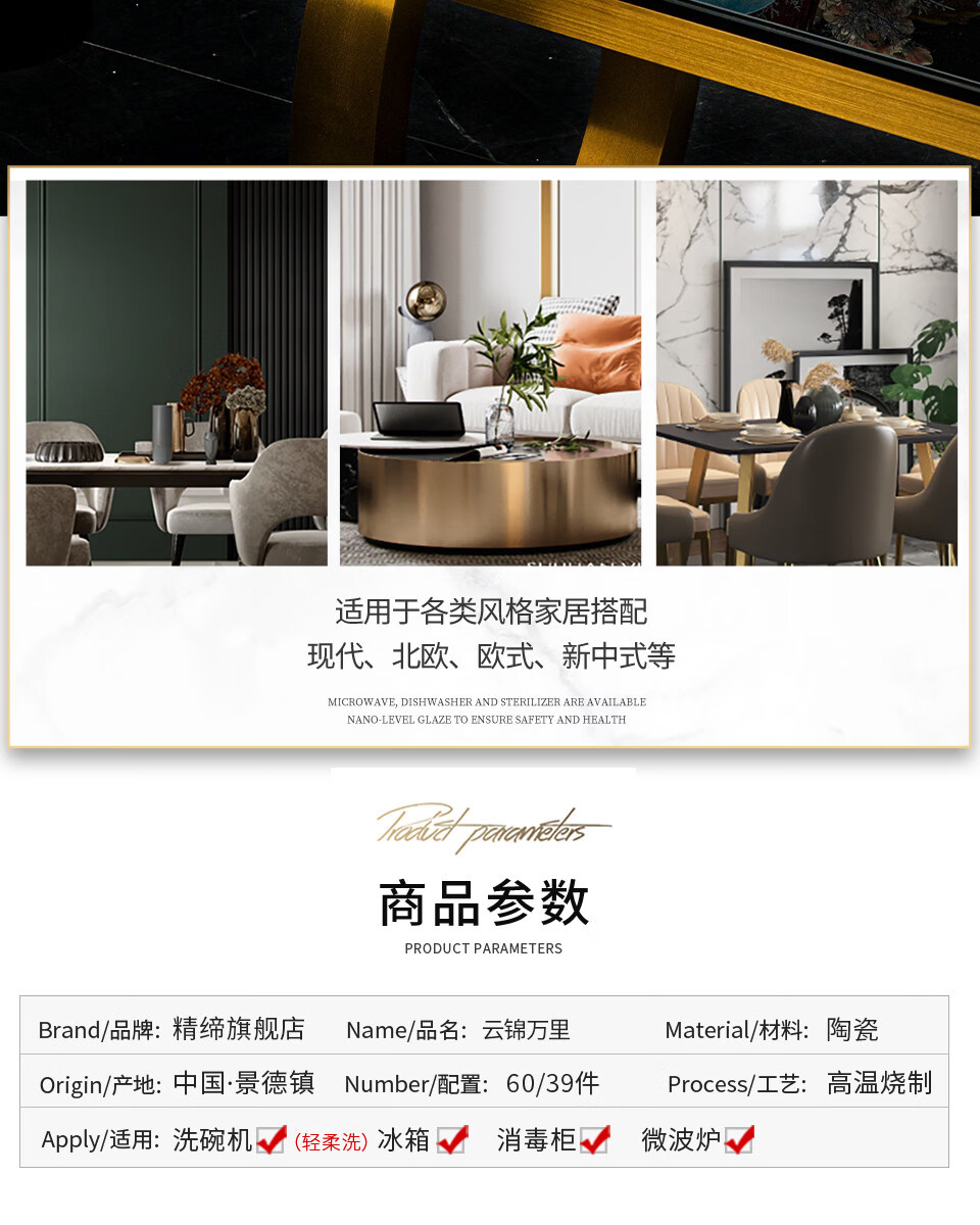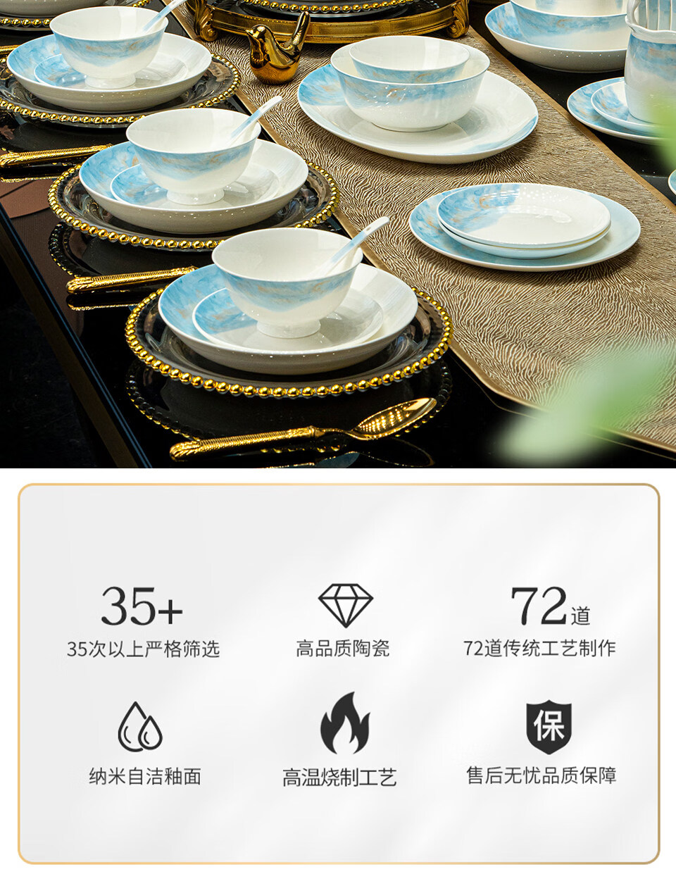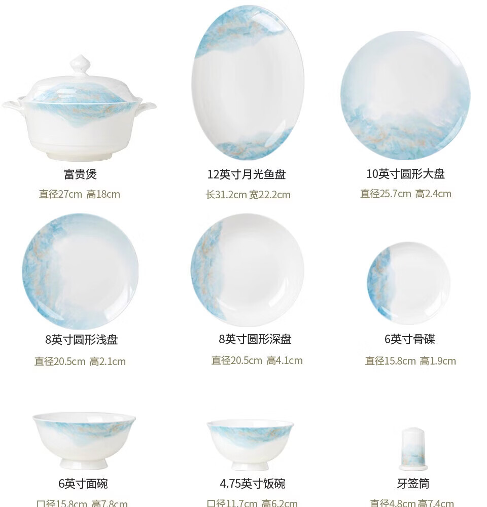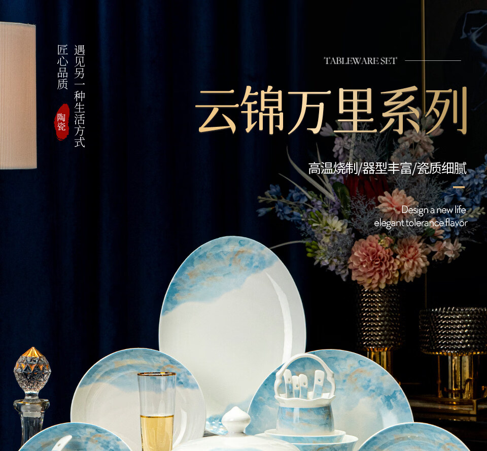 精缔陶瓷JINGDI2026新款碗碟套装家用轻奢景德镇高颜值陶瓷餐具套装碗盘乔迁送礼 【中式水墨风】6人食37件大汤碗云锦万里