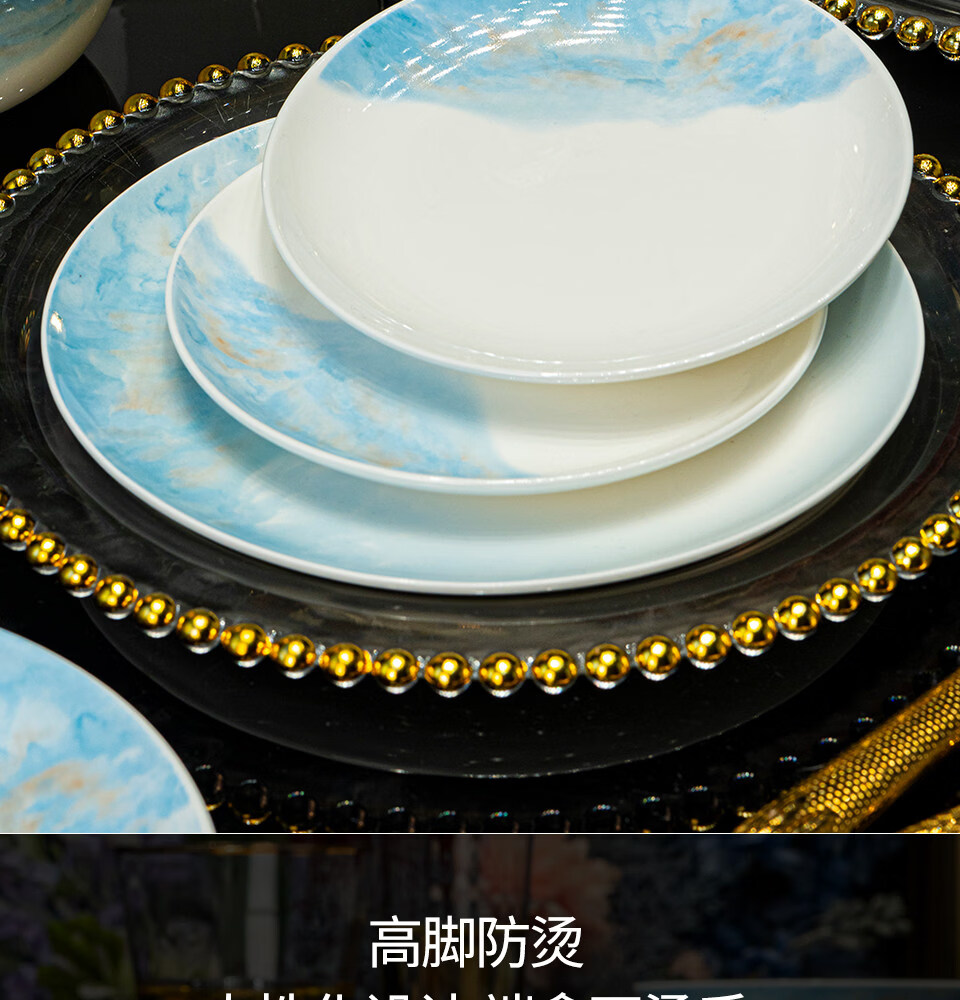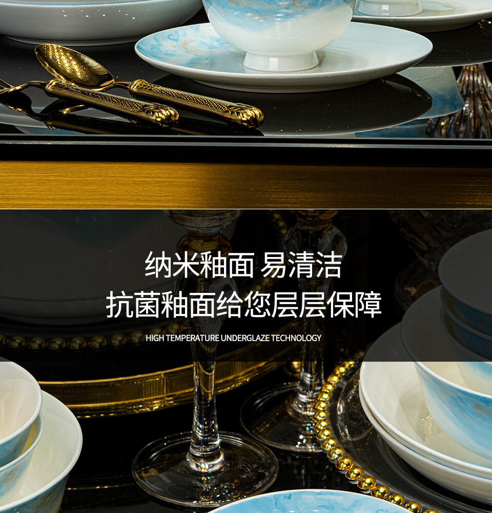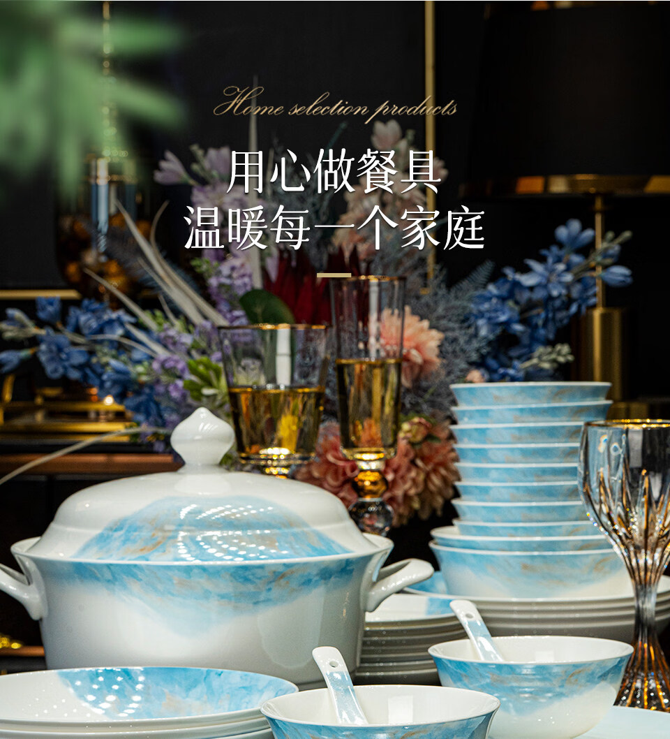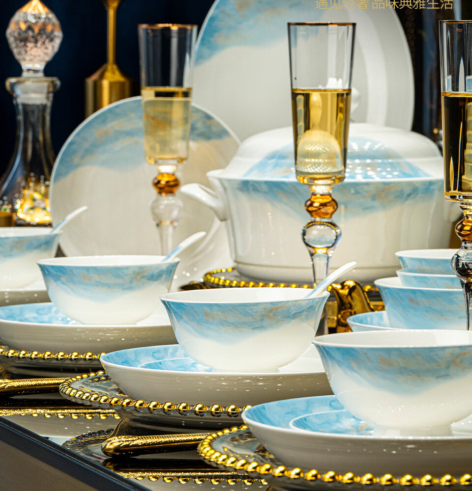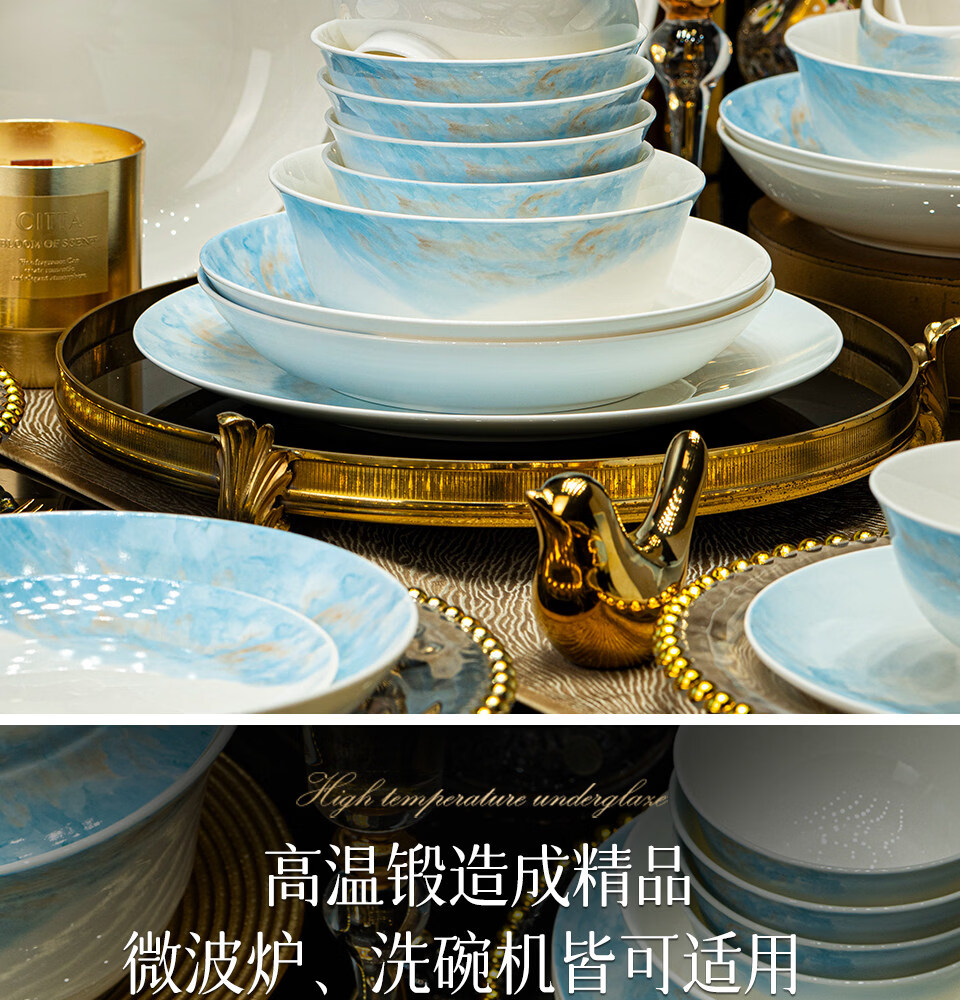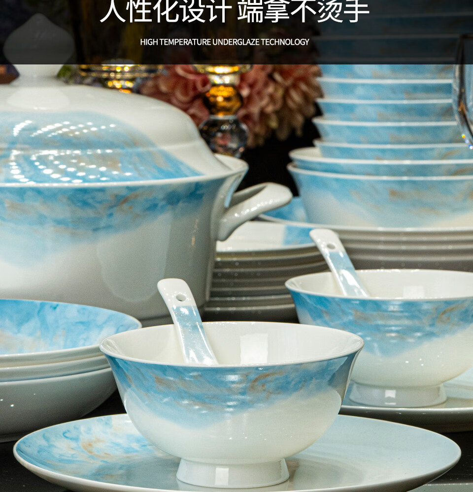 精缔陶瓷JINGDI2025新款碗碟套装家用碗筷乔迁高温骨瓷餐具套装景德镇陶瓷碗盘子 【店长推荐】66件升级配大汤碗 66件套