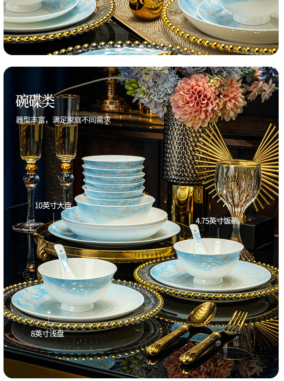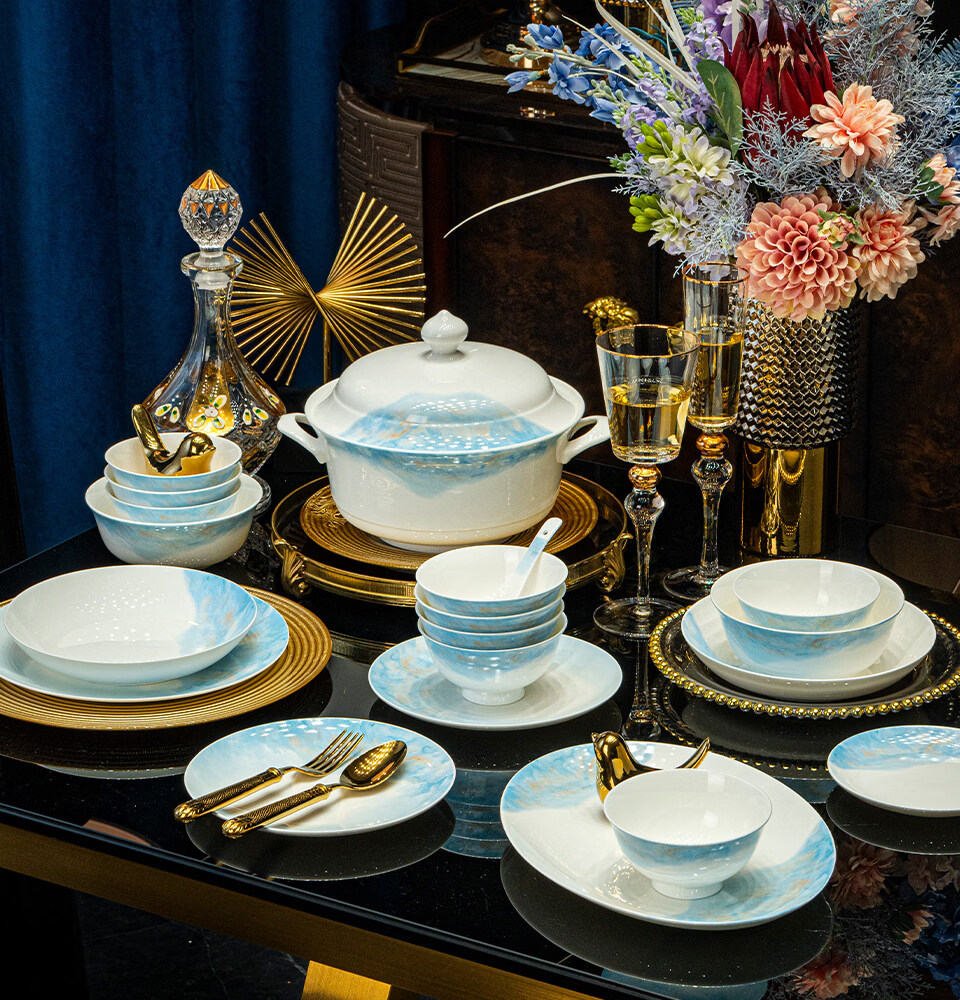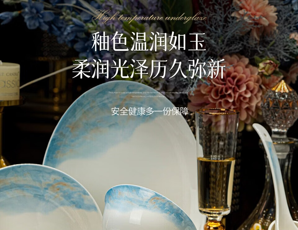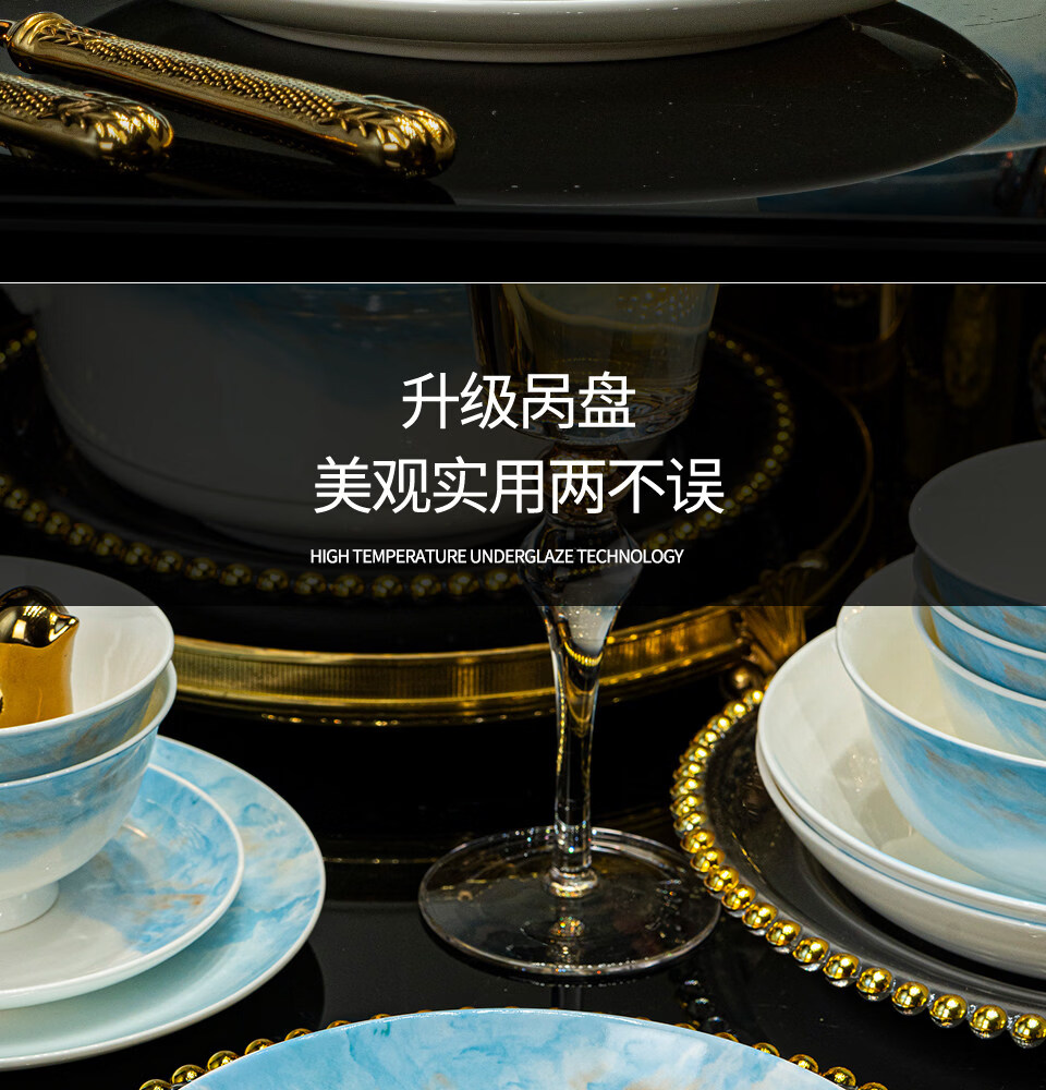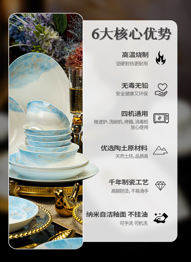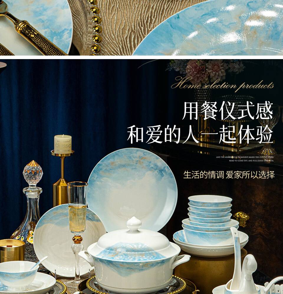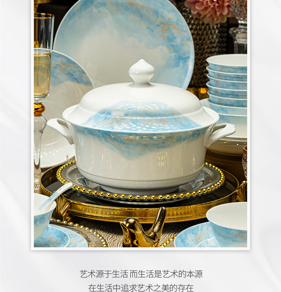 精缔陶瓷JINGDI2025新款碗碟套装家用碗筷乔迁高温骨瓷餐具套装景德镇陶瓷碗盘子 【店长推荐】66件升级配大汤碗 66件套