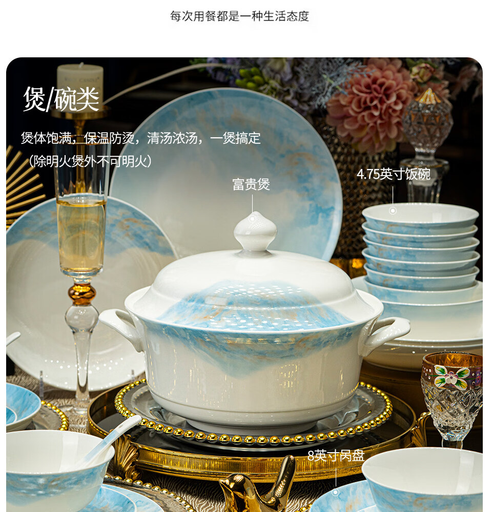 精缔陶瓷JINGDI景德镇碗家用2025新款轻奢高颜值碗碟套装家用陶瓷餐具乔迁新居 【店长推荐】升级配富贵煲 66件套